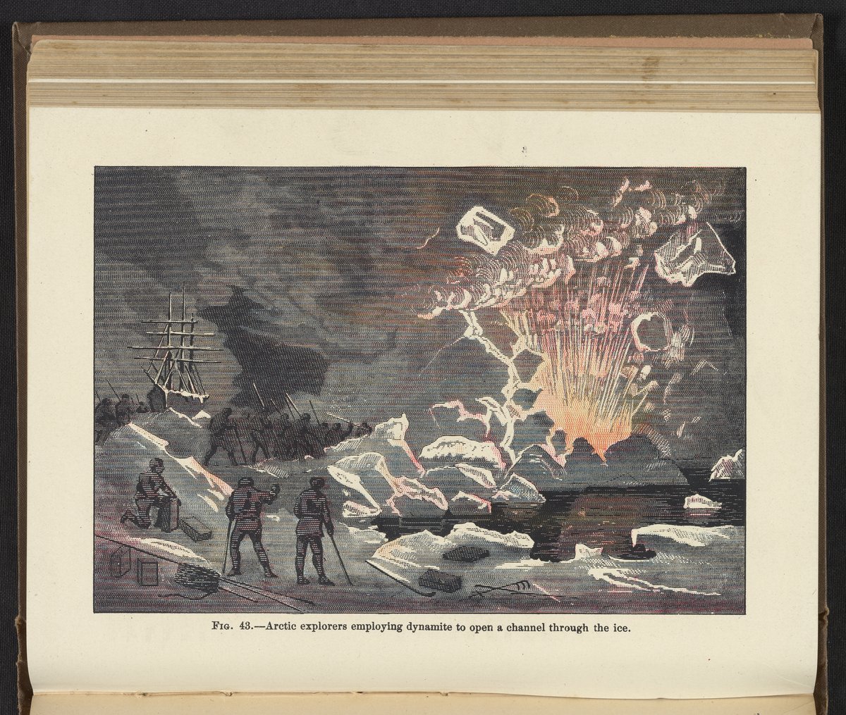 Figure 43: Arctic explorers using dynamite to open a channel through the ice