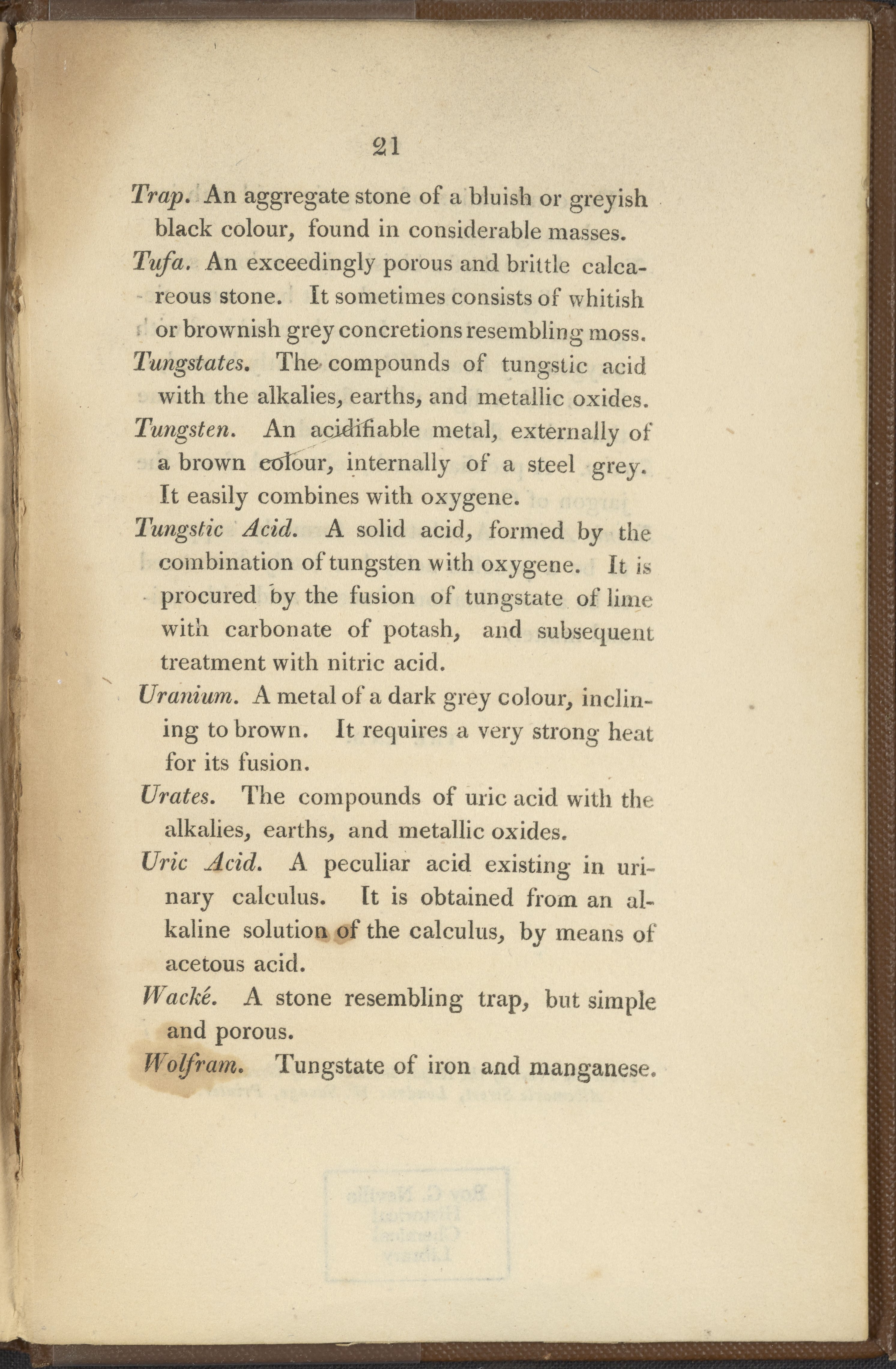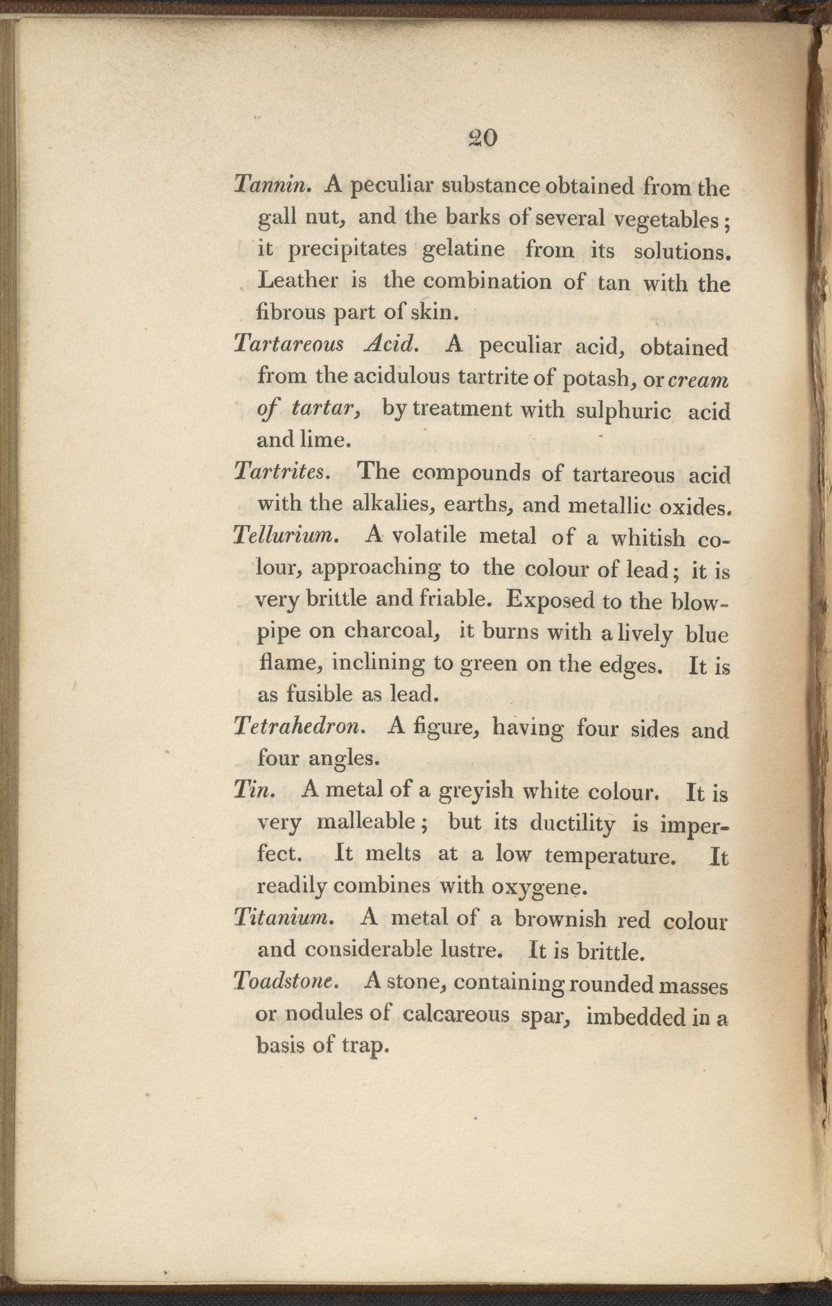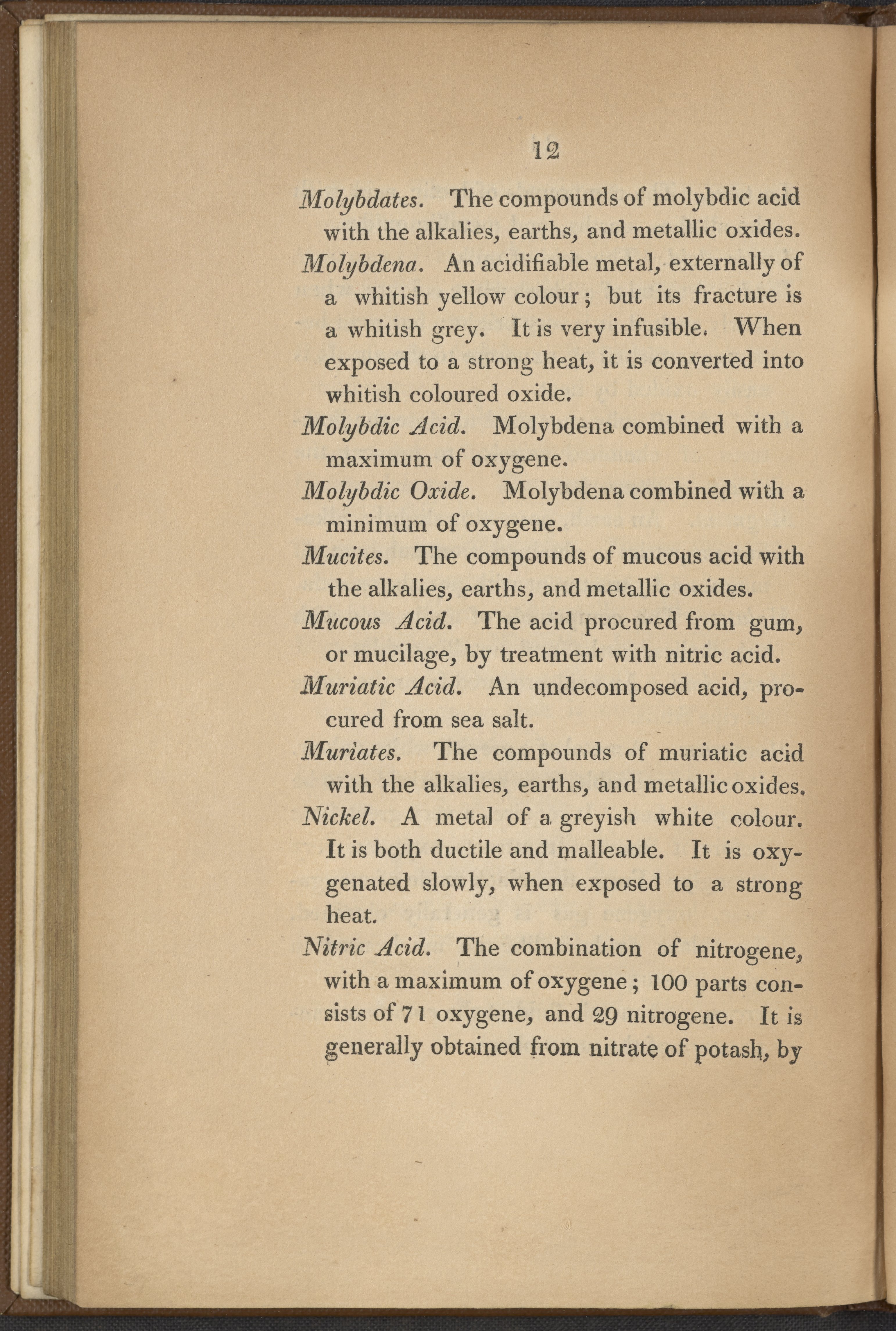 Sadler, John. An Explanation of Terms Used in Chemistry. Royal Institution of Great Britain: Press of the Royal Institution of Great Britain, 1804. https://digital.sciencehistory.org/works/tkowcv7.