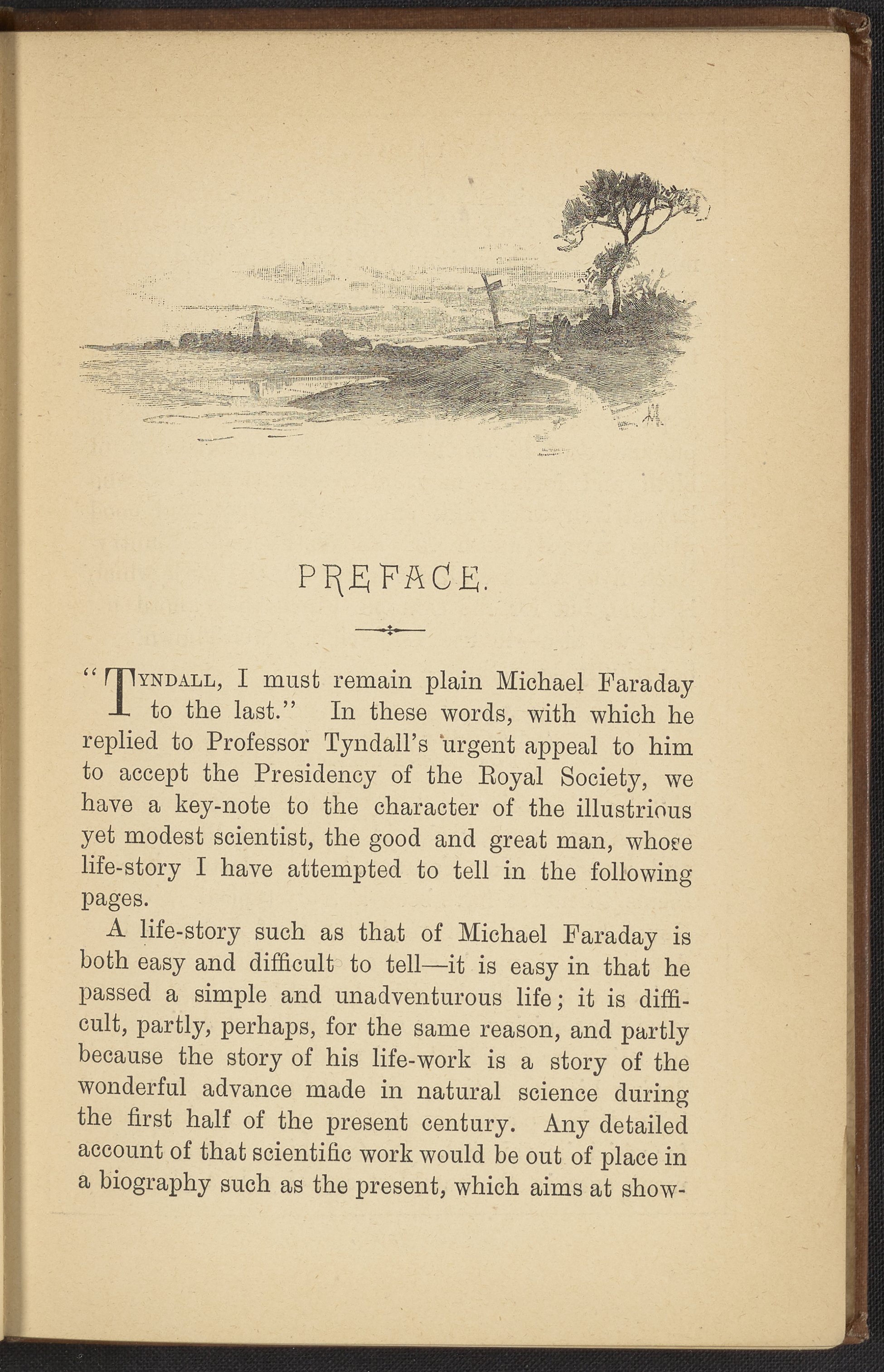 Small JPG1200 x 1725px — 560 KBFull-sized JPG2145 x 3084px — 1.5 MBOriginal fileTIFF — 2145 x 3084px — 19.0 MBA biographical account of the life and accomplishments of Michael Faraday (1791-1867), an English scientist who contributed to the study of electromagnetism and electrochemistry. Digitized content includes the work's front matter and a selection of plates. Plates include a portrait of Faraday, Faraday's Royal Institution of Great Britain laboratory, Faraday's study, Faraday delivering his annual Christmas Juvenile lectures, and Faraday lecturing before the prince consort, the Prince of Wales and Duke of Edinburgh.
