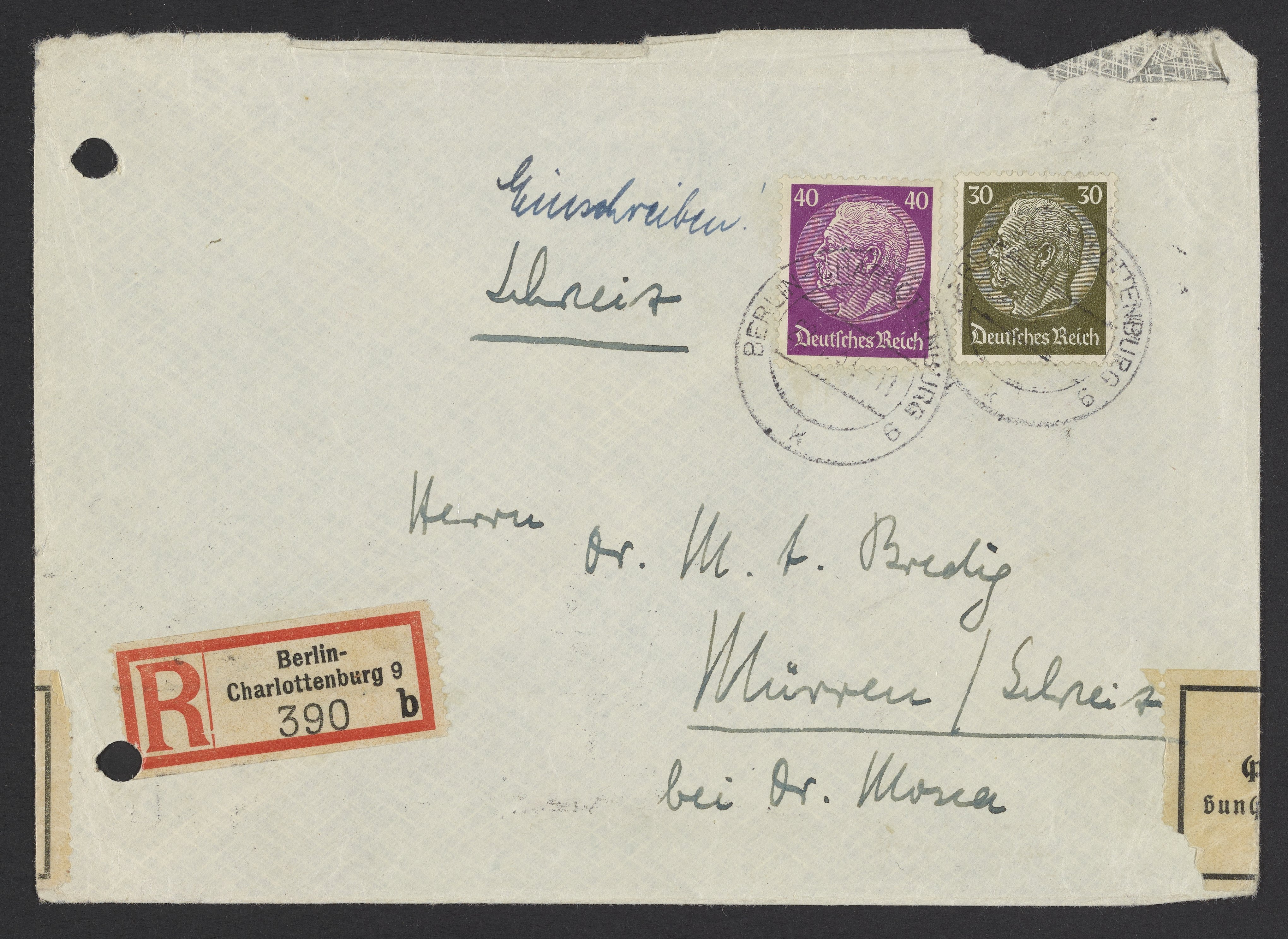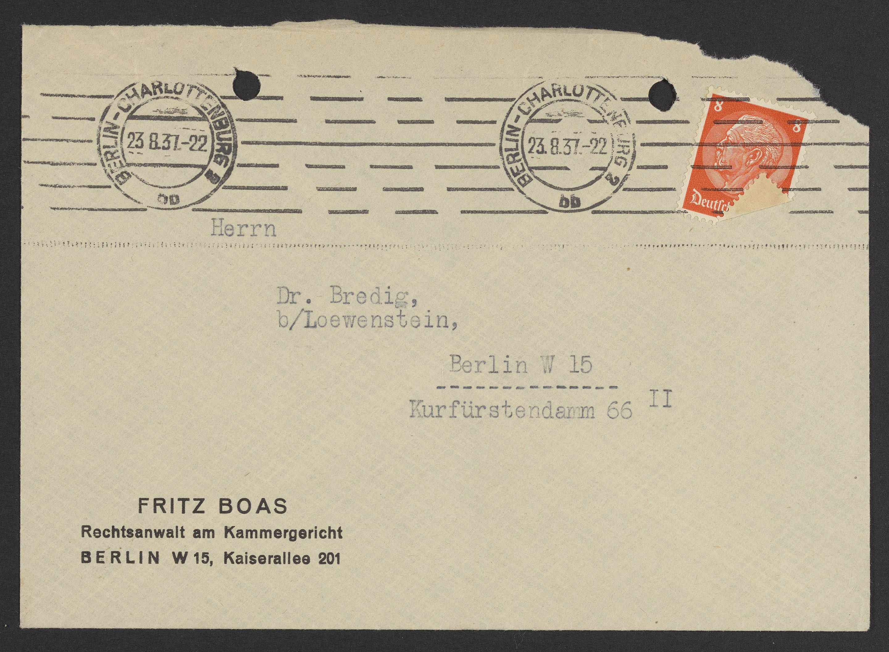 Envelopes addressed to Max Bredig, 1937