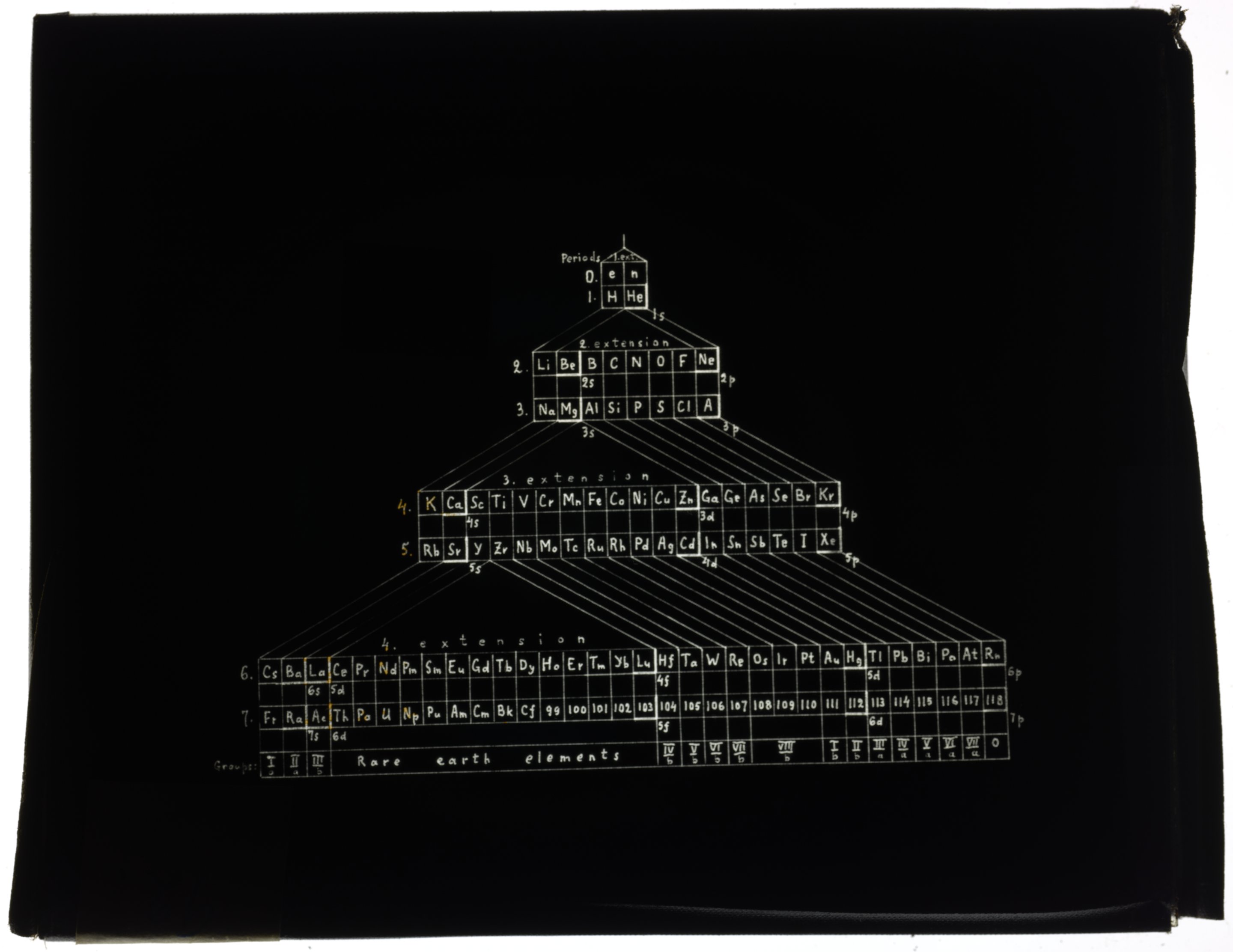 Periodic table in style of a zigzag (Eugenio Saz, 1922)1922 (Original design), Circa 1957 (Date attributed to slide)