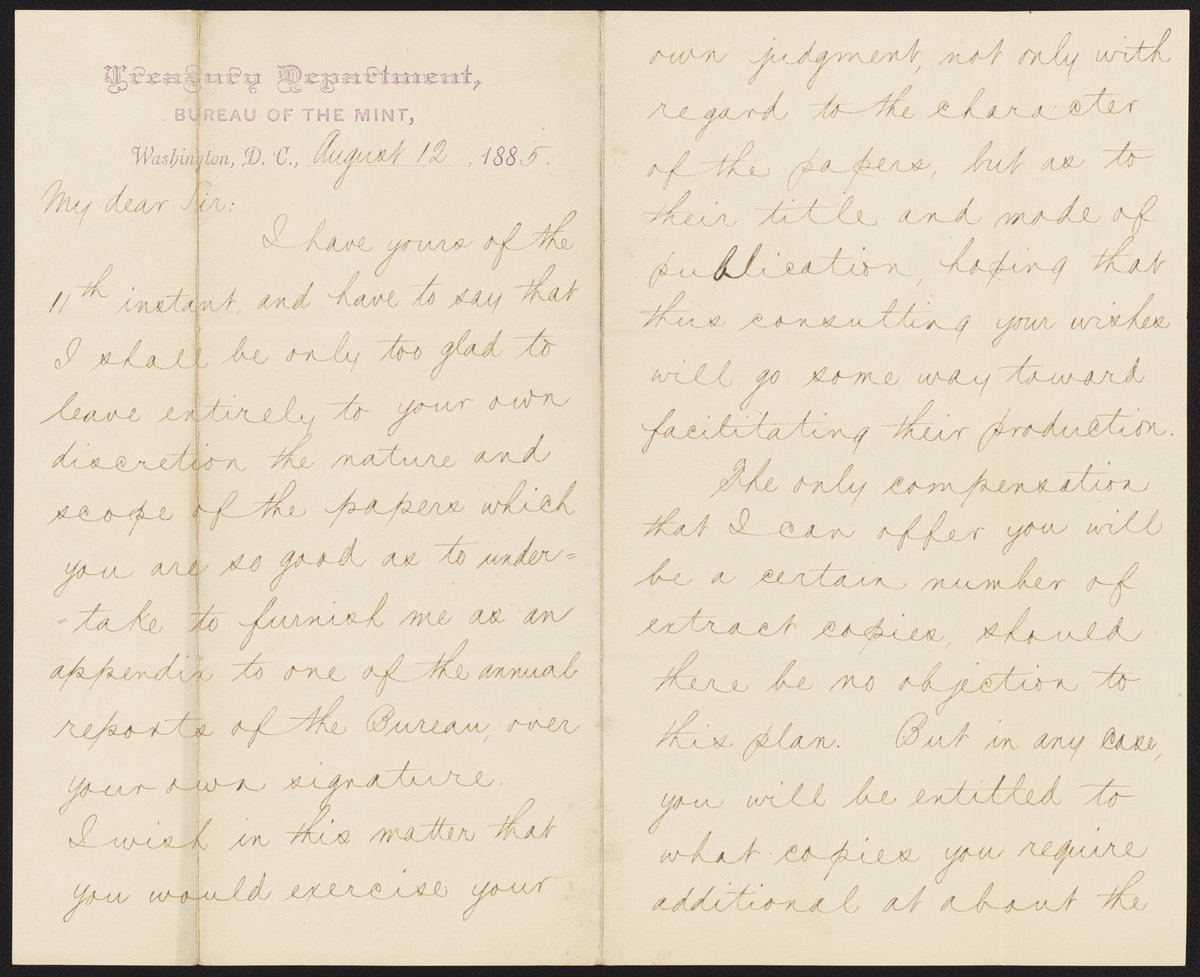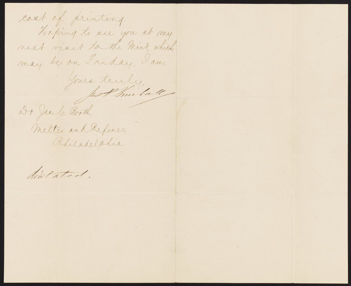 Small JPG1200 x 977px — 146 KBLarge JPG2880 x 2346px — 738 KBFull-sized JPG6414 x 5224px — 3.5 MBOriginal fileTIFF — 6414 x 5224px — 95.9 MBJames P. Kimball (1836-1913), metallurgist and geologist and Director of the United States Mint from 1885-1889, writes to James Curtis Booth (1810-1888) to solicit an article from Booth to appear in the annual report of the Bureau of the Mint.