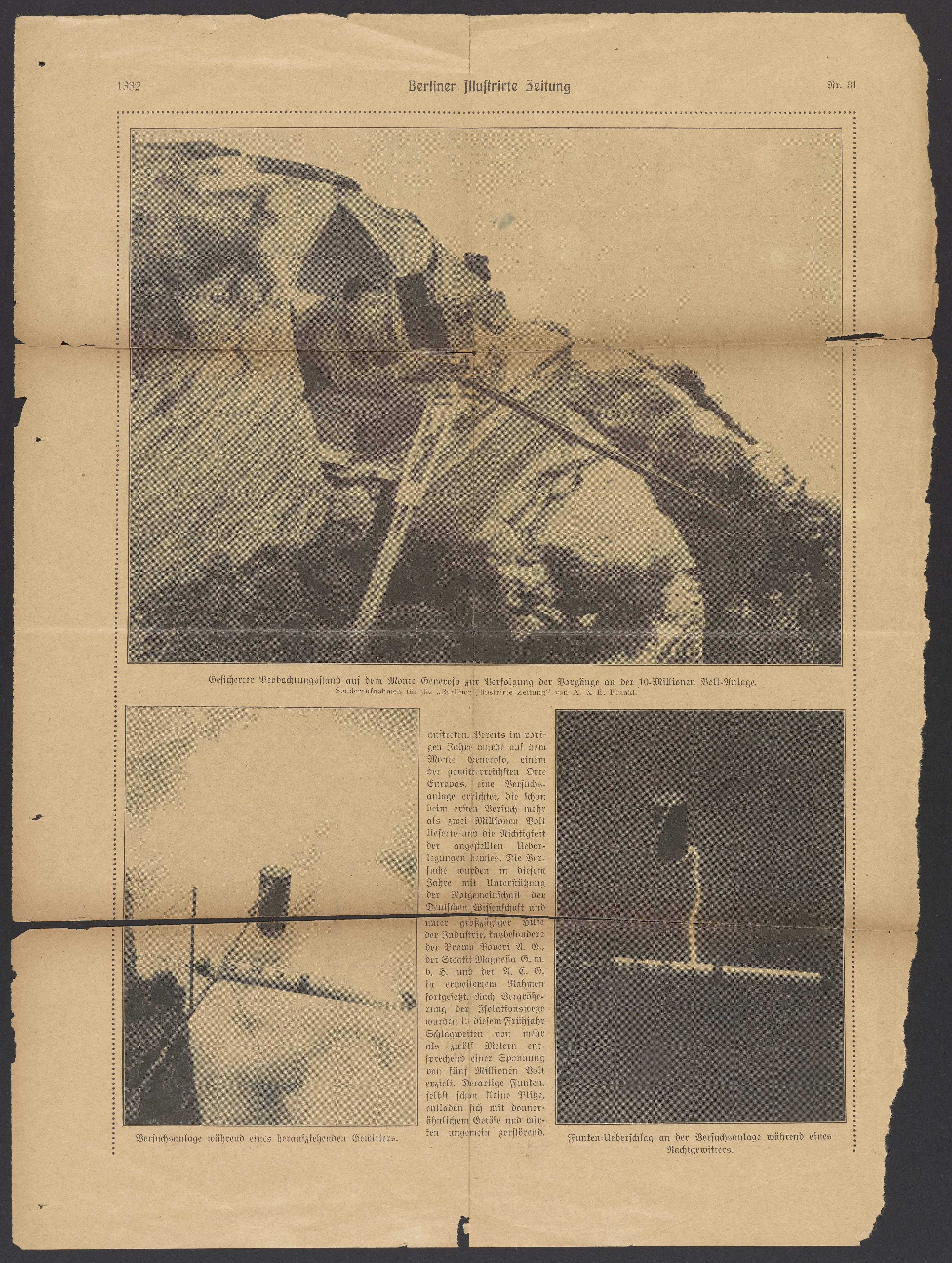 “Der Mensch Reißt Den Blitz Vom Himmel: 10 Millionen Volt Für Atomzertrümmerung.” Ullstein GmbH, n.d. Papers of Georg and Max Bredig, Box 4, Folder 13. Science History Institute. Philadelphia. https://digital.sciencehistory.org/works/tvavk4l.