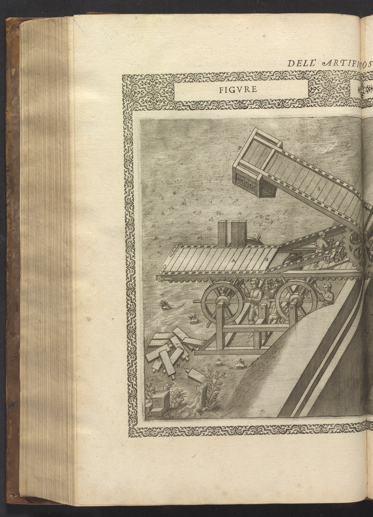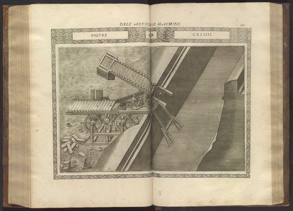 Ramelli, Agostino. “Plate 144: Bridge for Crossing a City or Fortress Moat and Scaling Its Wall.” In Le Diverse Et Artificiose Machine Del Capitano Agostino Ramelli. Paris, France, 1588. https://digital.sciencehistory.org/works/tx31qh855.
