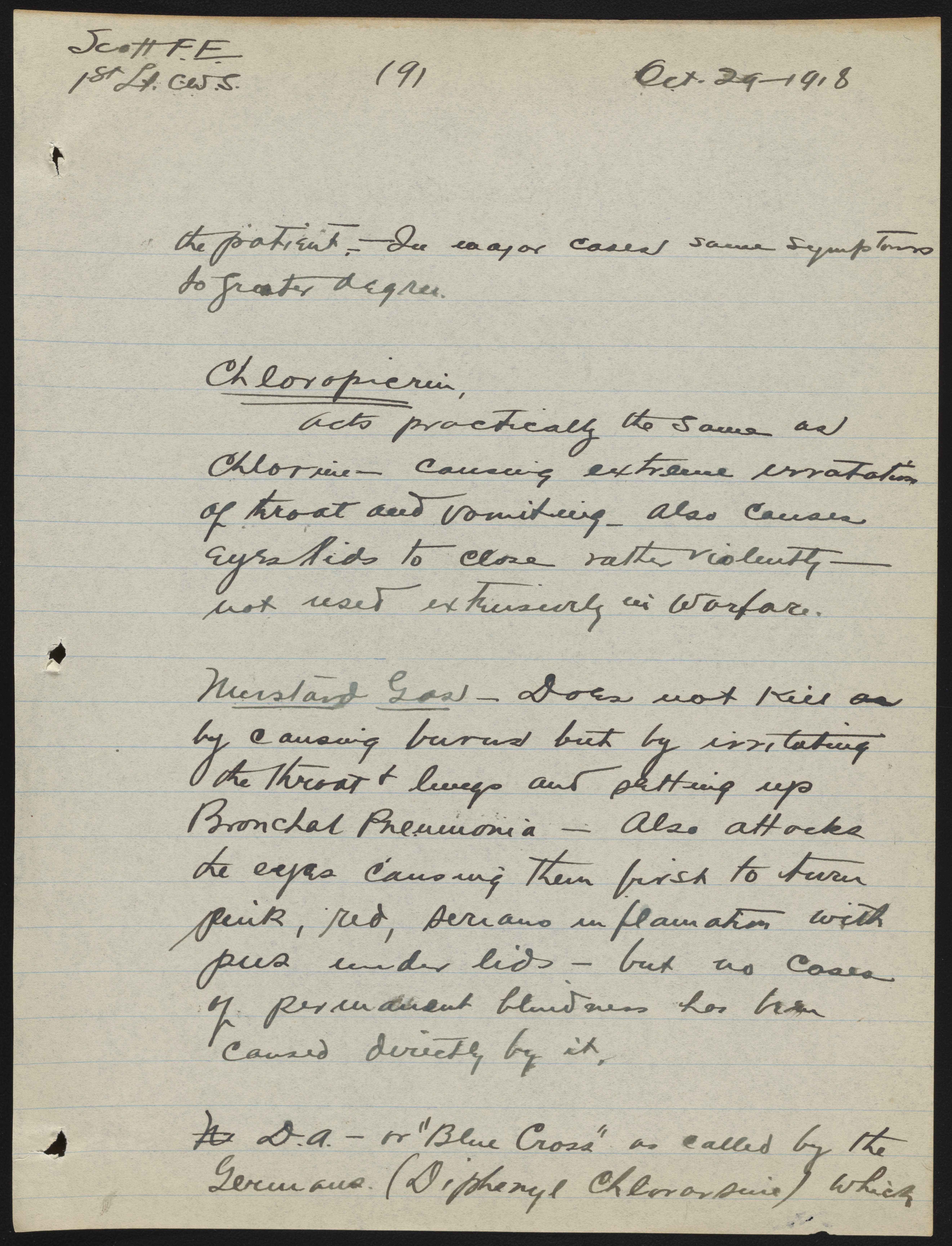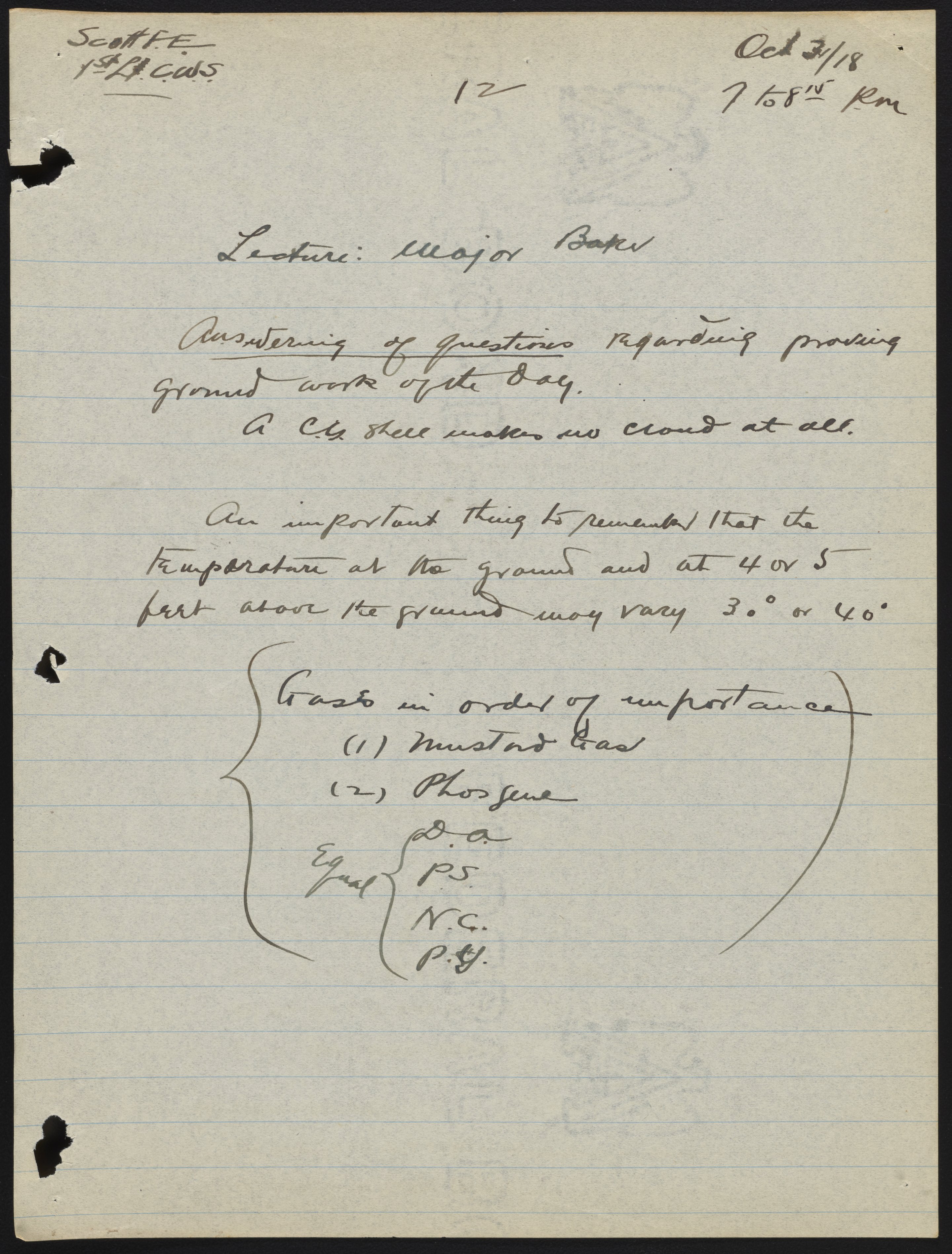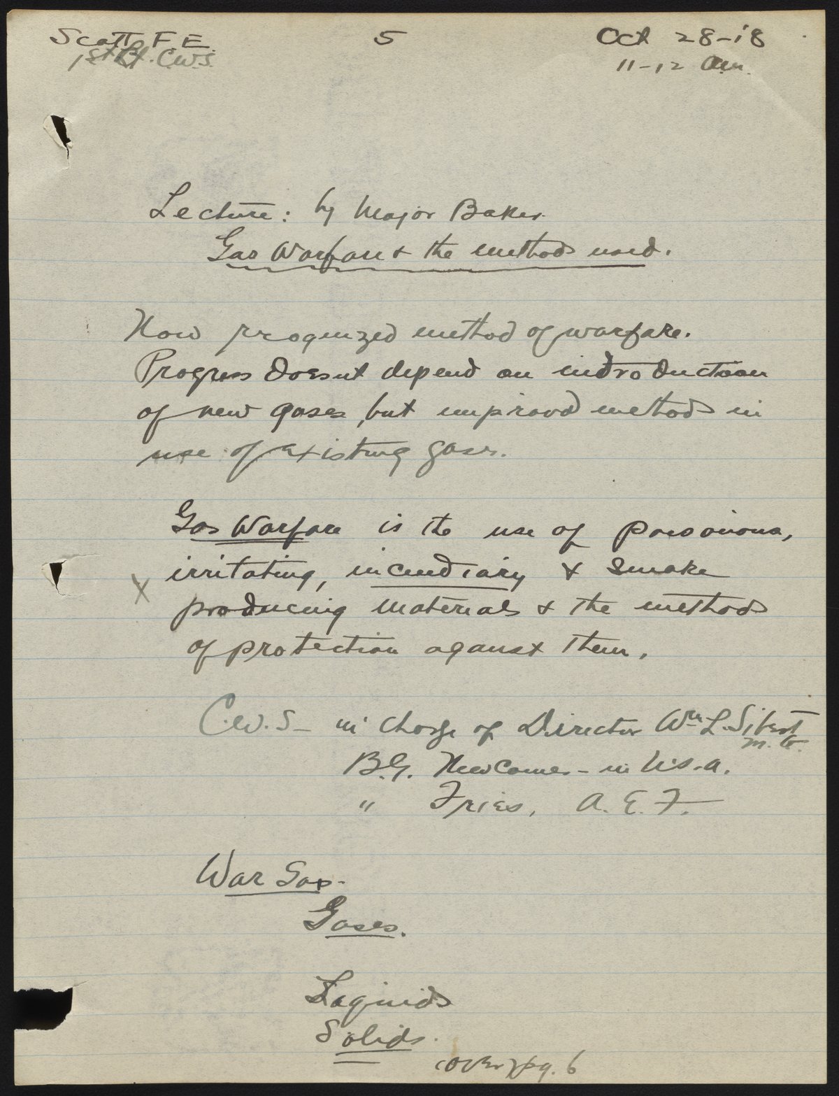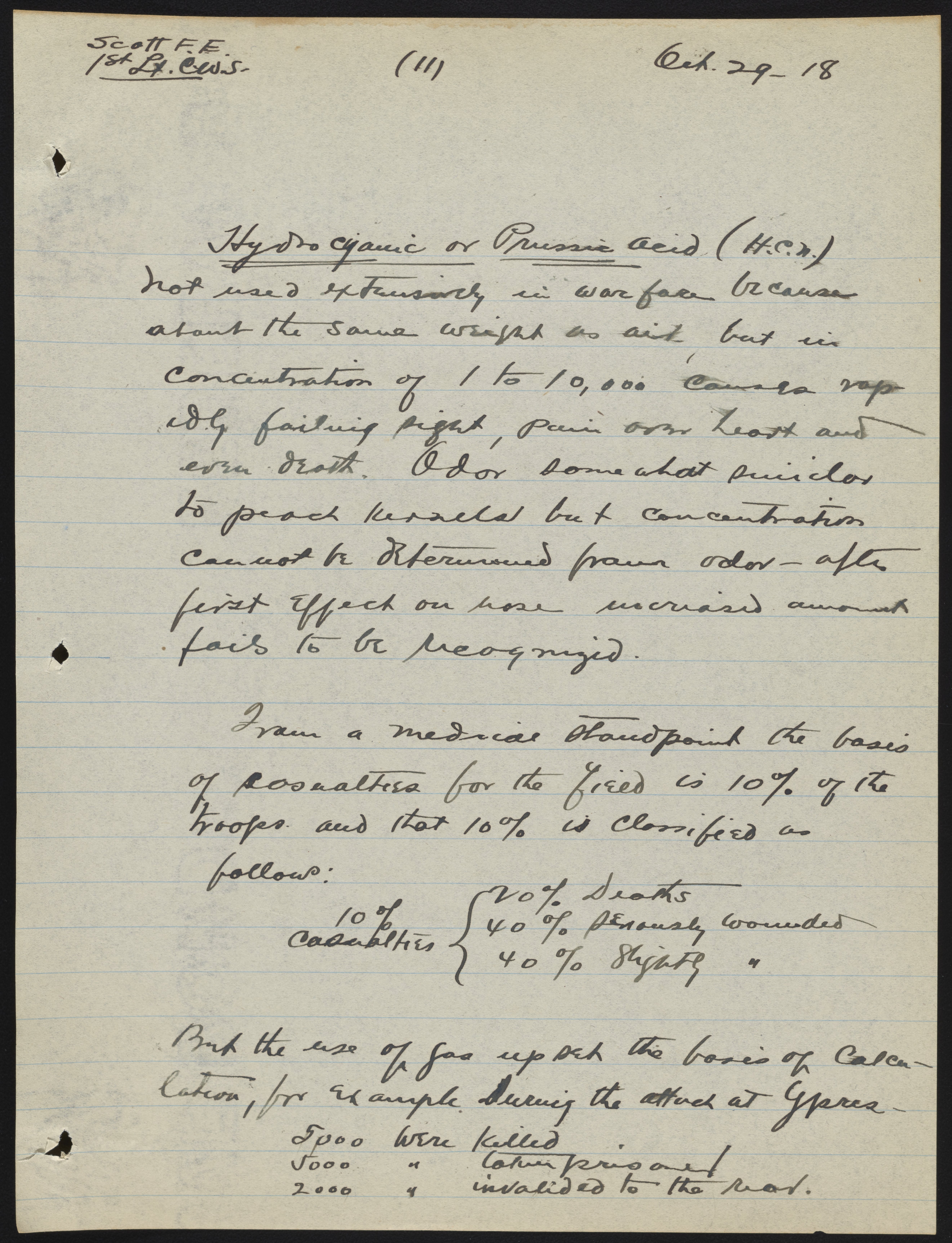 Scott, Francis E. “United States Army Gas School Course Notes,” 1918. Household and Organic Chemistry Course Notebooks. Science History Institute. Philadelphia. https://digital.sciencehistory.org/works/tx31qj045.