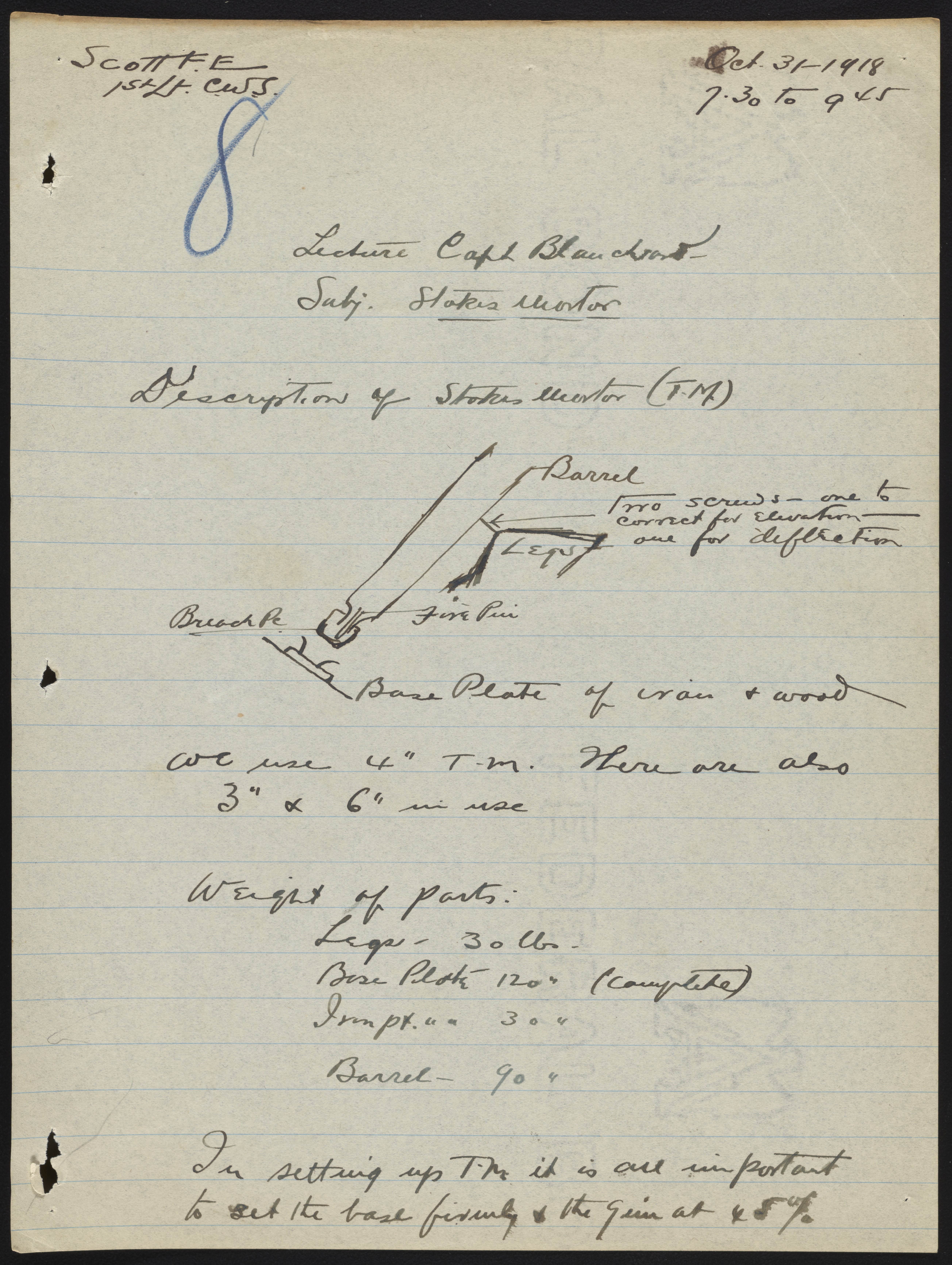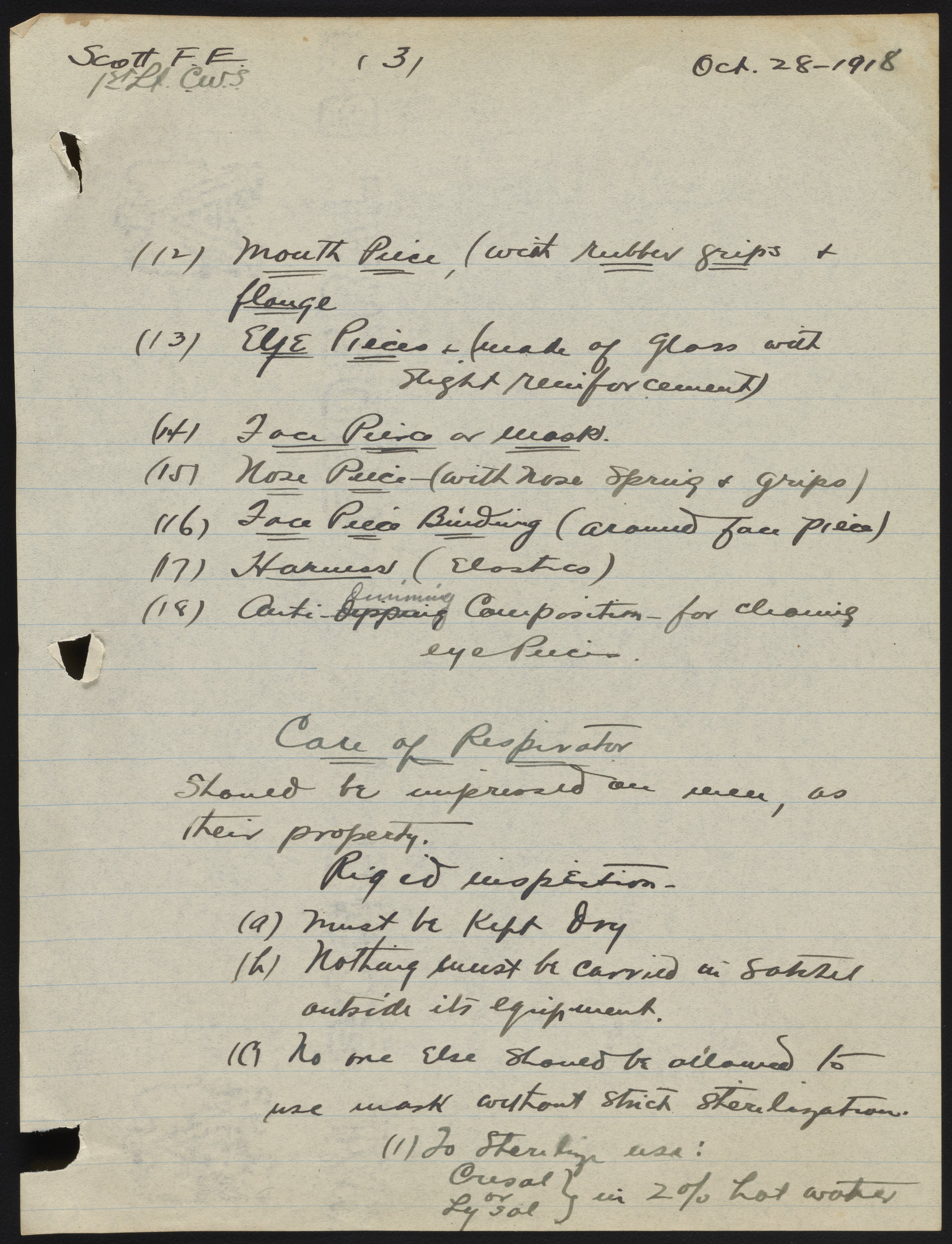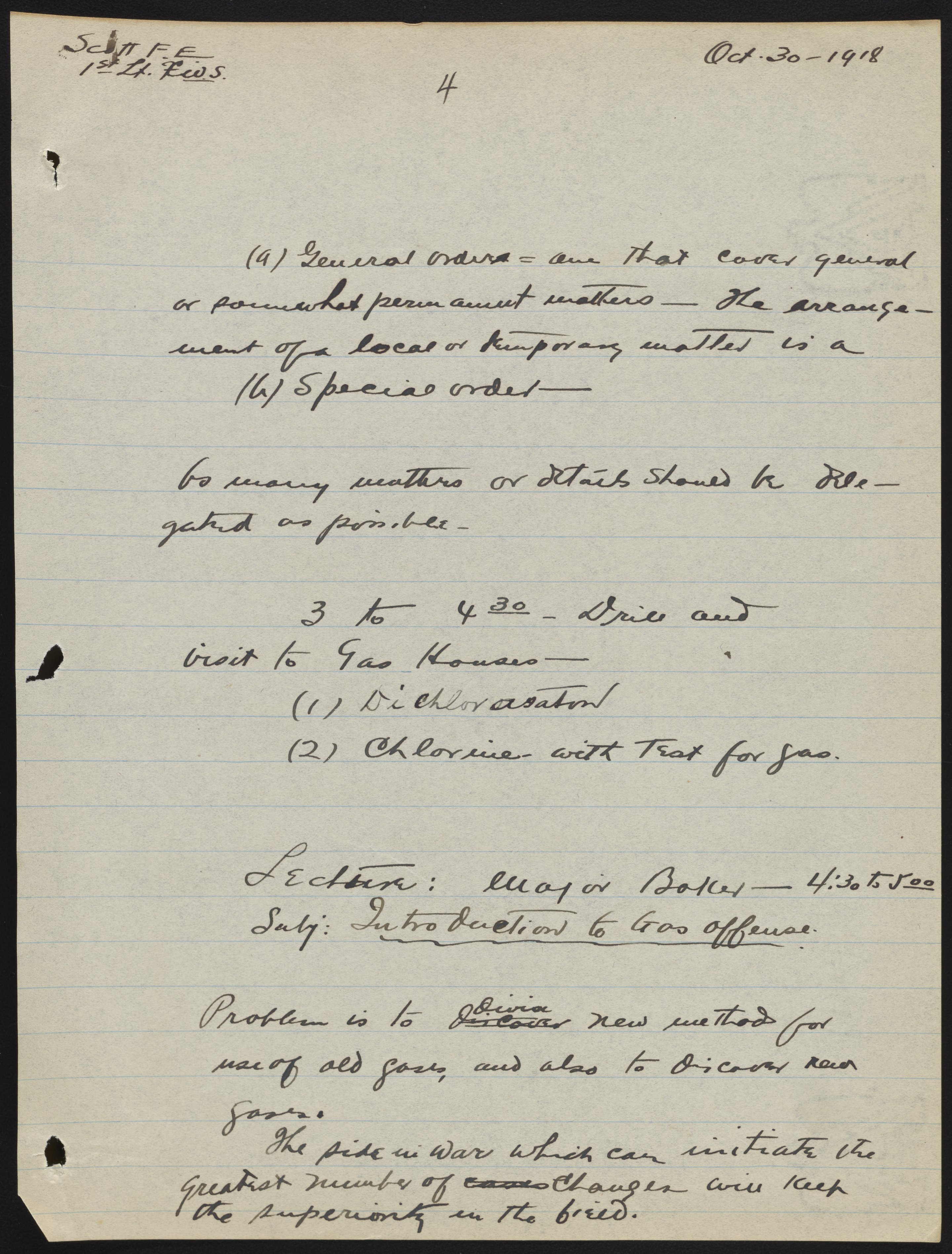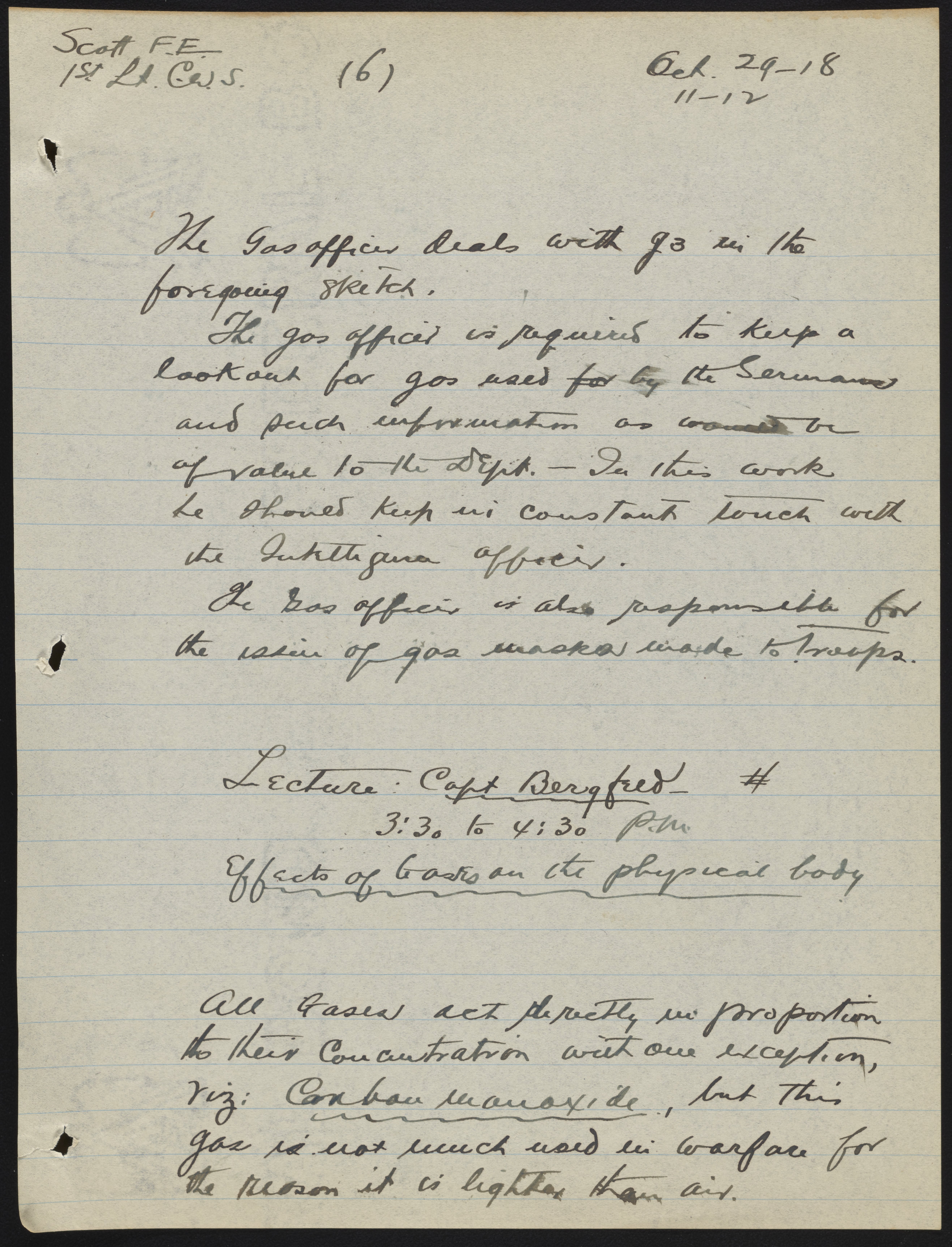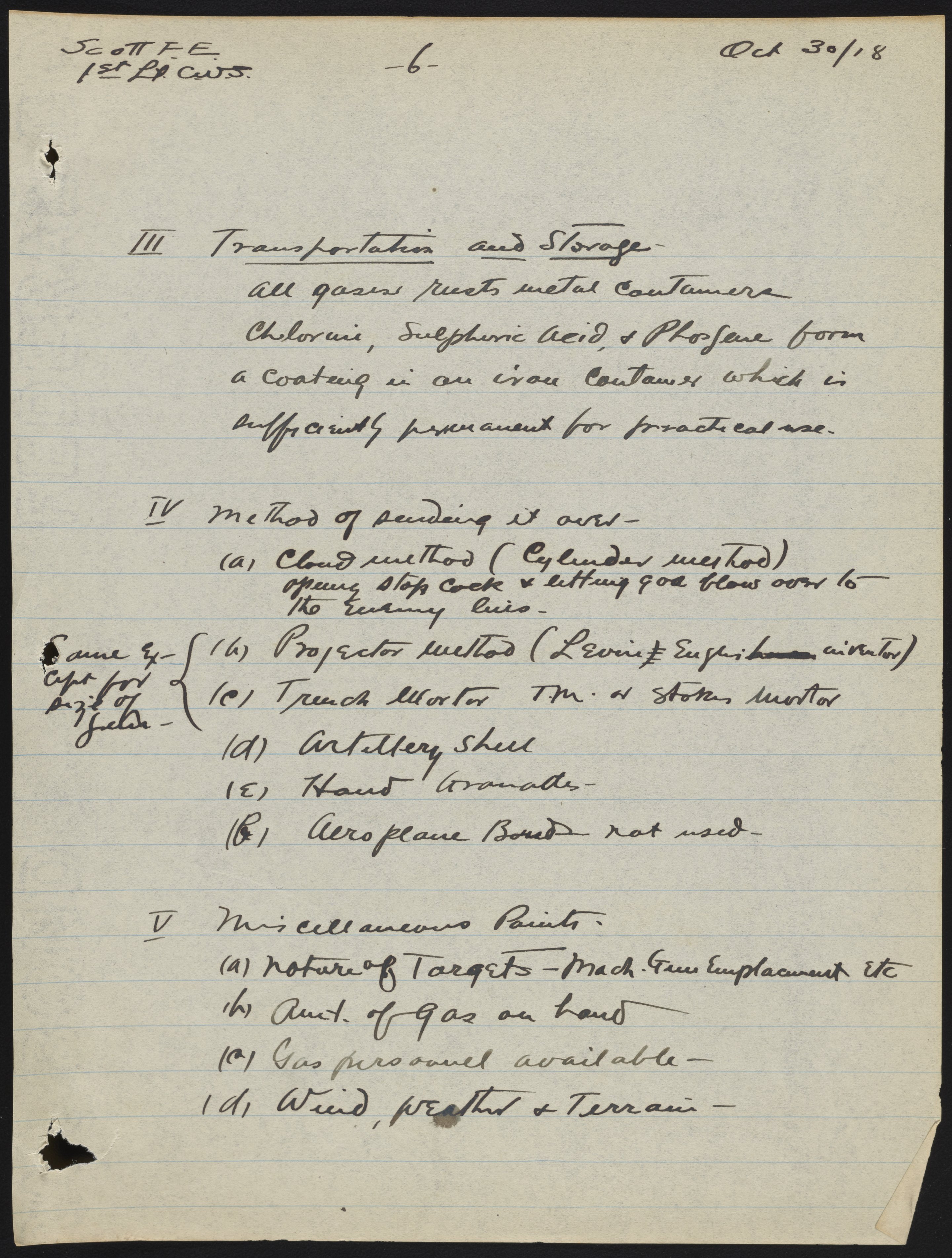 Scott, Francis E. “United States Army Gas School Course Notes,” 1918. Household and Organic Chemistry Course Notebooks. Science History Institute. Philadelphia. https://digital.sciencehistory.org/works/tx31qj045.