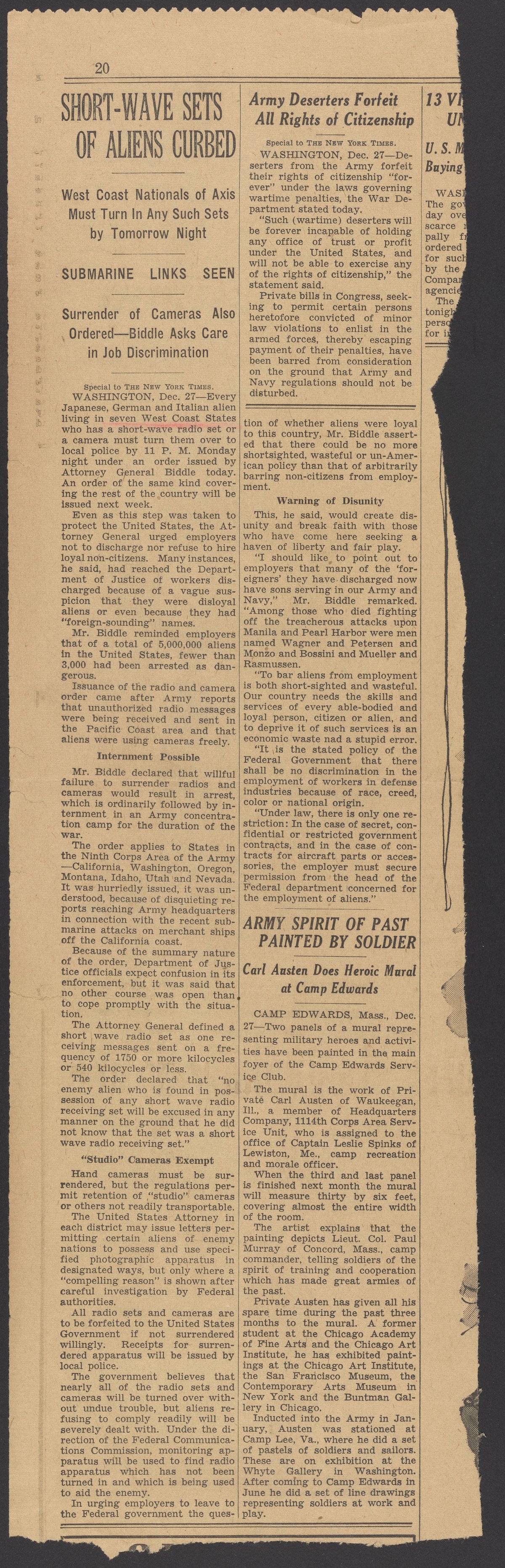 “Short-Wave Sets of Aliens Curbed.” New York, New York: New York times, circa 1940. Papers of Georg and Max Bredig, Box 10, Folder 26. Science History Institute. Philadelphia. https://digital.sciencehistory.org/works/tyj7mn5.