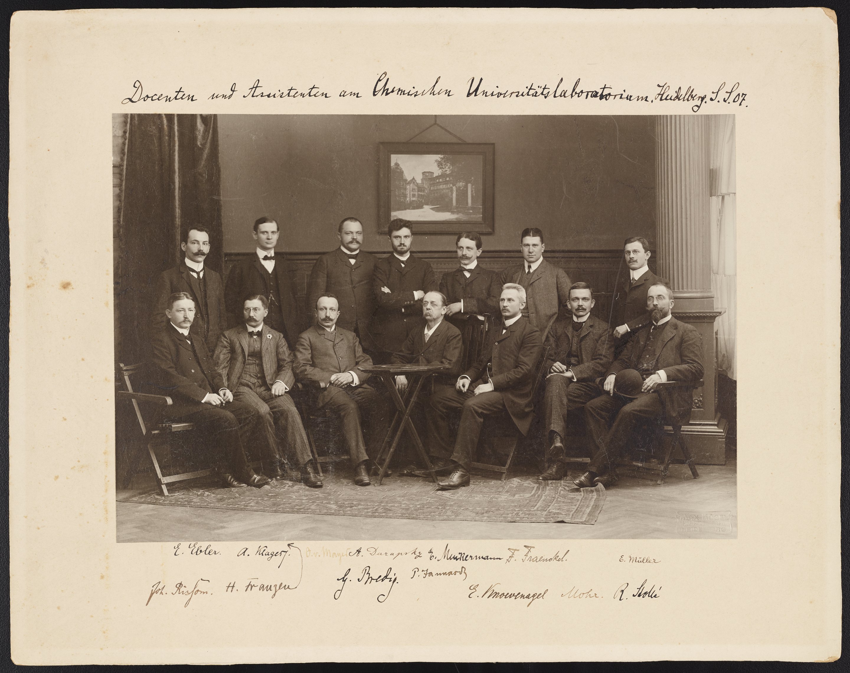 “Chemistry Lecturers and Assistants at the University of Heidelberg,” 1907. Papers of Georg and Max Bredig, Box 26. Science History Institute. Philadelphia. https://digital.sciencehistory.org/works/u22irde.