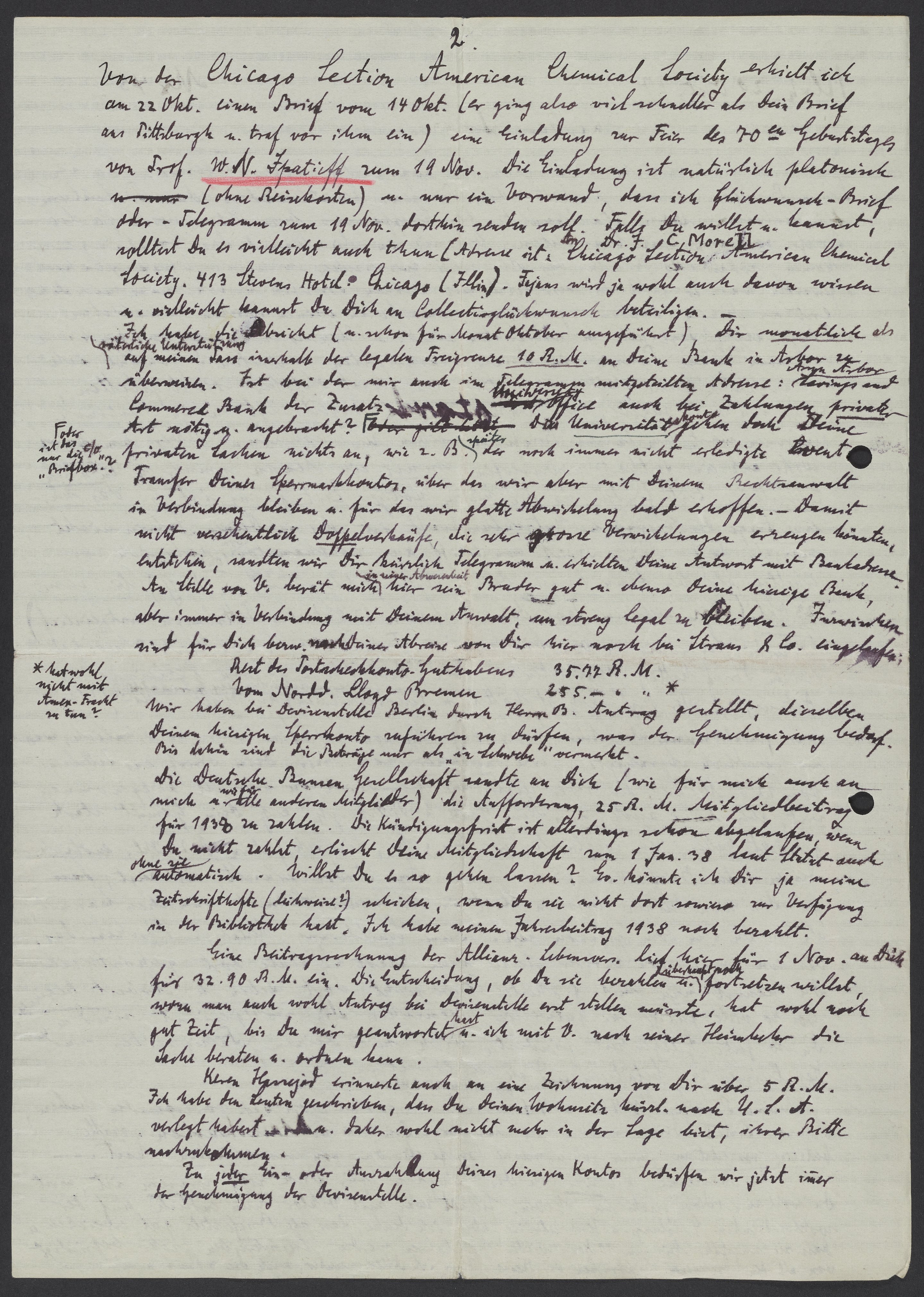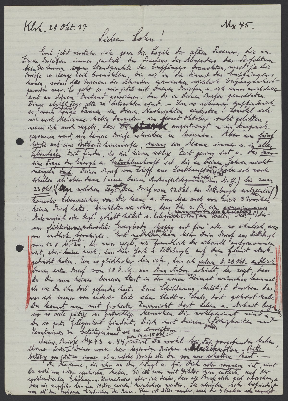 Letter from Georg Bredig to Max Bredig, October 29, 1937
