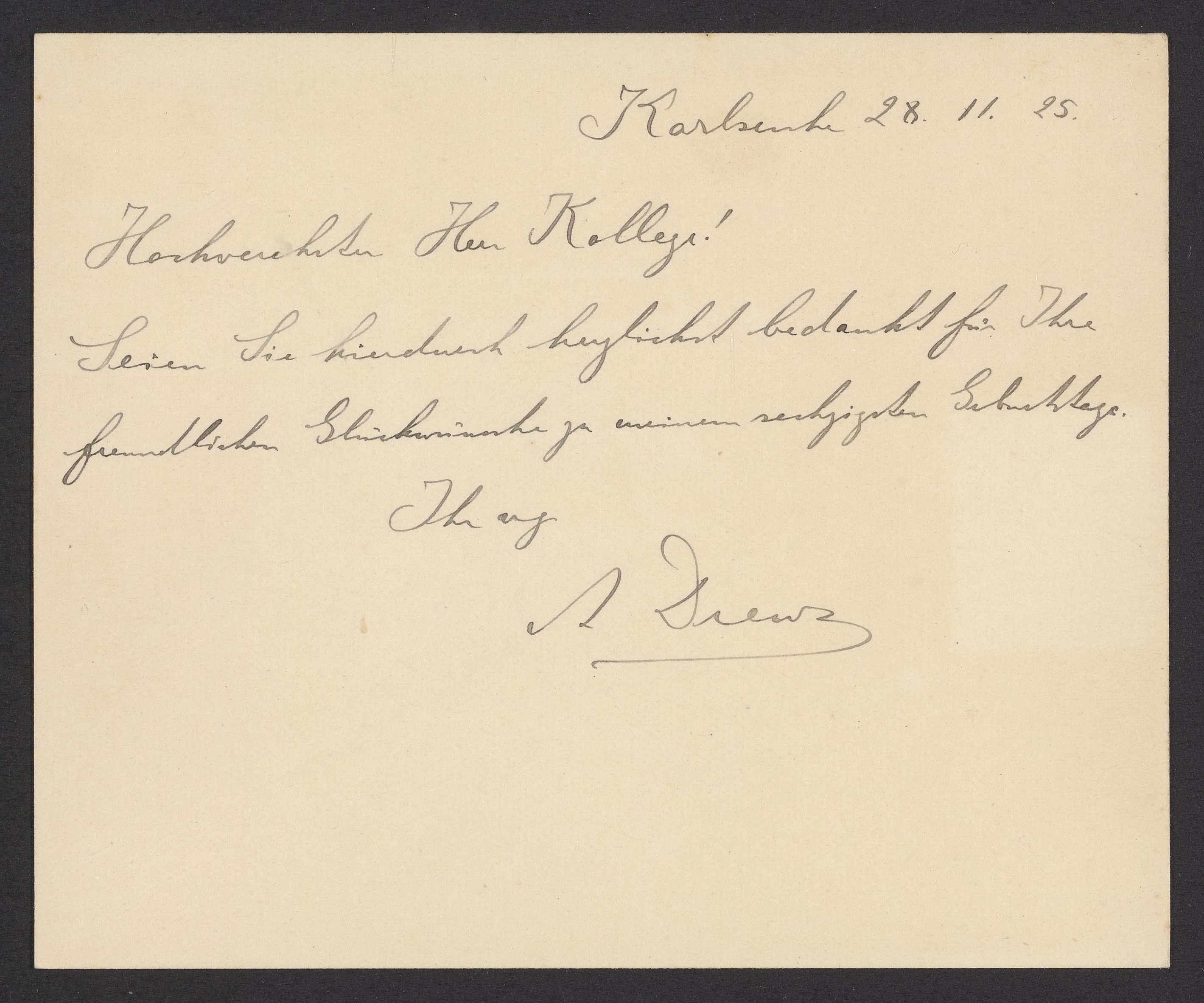 Thank you note from Arthur Drews to Georg Bredig, November 1925