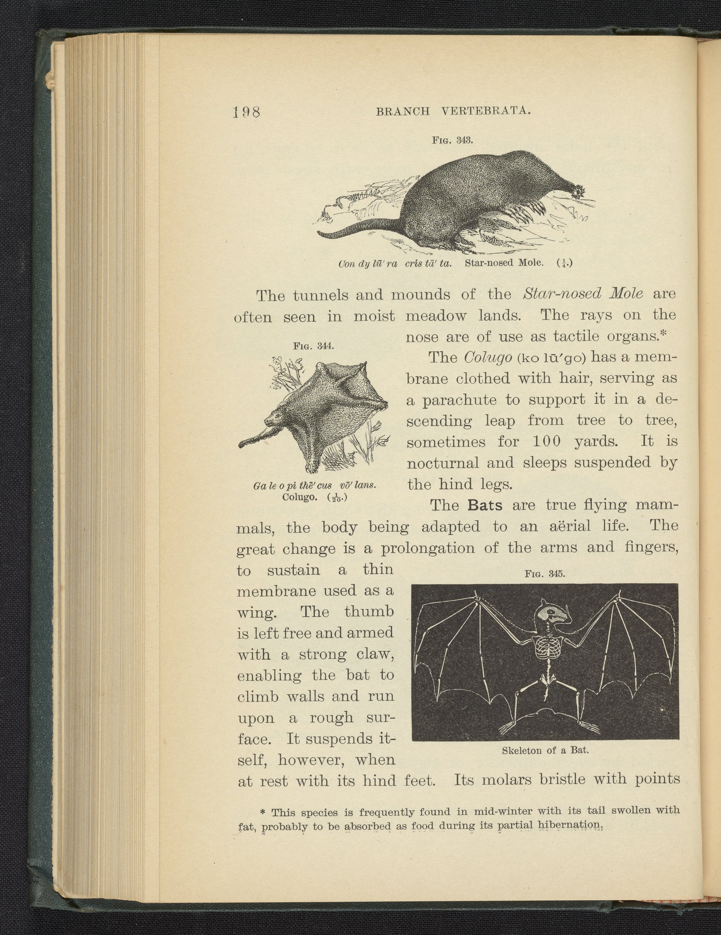 Steele, Joel Dorman, and Jenks, J. W. P. (John Whipple Potter). “Figure 343. Star-Nosed Mole. Figure 344. Colugo. Figure 345. Skeleton of a Bat .” Popular Zoology. New York, New York: Chautauqua Press, 1887. https://digital.sciencehistory.org/works/unfp92w.