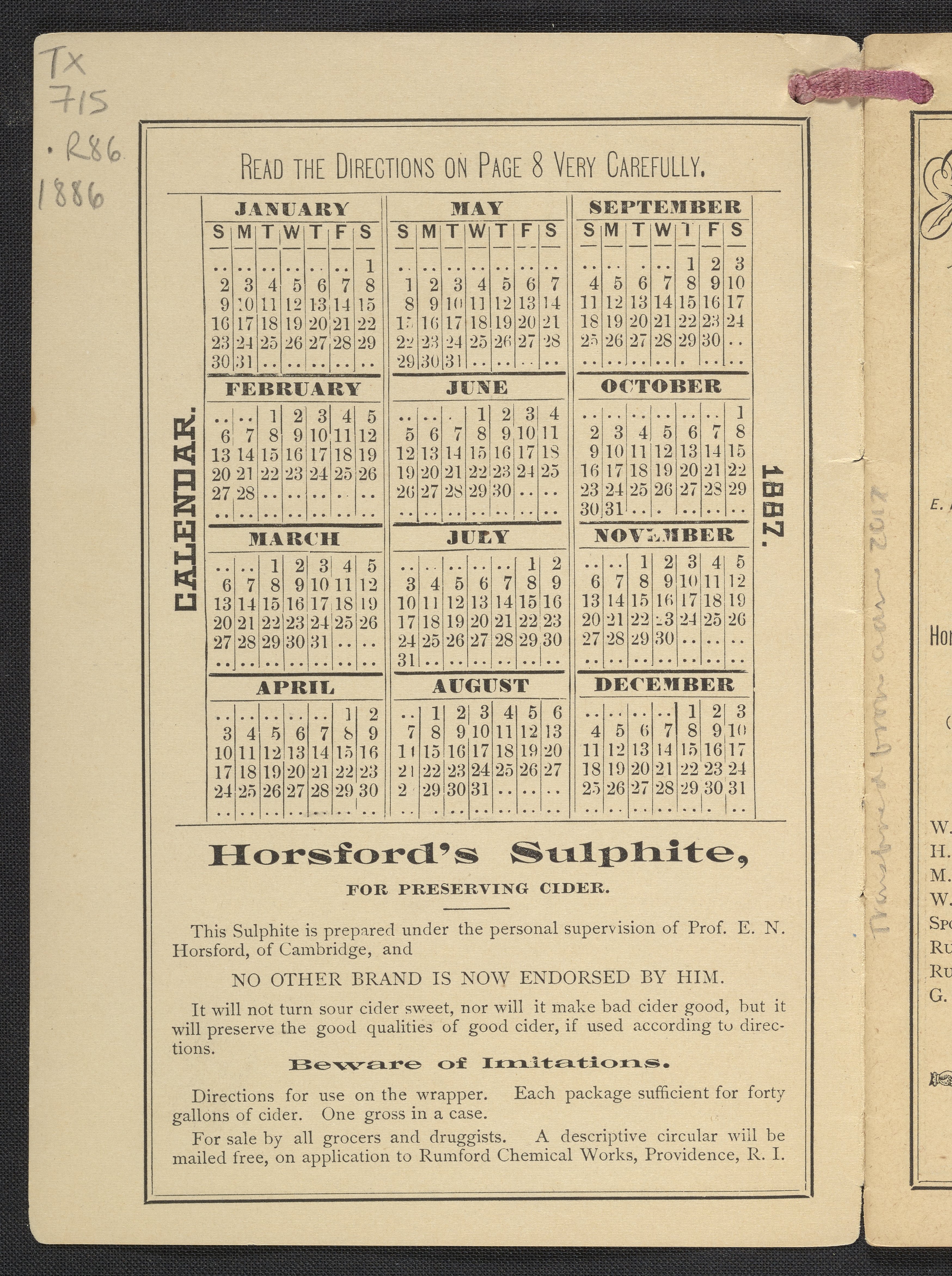 The Horsford 1887 Almanac and Cook Book