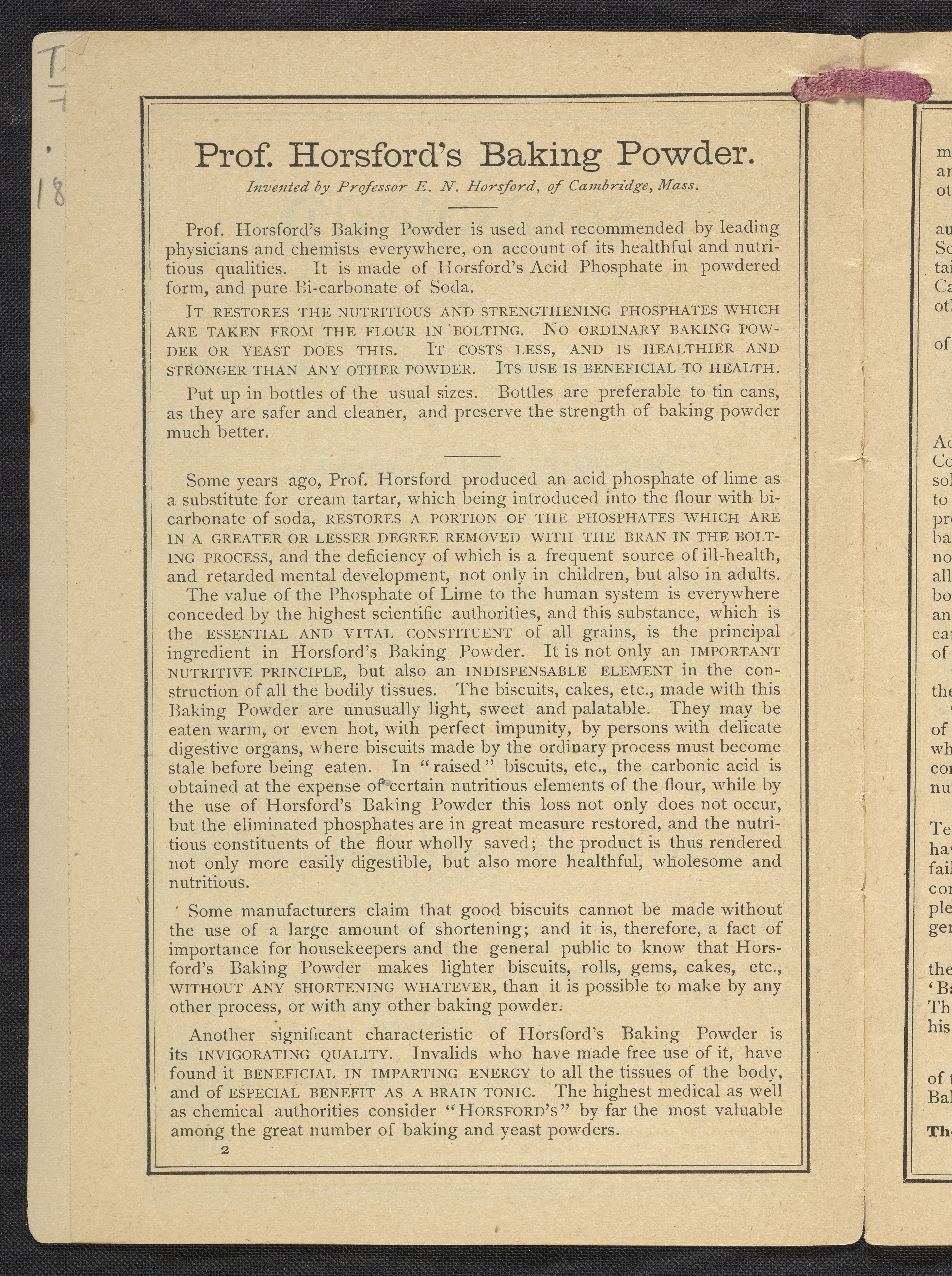 “The Horsford 1887 Almanac and Cook Book.” Providence, Rhode Island: Rumford Chemical Works, 1887. https://digital.sciencehistory.org/works/uqo4l02.