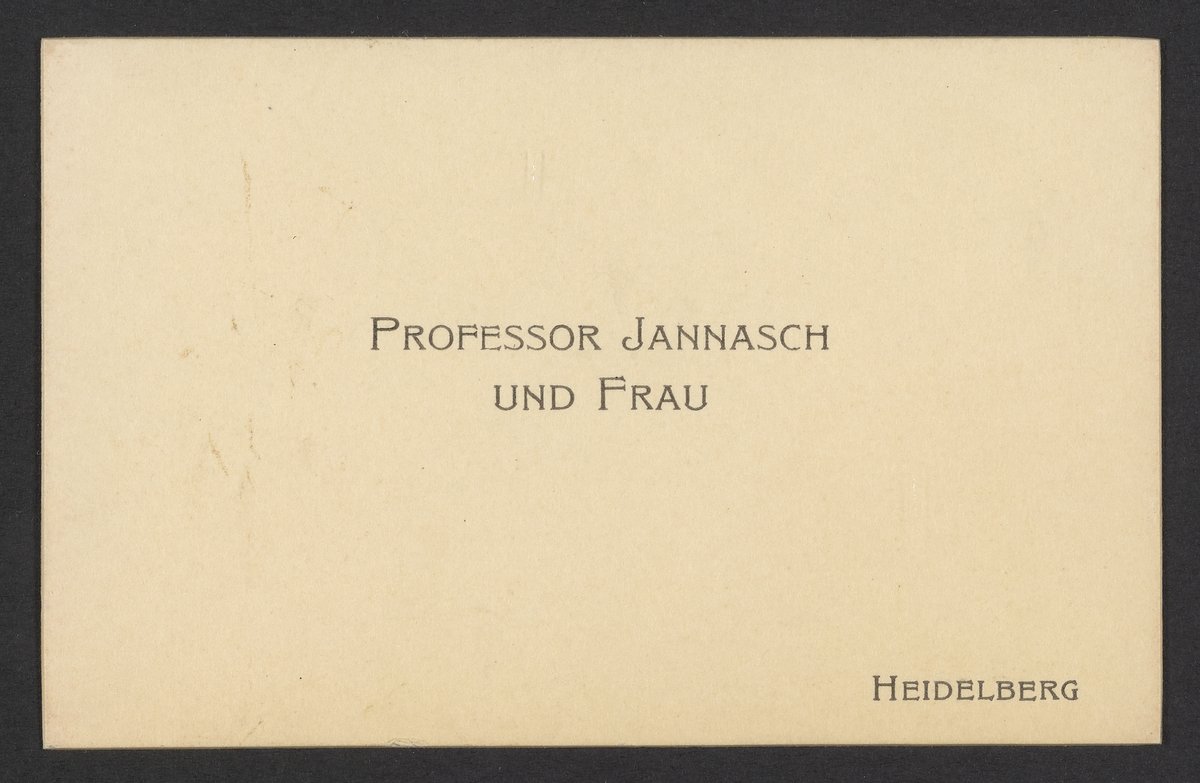 Calling card belonging to Paul Jannasch (1841-1921), a German chemist and professor at Heidelberg University.