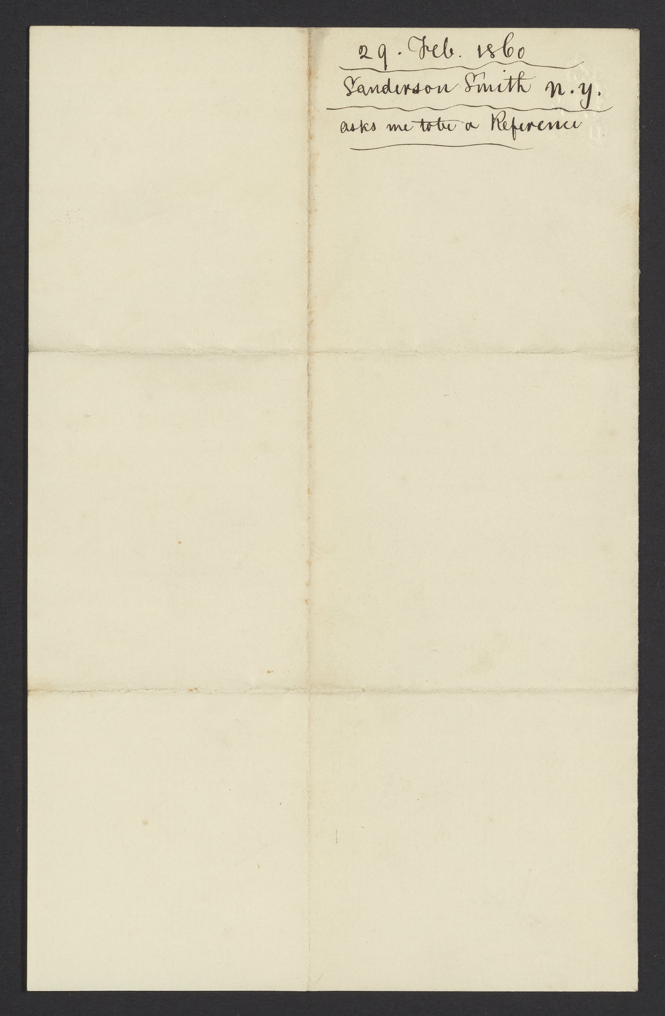 Small JPG1200 x 1826px — 286 KBFull-sized JPG2243 x 3413px — 878 KBOriginal fileTIFF — 2243 x 3413px — 22.0 MBSanderson Smith asks James Curtis Booth (1810-1888) to be a reference.