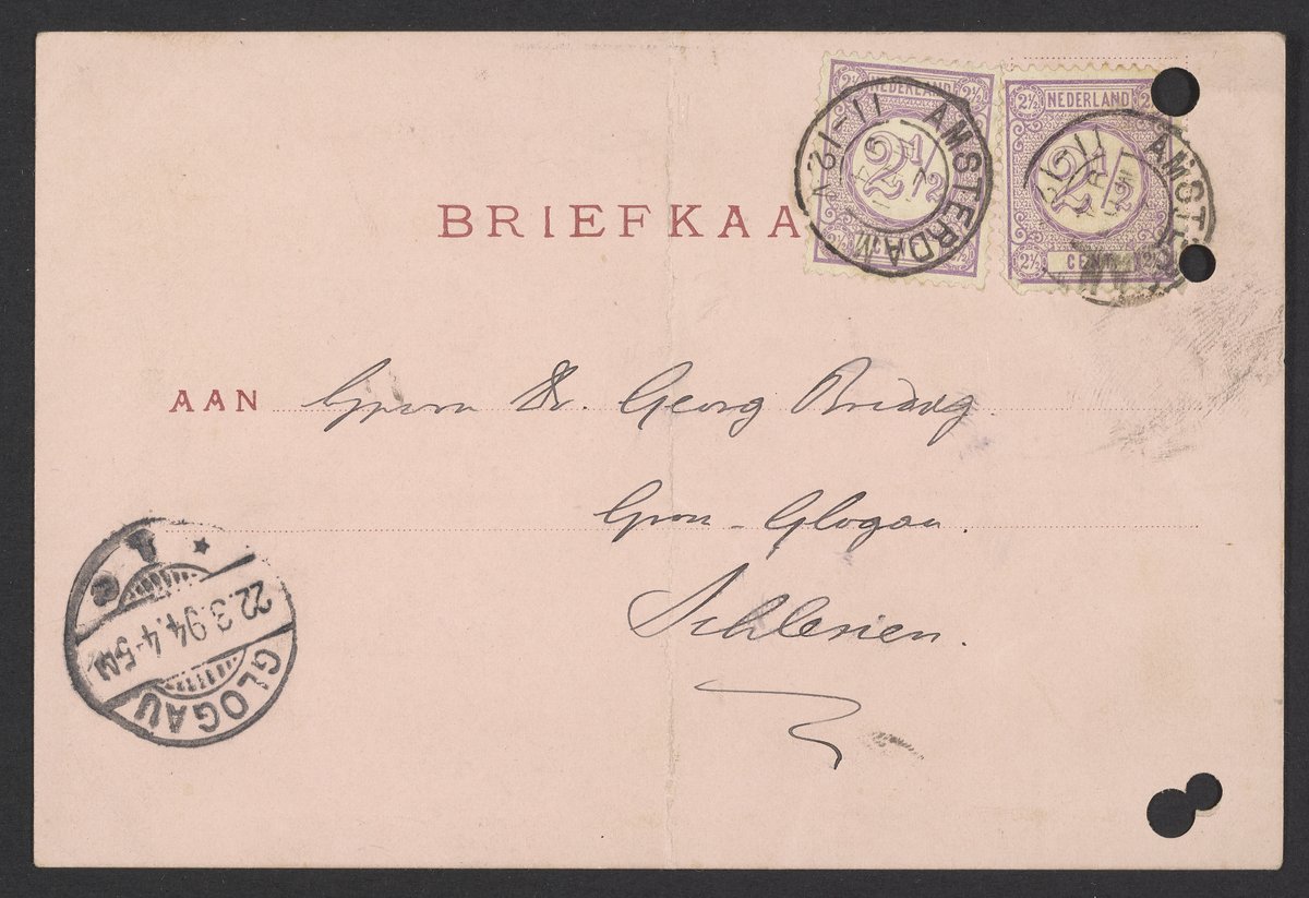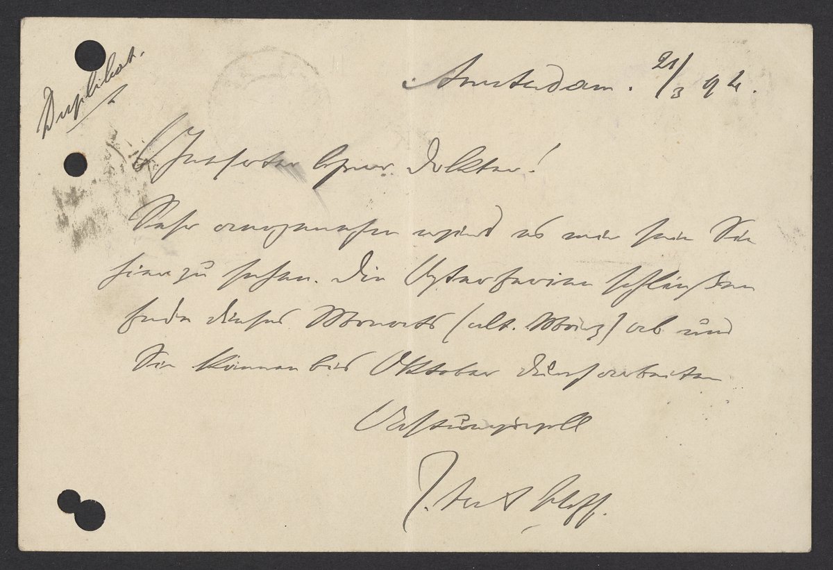 Postcard from Jacobus van 't Hoff to Georg Bredig, March 1894
