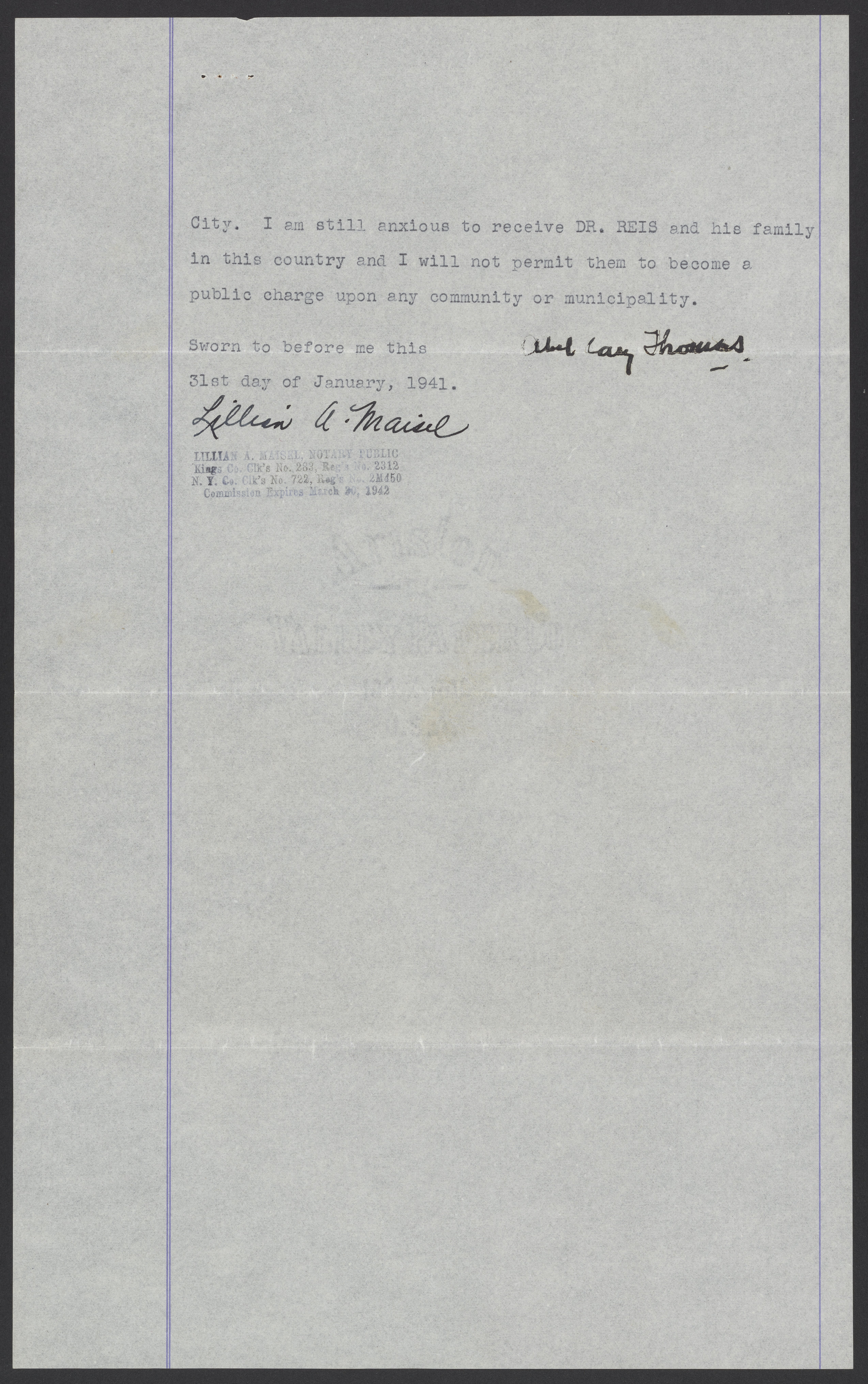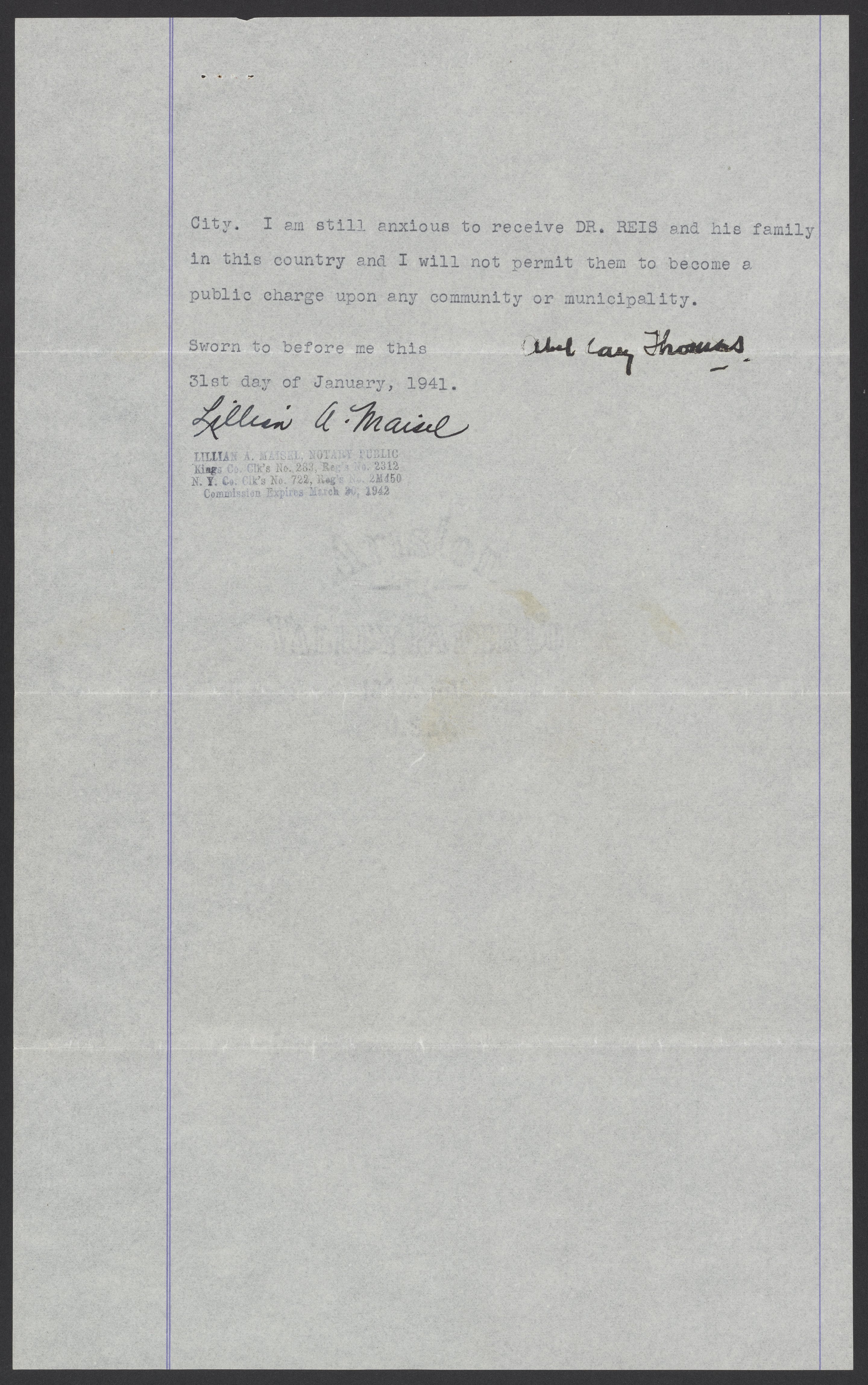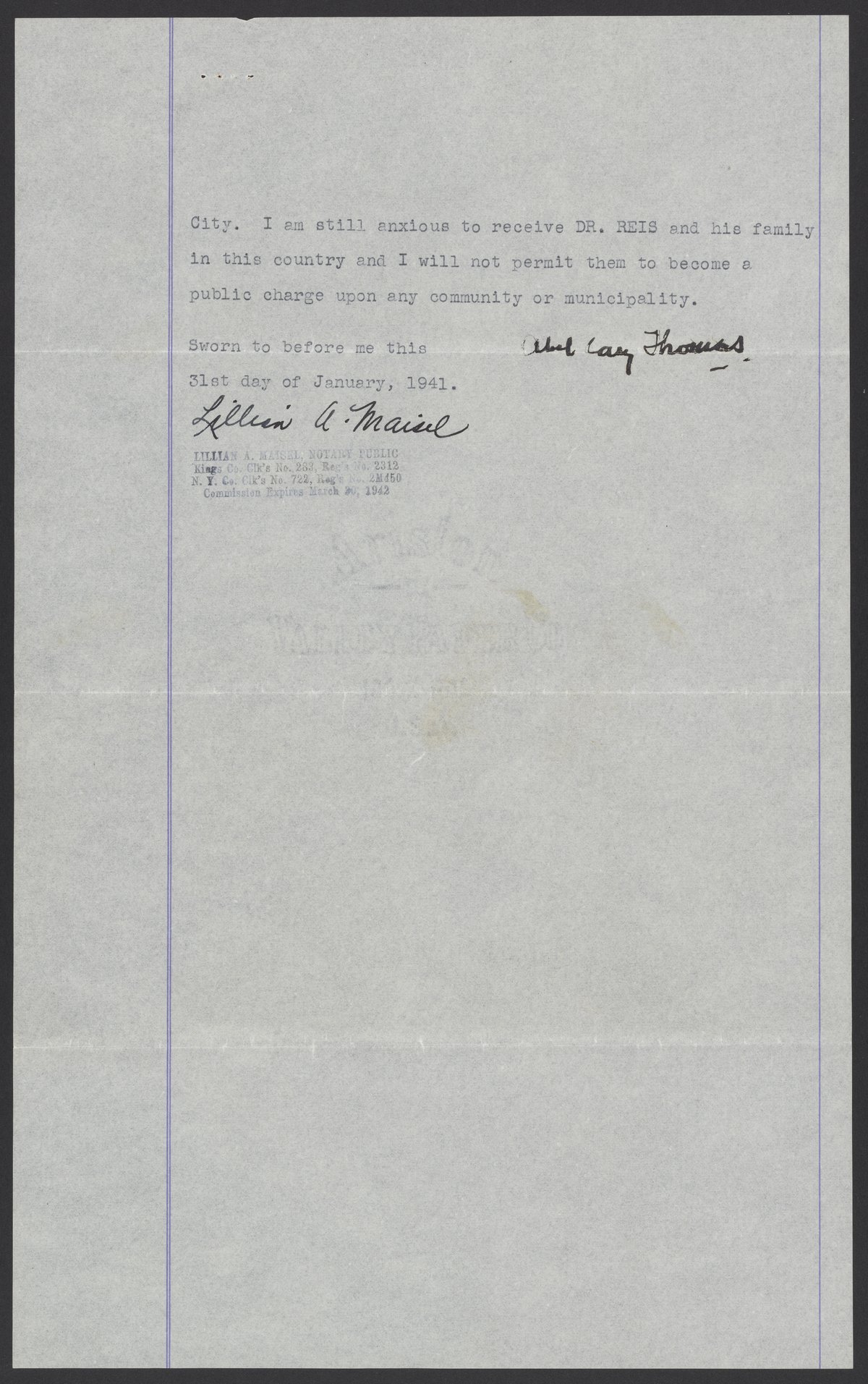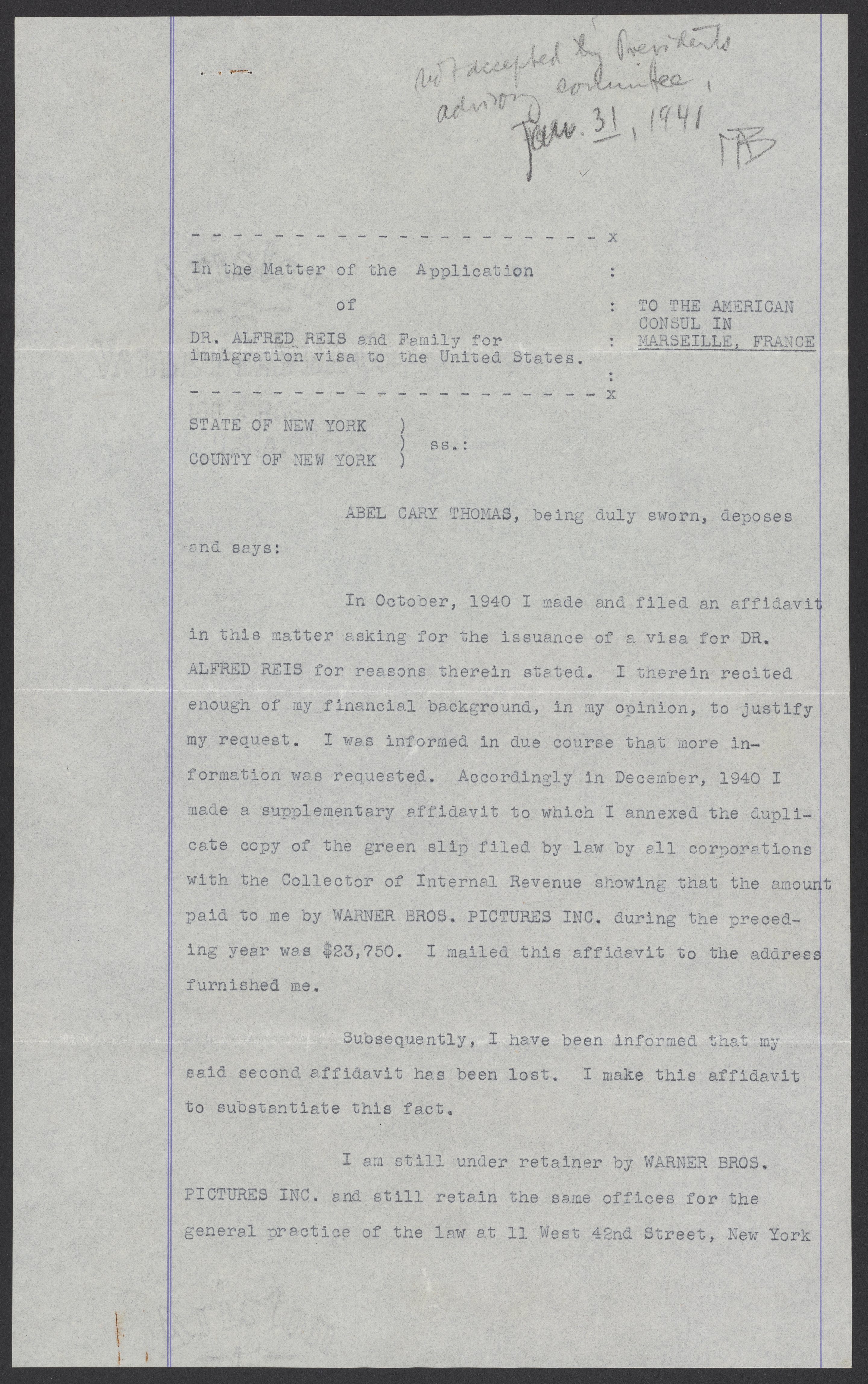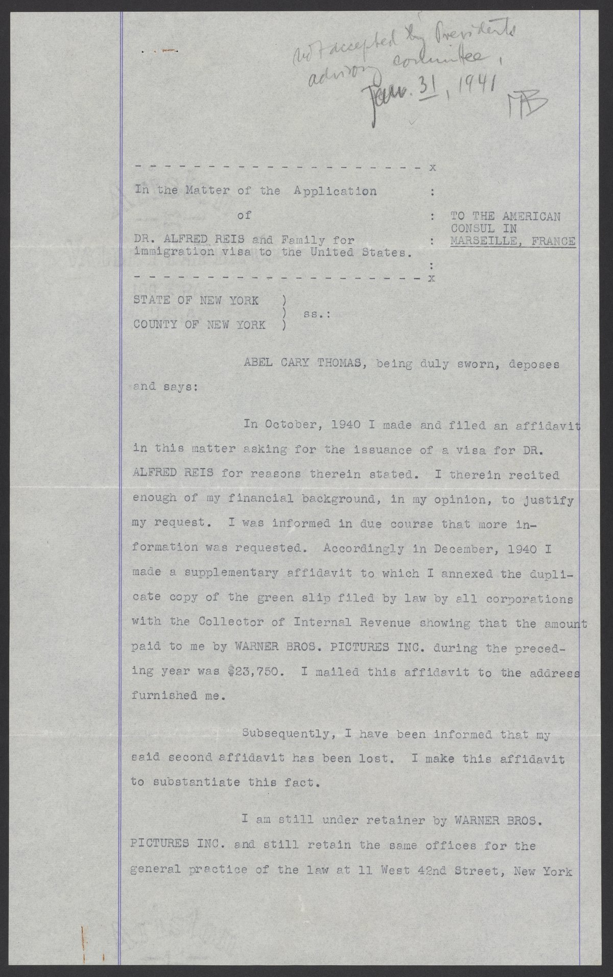 Affidavit by Abel Cary Thomas in support of Alfred Reis