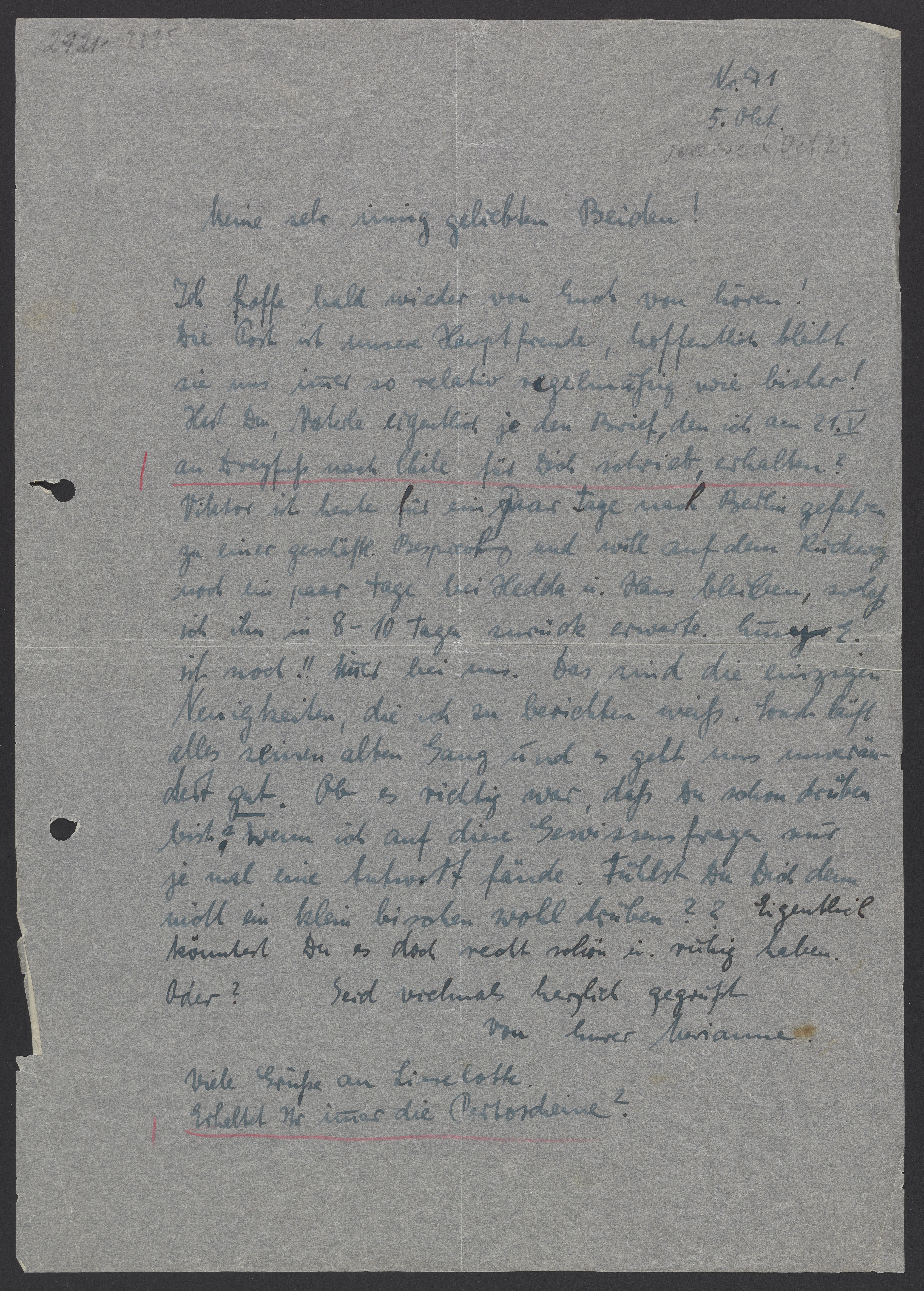 Seid vielmals herzlich gegrüßt von Eurer Marianne.