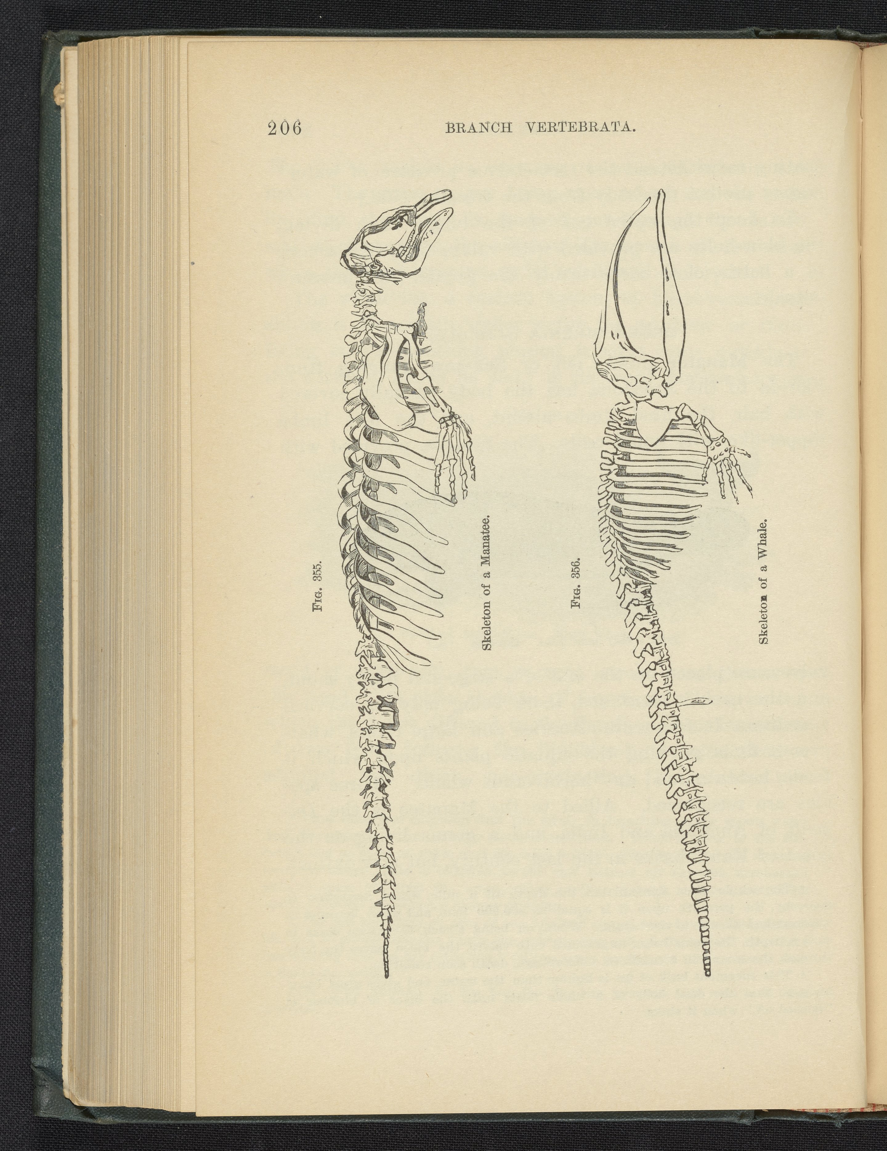 Steele, Joel Dorman, and Jenks, J. W. P. (John Whipple Potter). “Figure 355. Skeleton of a Manatee. Figure 356. Skeleton of a Whale.” Popular Zoology. New York, New York: Chautauqua Press, 1887. https://digital.sciencehistory.org/works/v744f3q.