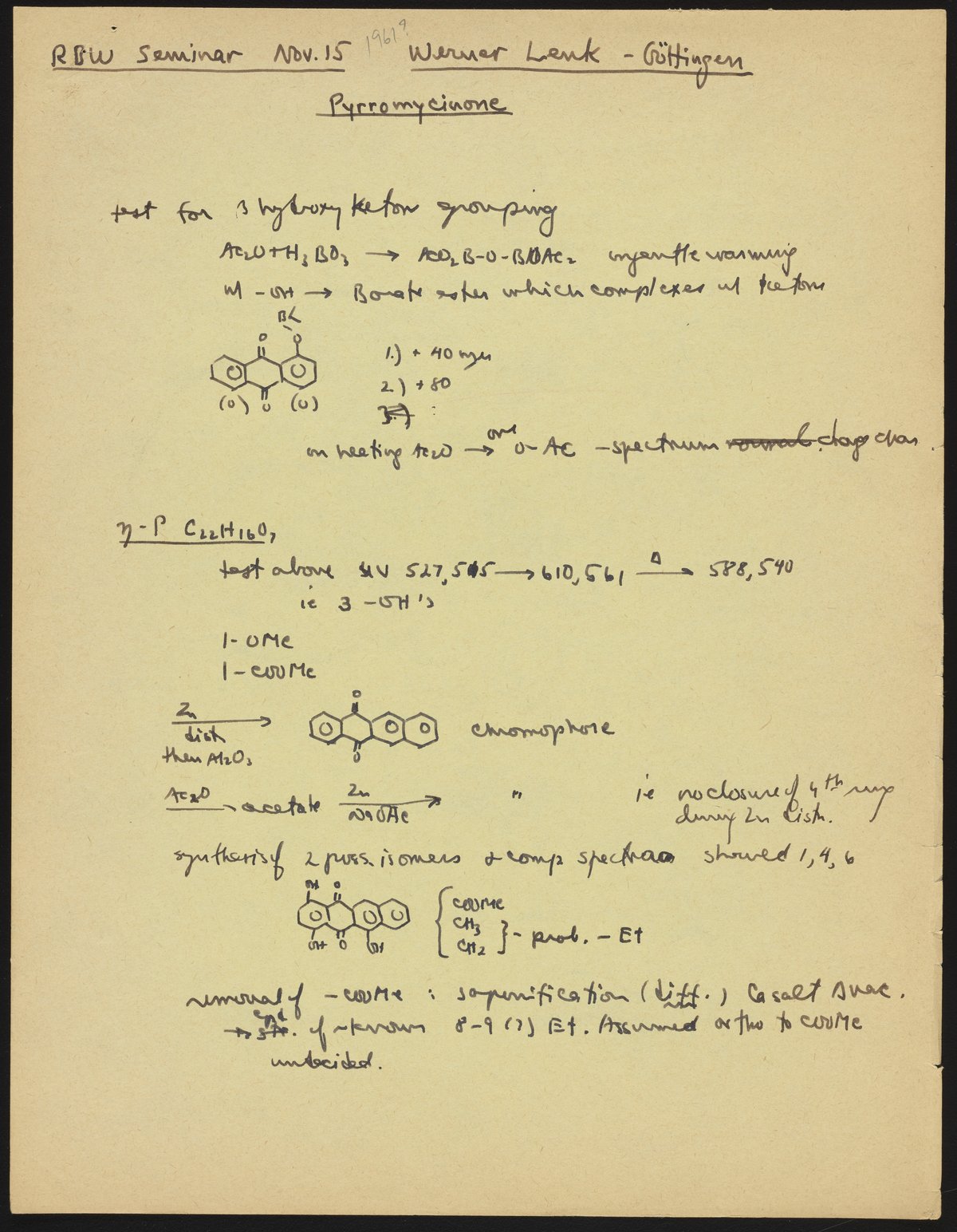 R. B. (Robert Burns) Woodward Seminar entitled "Werner Lenk - Göttingen/Pyrromycinone"