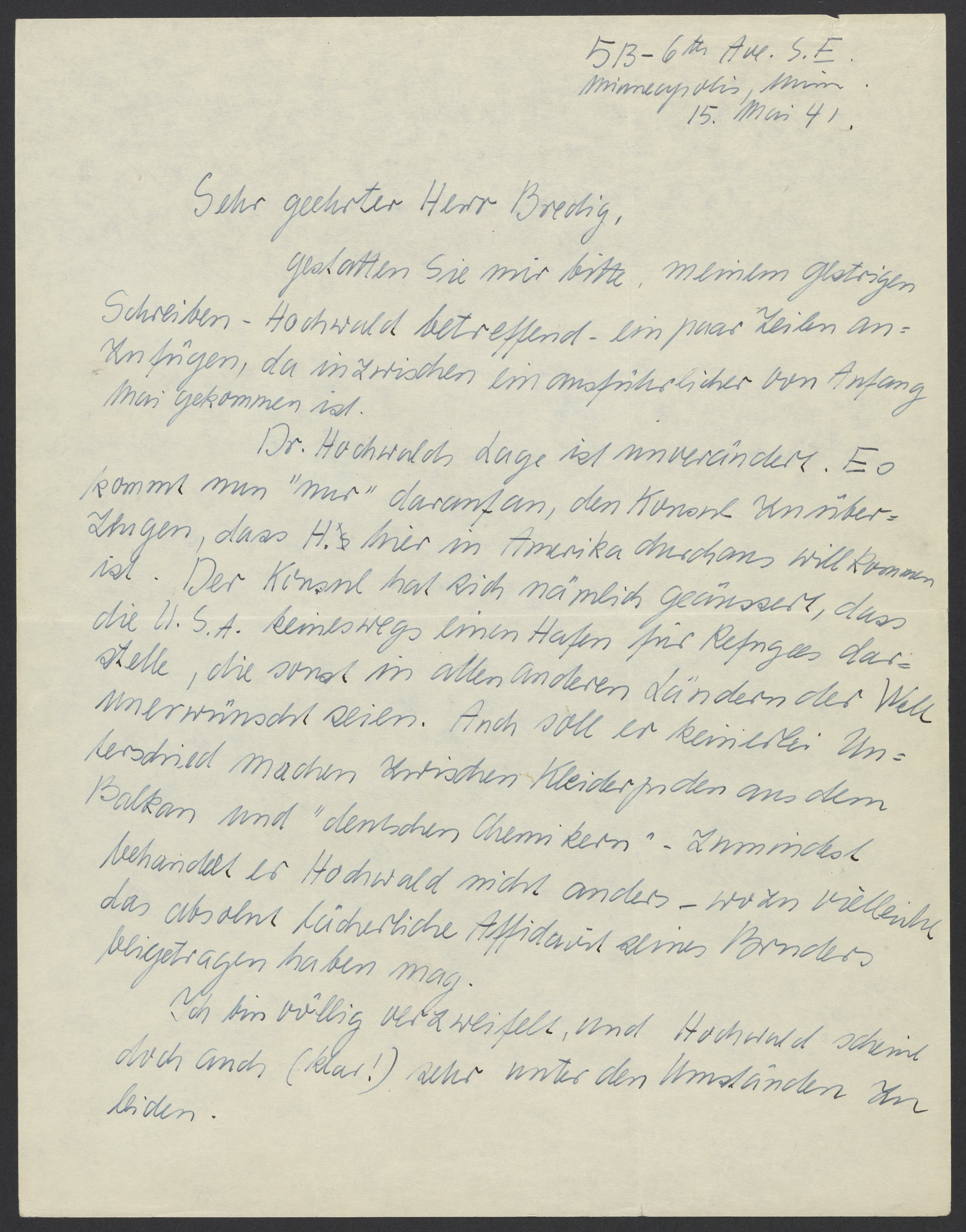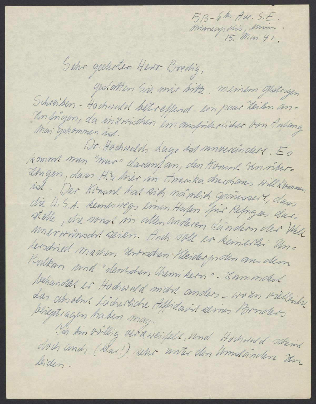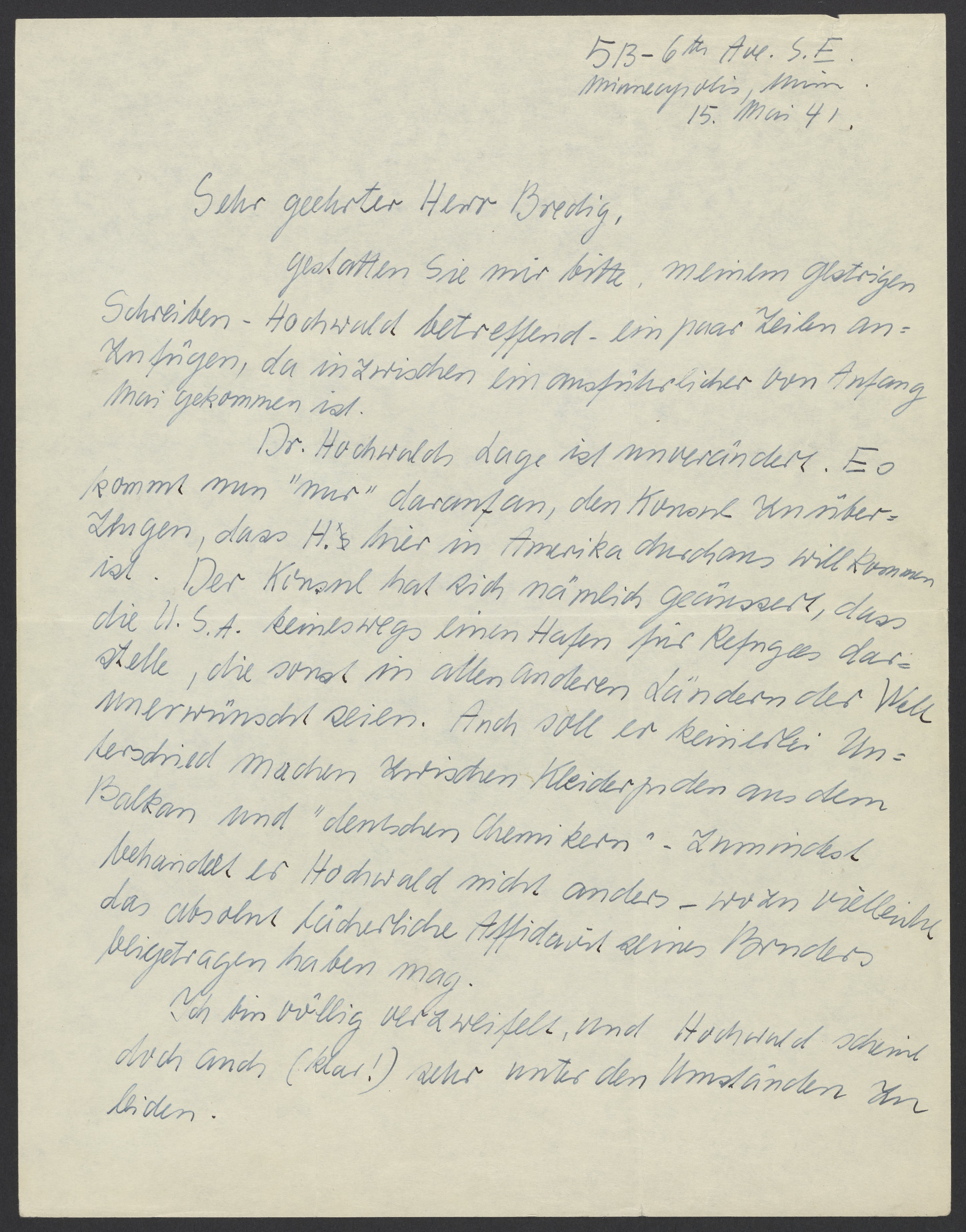 Letter from Ilse Wolfsberg to Max Bredig, May 15, 1941