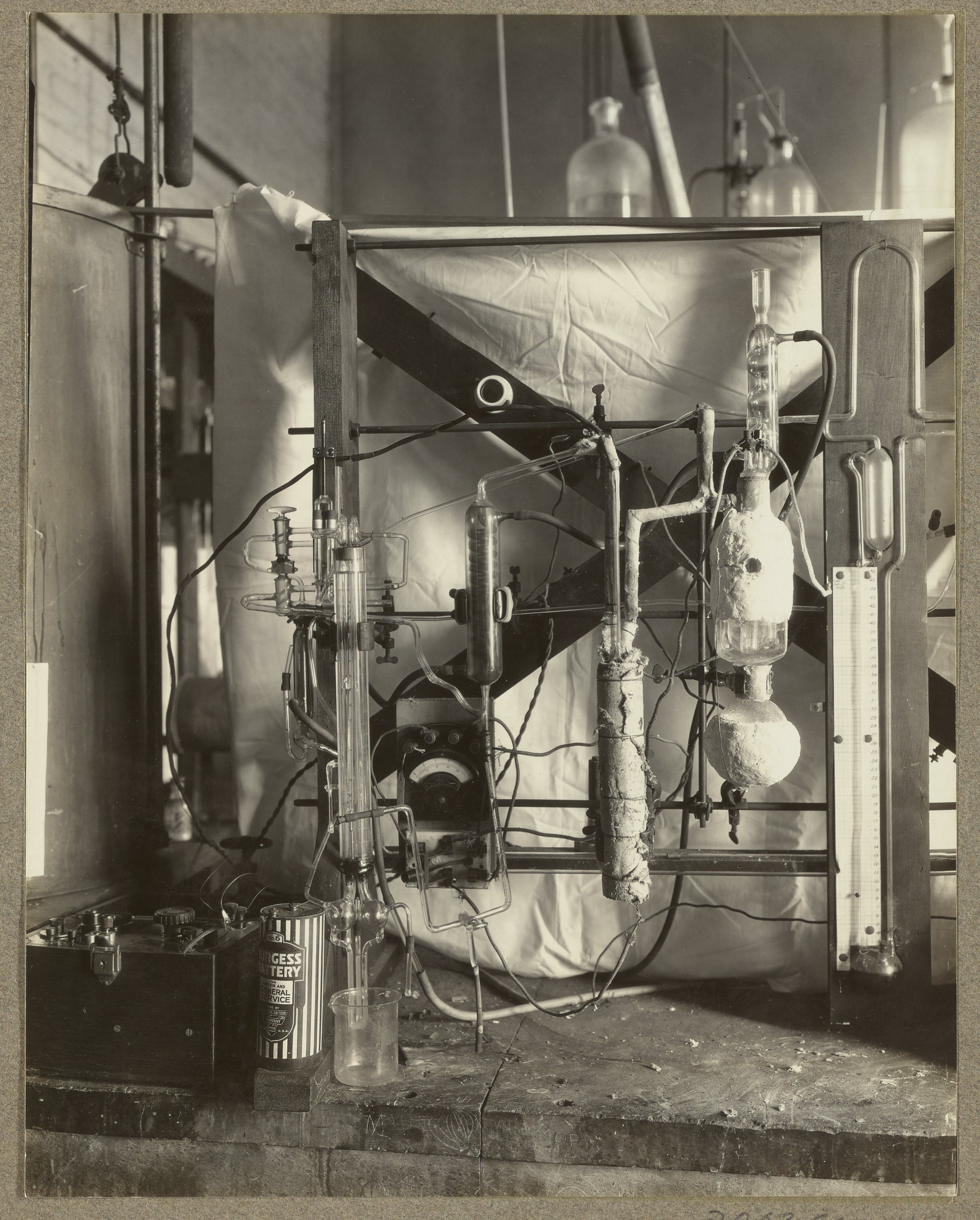 “Experimental Apparatus for Production of Hydrogen,” July 26, 1927. Travis P. Hignett Collection of Fixed Nitrogen Research Laboratory Photographs, Box 1. Science History Institute. Philadelphia. https://digital.sciencehistory.org/works/vd66vz98m.
