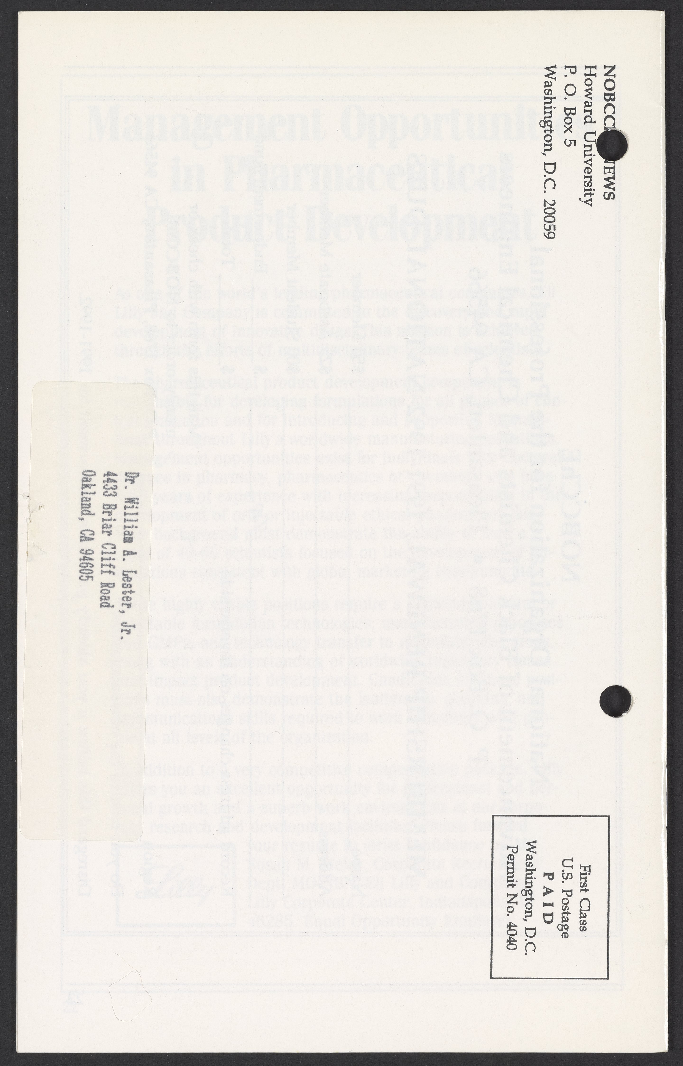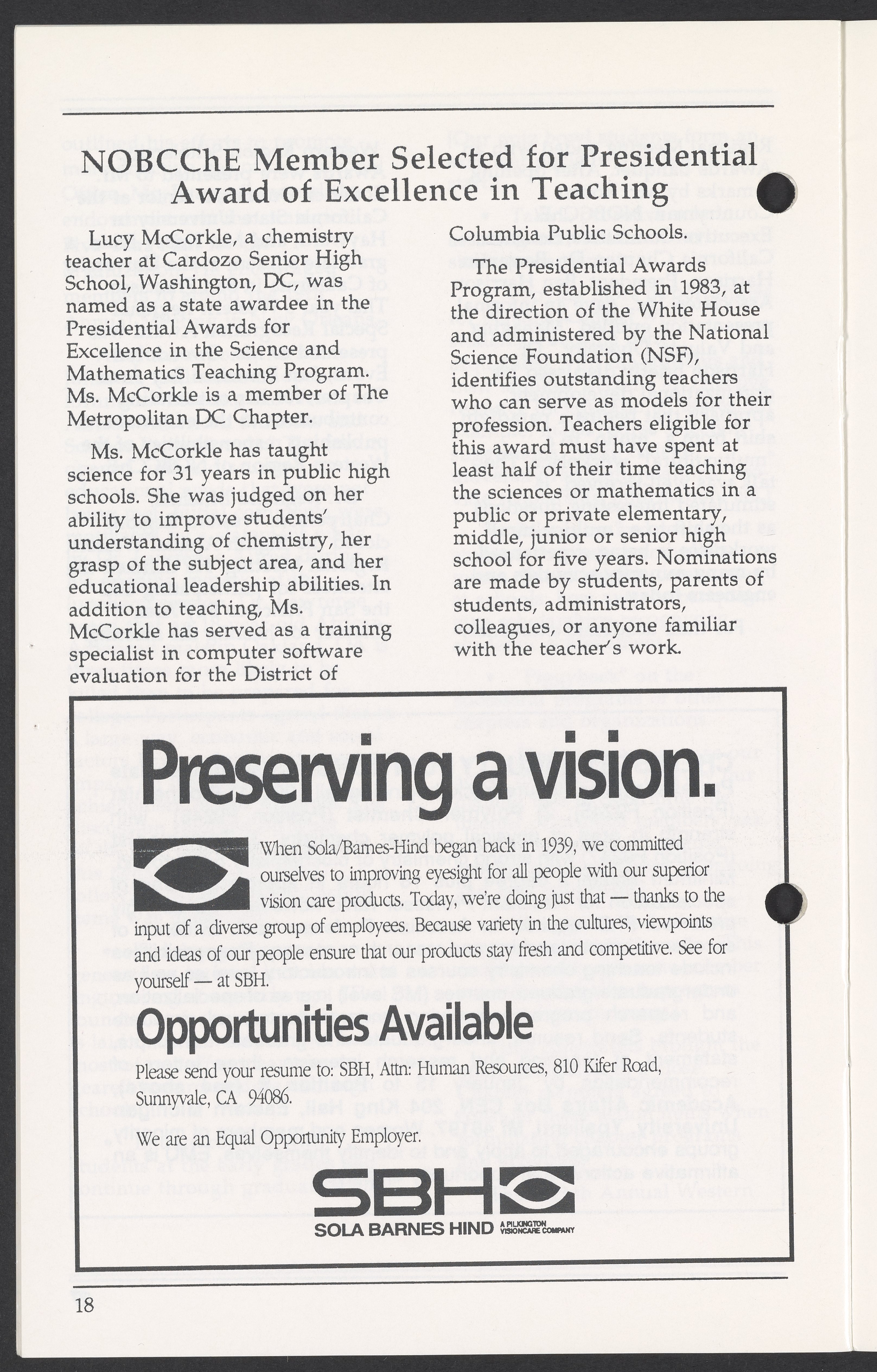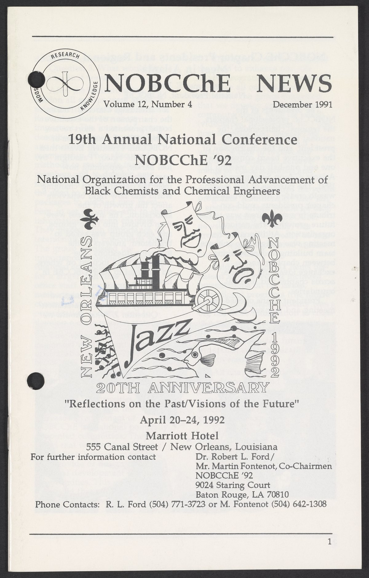 “NOBCChE News, Volume 12, Number 4.” National Organization for Black Chemists and Chemical Engineers, December 1991. William A. Lester, Jr. Papers, Box 46, Folder 26. Science History Institute. Philadelphia. https://digital.sciencehistory.org/works/vflnf6c.