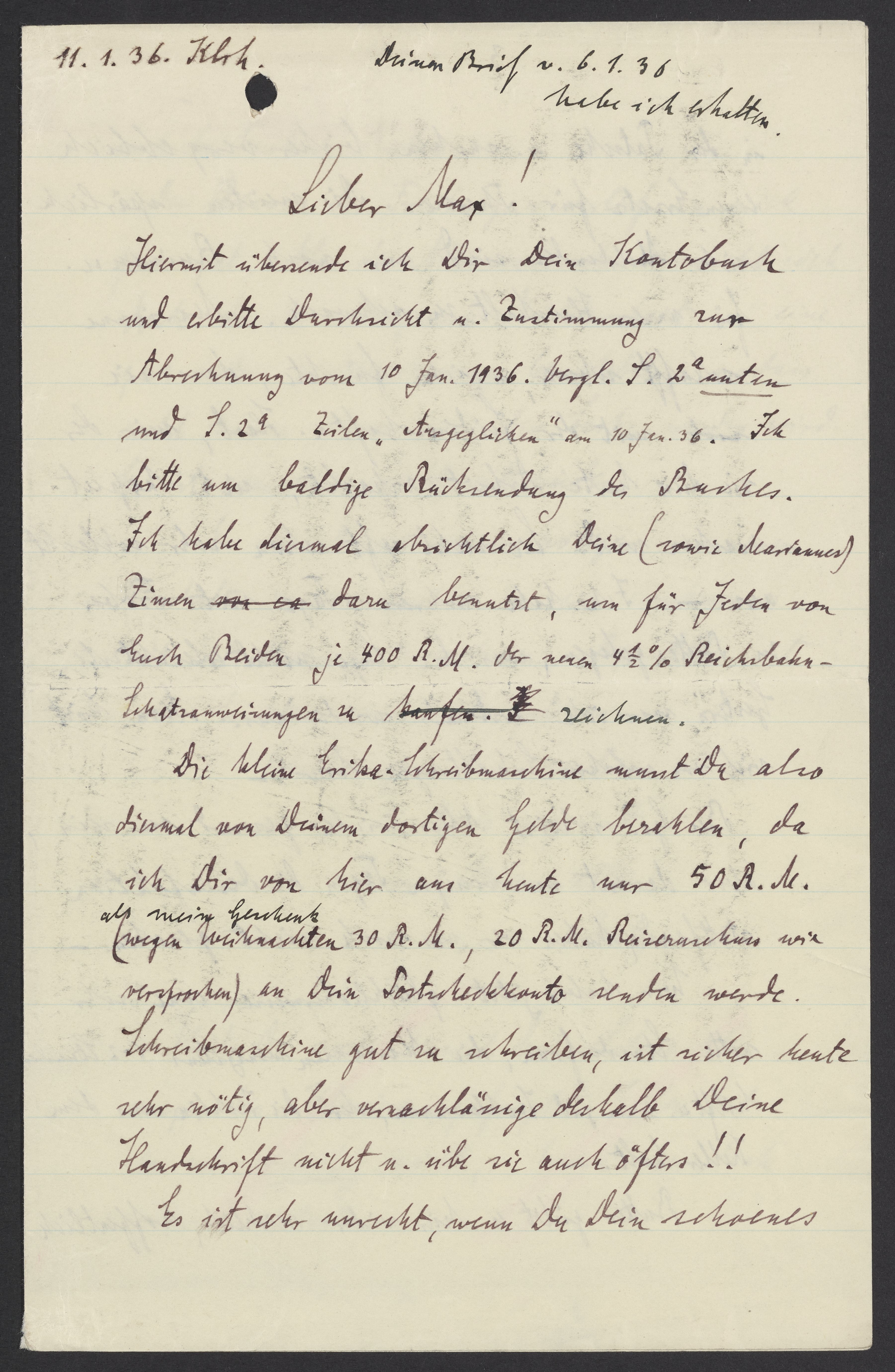 Letter from Georg Bredig to Max Bredig, January 11, 1936
