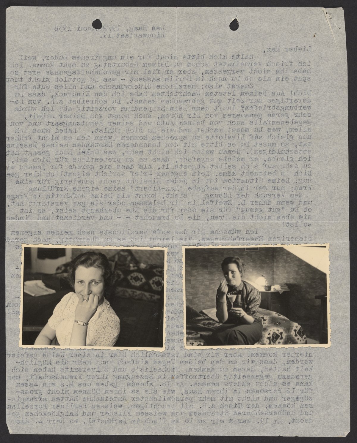 Small JPG1200 x 1500px — 482 KBLarge JPG2880 x 3600px — 2.4 MBFull-sized JPG5029 x 6287px — 6.5 MBOriginal fileTIFF — 5029 x 6287px — 90.5 MBLetter to Max Bredig (1902-1977) from Alfred Schnell (1900-1944). Includes two black and white photographs, and handwritten note to Bredig from Albert's wife, Eva Schnell (1913-1944).