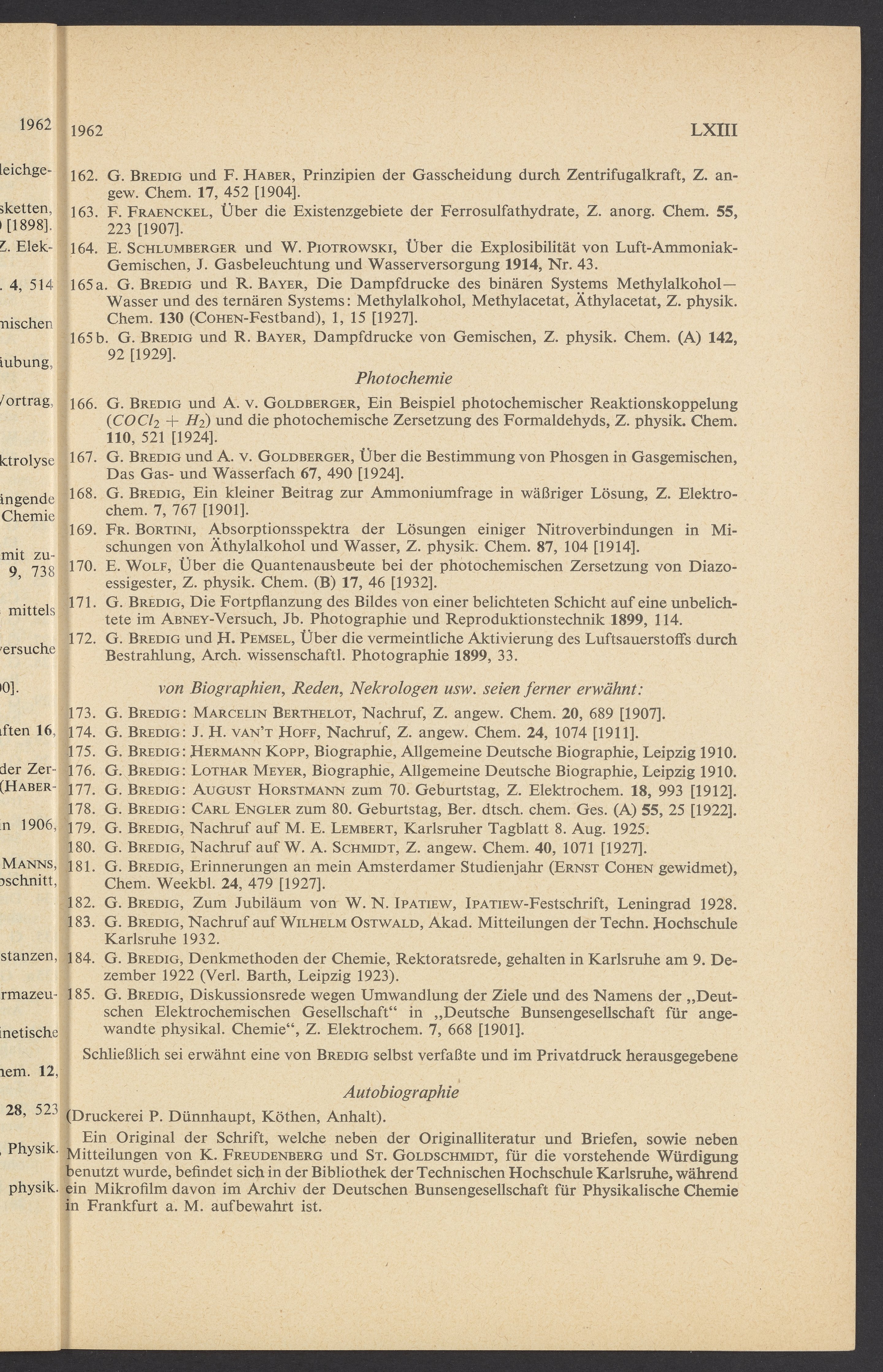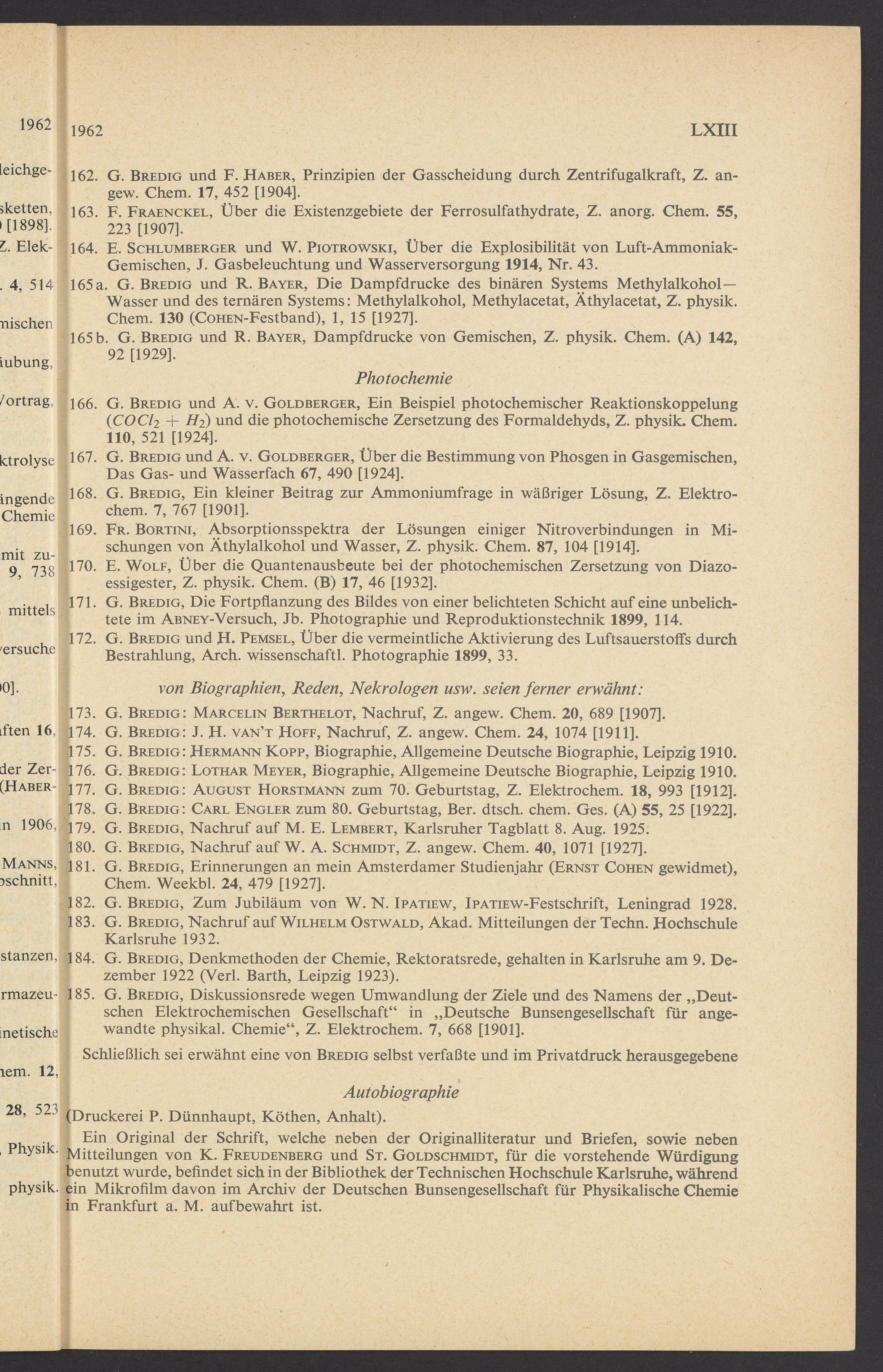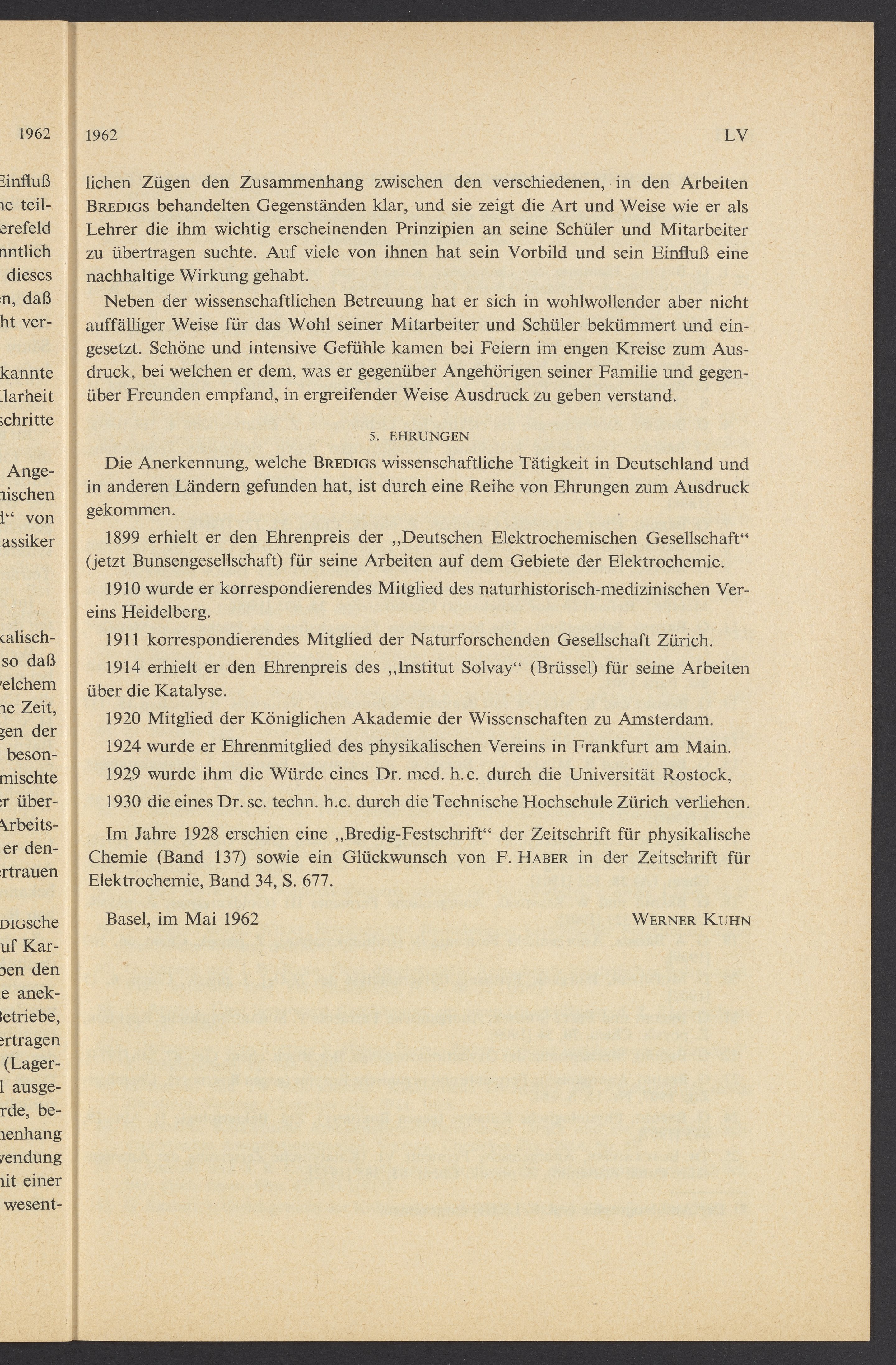 Kuhn, Werner. “Georg Bredig: In Memoriam,” November 1, 1962. Papers of Georg and Max Bredig, Box 4, Folder 10. Science History Institute. Philadelphia. https://digital.sciencehistory.org/works/vlqqkk0.