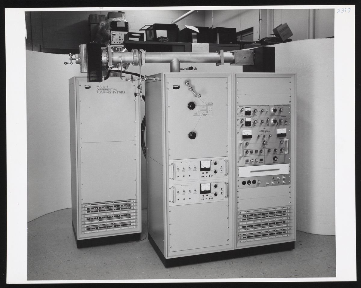 Bendix Corporation. “Bendix MA-015 Differential Pumping System,” 1970–1979. Photographs from the Bendix Time-of-Flight Mass Spectrometer Collection, Box 2. Science History Institute. Philadelphia. https://digital.sciencehistory.org/works/vm40xr869.