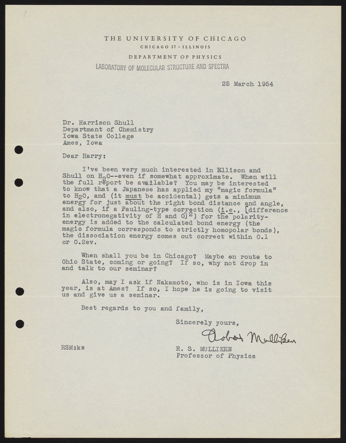 Mulliken, Robert Sanderson. “Letter from Robert S. Mulliken to Harrison Shull, 1954,” March 25, 1954. Robert S. Mulliken & Harrison Shull Correspondence, Box 1. Science History Institute. Philadelphia. https://digital.sciencehistory.org/works/vt150j32w.