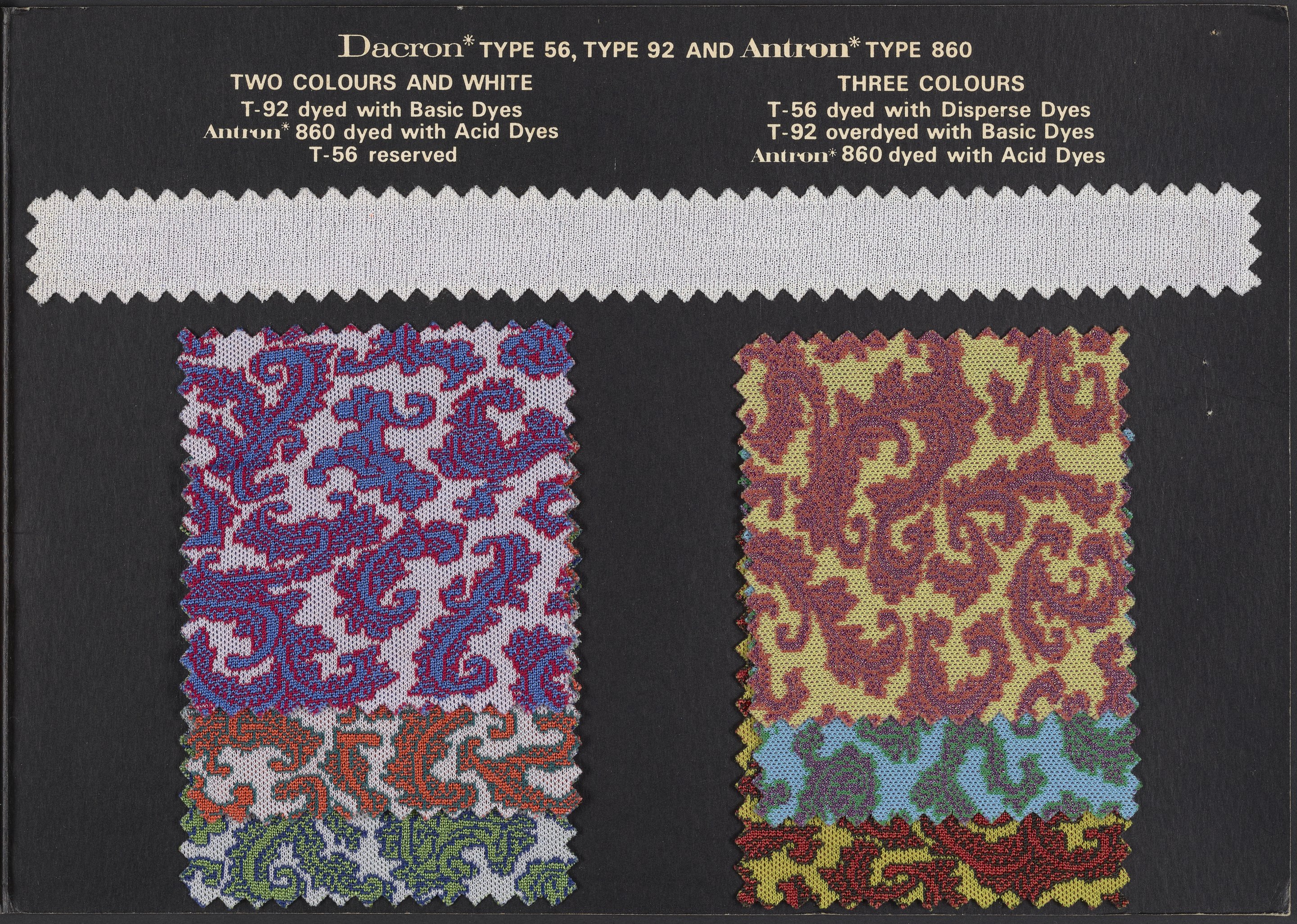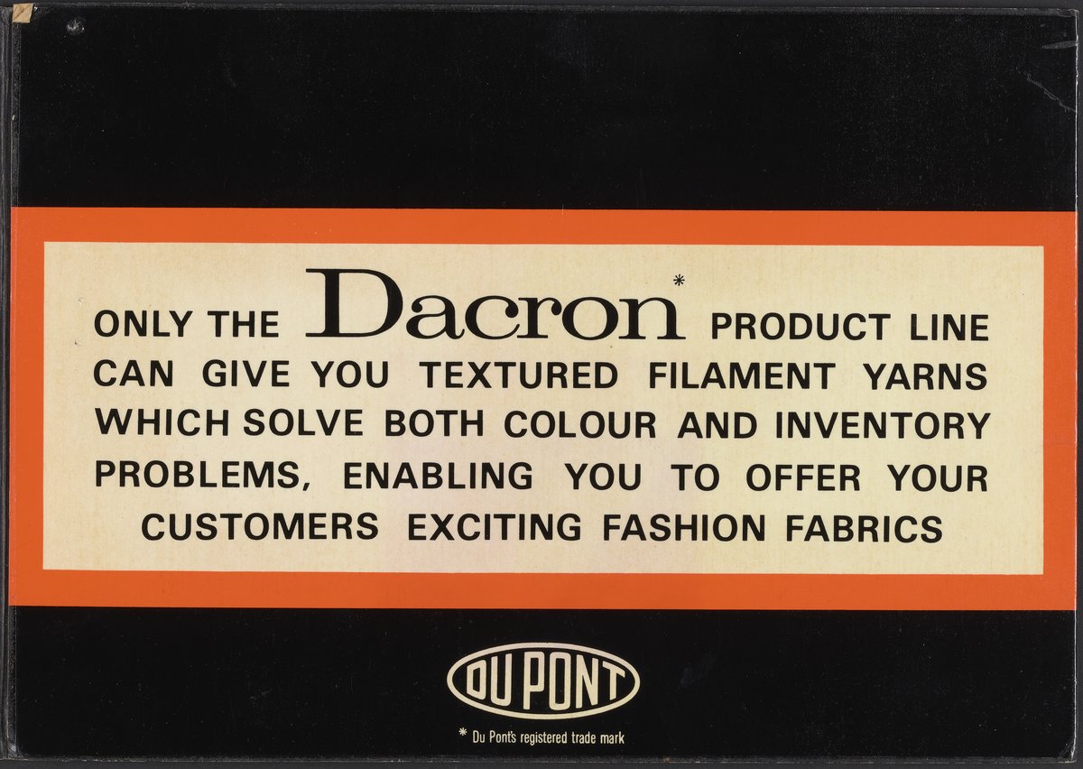 E.I. du Pont de Nemours & Company. Dacron & Antron Colour Story. Wilmington, Delaware: E.I. du Pont de Nemours & Company, 1950–1970. https://digital.sciencehistory.org/works/vx0pbi5.