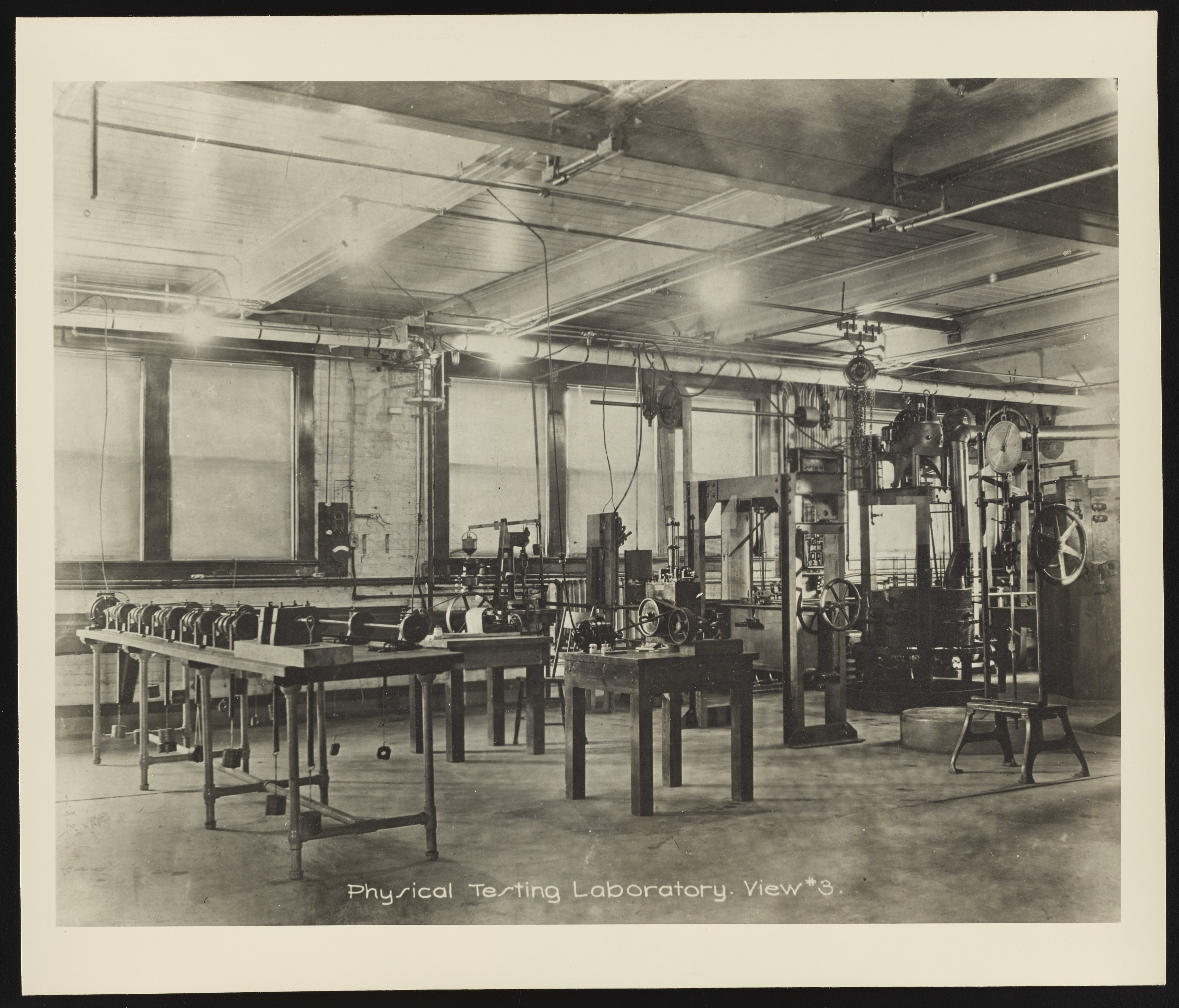 Dow Chemical Company. “Physical Testing Laboratory View #3,” 1930–1939. Dow Chemical Company Historical Image Collection, Box Oversized Plants 1. Science History Institute. Philadelphia. https://digital.sciencehistory.org/works/w08929960.