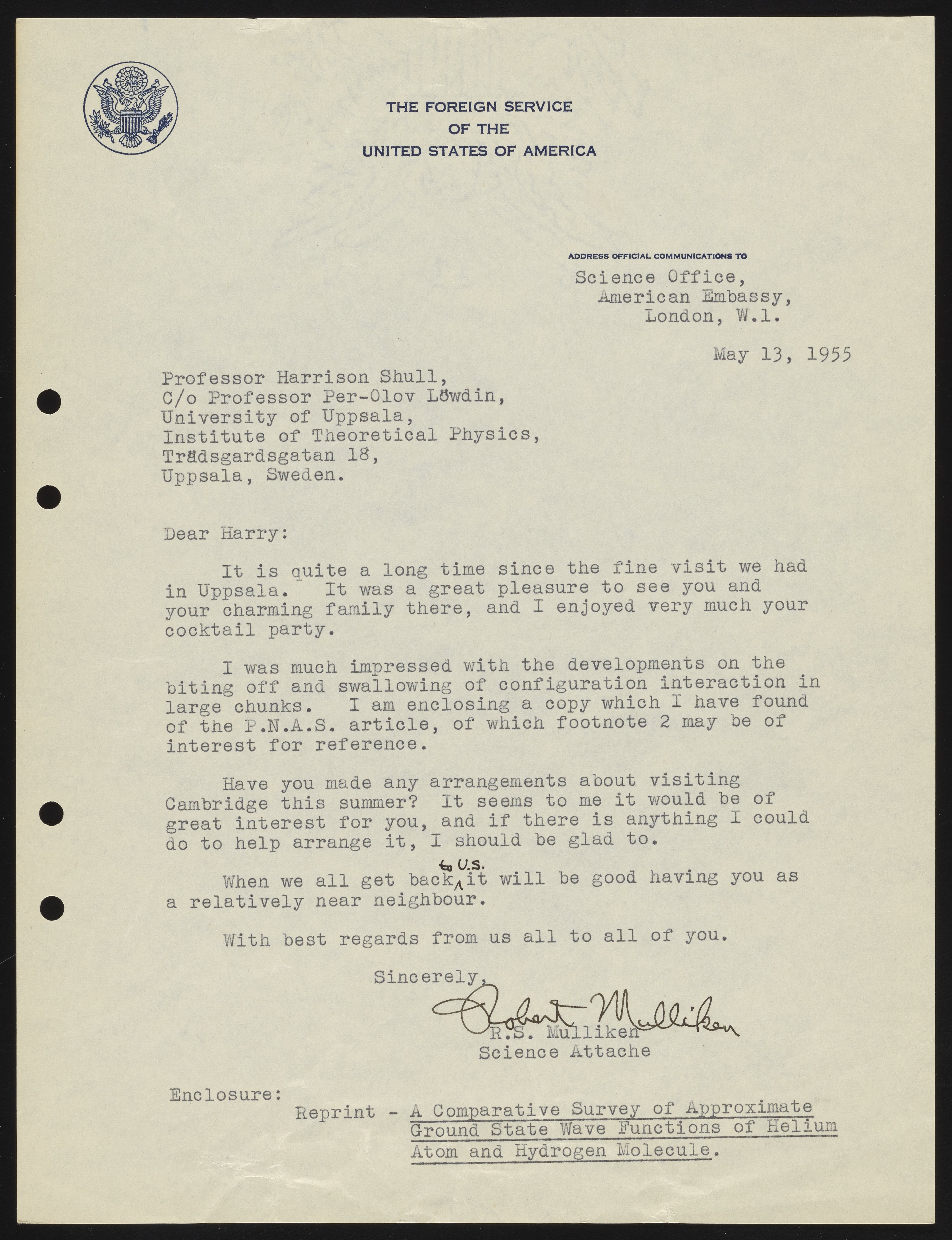 Letter from Robert S. Mulliken to Harrison Shull, 1955