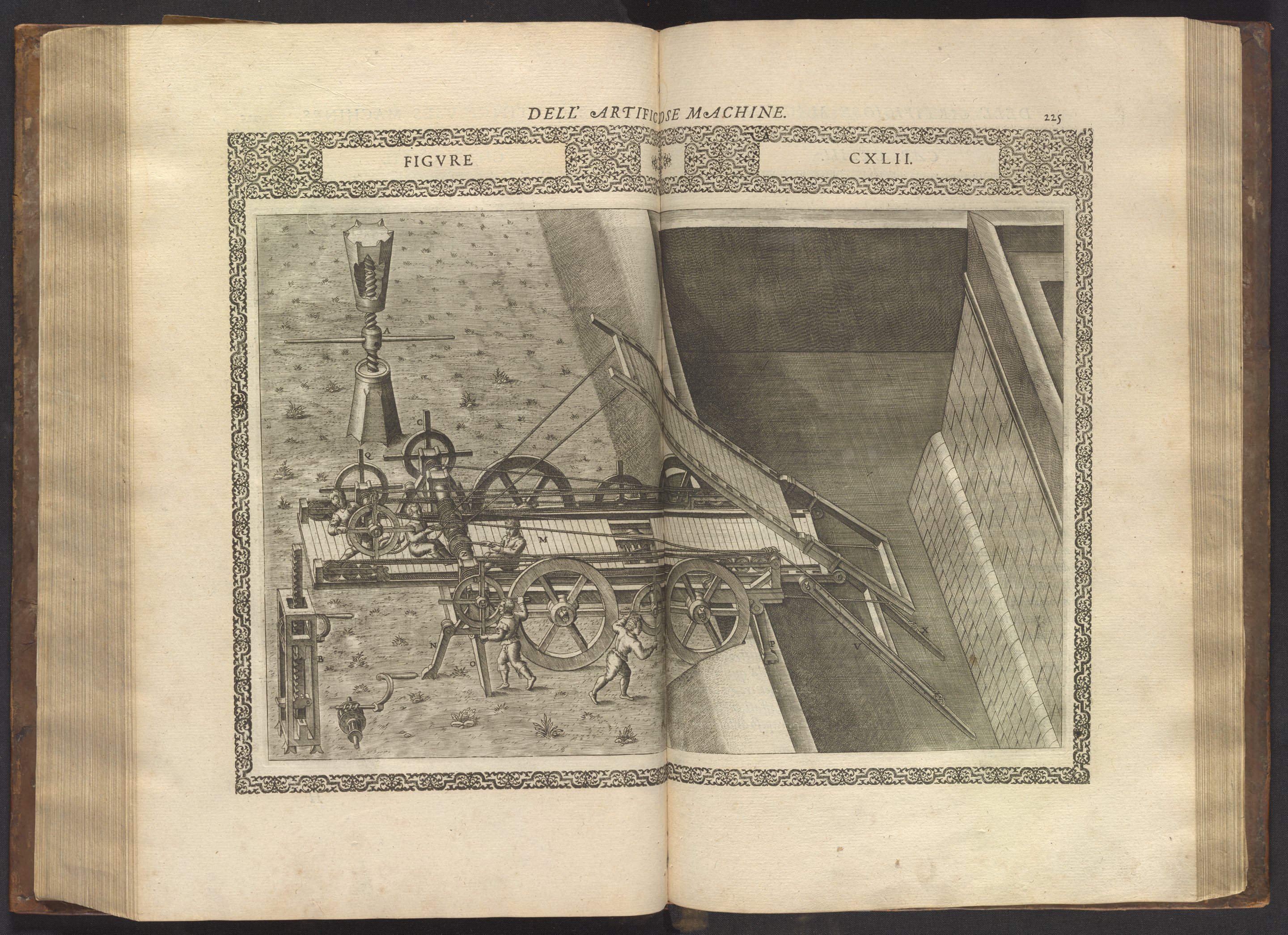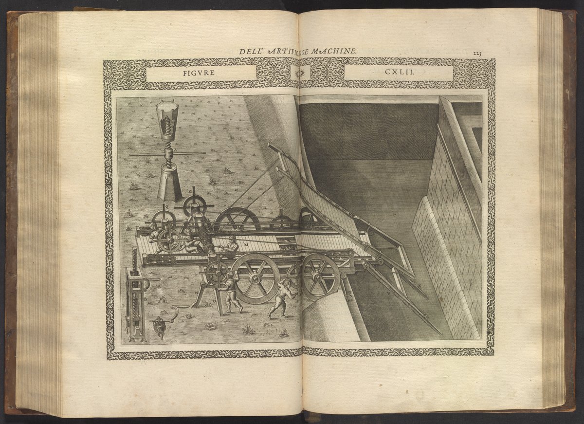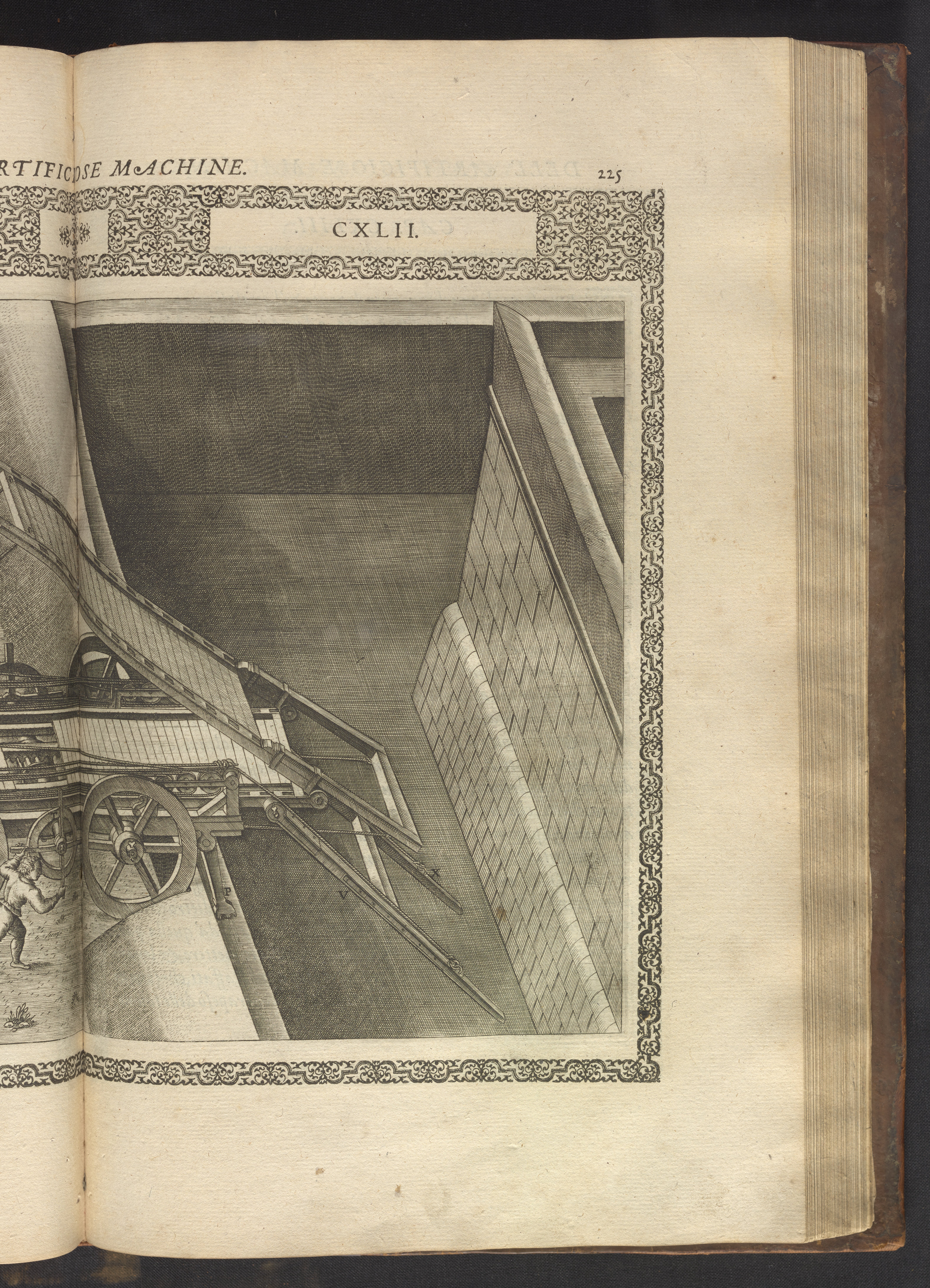 Ramelli, Agostino. “Plate 142: Bridge for Crossing a City or Fortress Moat and Scaling Its Wall.” In Le Diverse Et Artificiose Machine Del Capitano Agostino Ramelli. Paris, France, 1588. https://digital.sciencehistory.org/works/w3763698s.