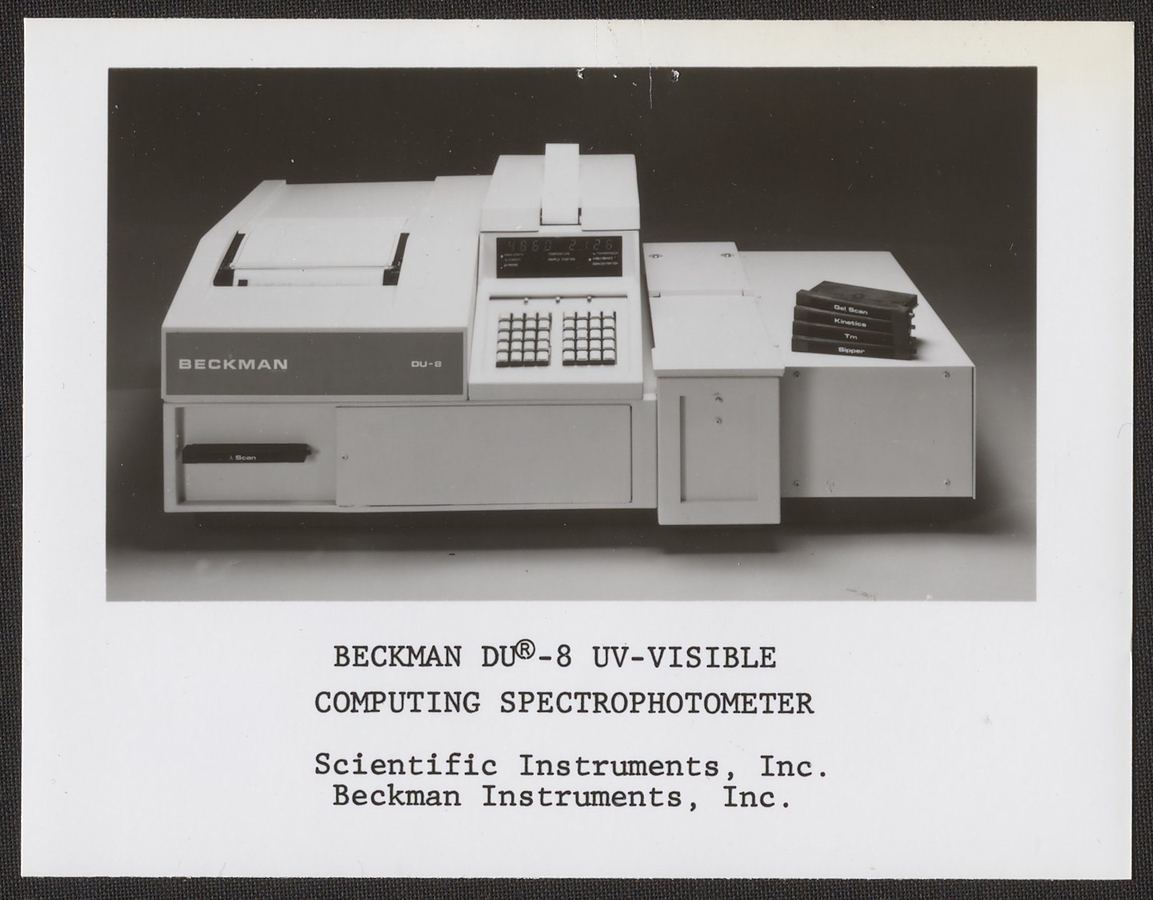 “Beckman DU-8 UV-Visible Computing Spectrophotometer,” circa 1980. Beckman Historical Collection, Box 84. Science History Institute. Philadelphia. https://digital.sciencehistory.org/works/w37637025.