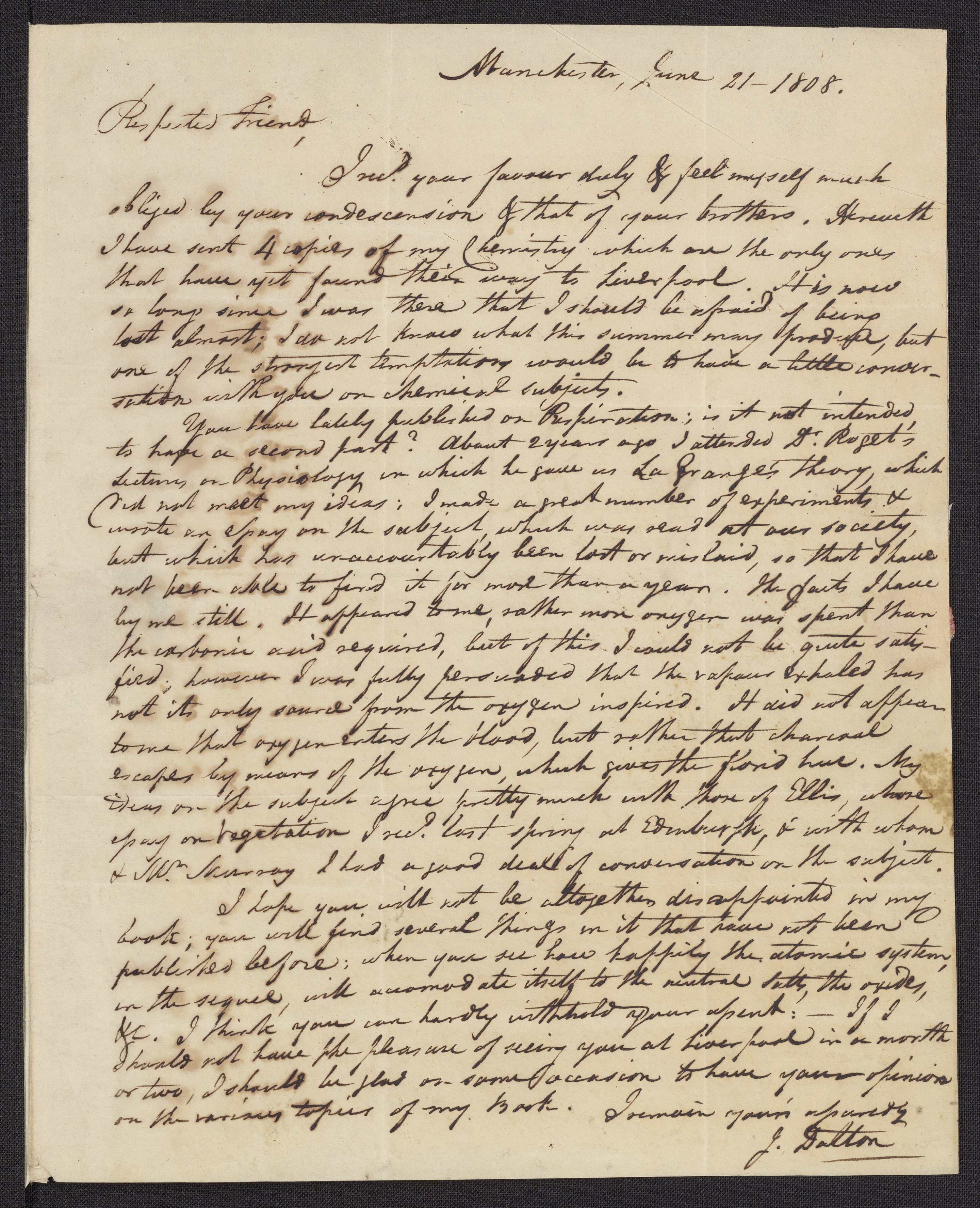Letter to Dr. Bostock from John Dalton, June 21, 1808