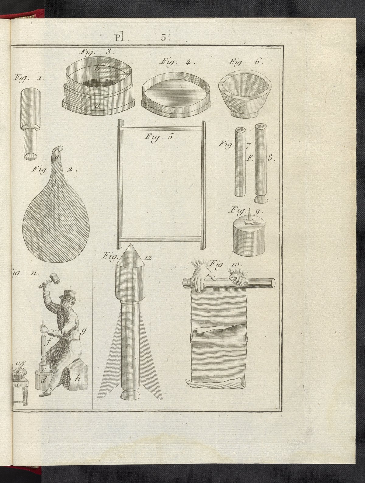 Ruggieri, Claude-Fortuné. “Plate 3: Tools for the Manufacture of Fireworks.” In Elémens De Pyrotechnie. Paris, France, 1811. https://digital.sciencehistory.org/works/w6634440t.