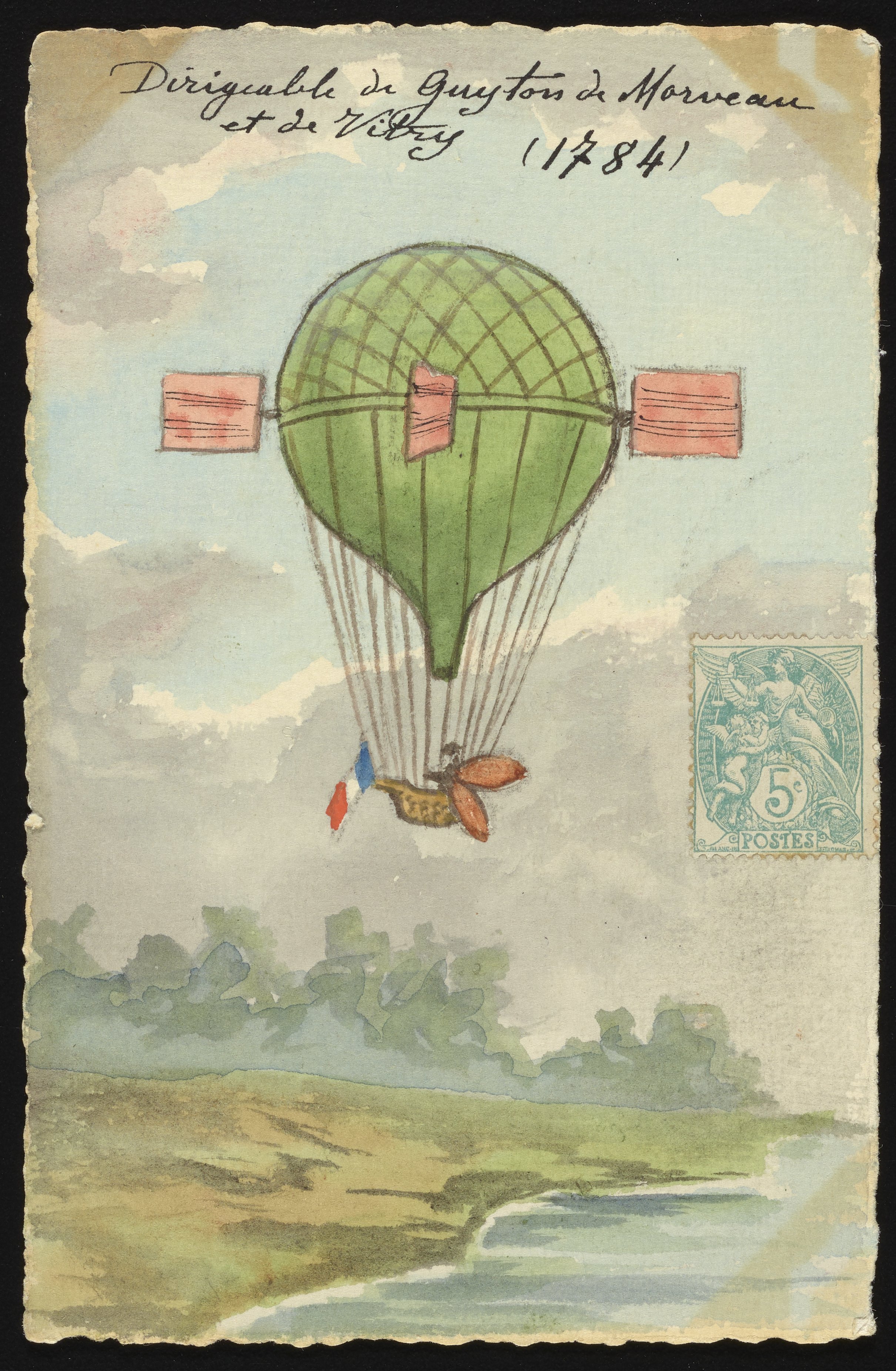 Molynk, A. “Airship Flown by Louis-Bernard Guyton De Morveau.” Watercolor (paint), 1784–1909. Permanent Exhibition, Box 287. Science History Institute. Philadelphia. https://digital.sciencehistory.org/works/w6634484w.