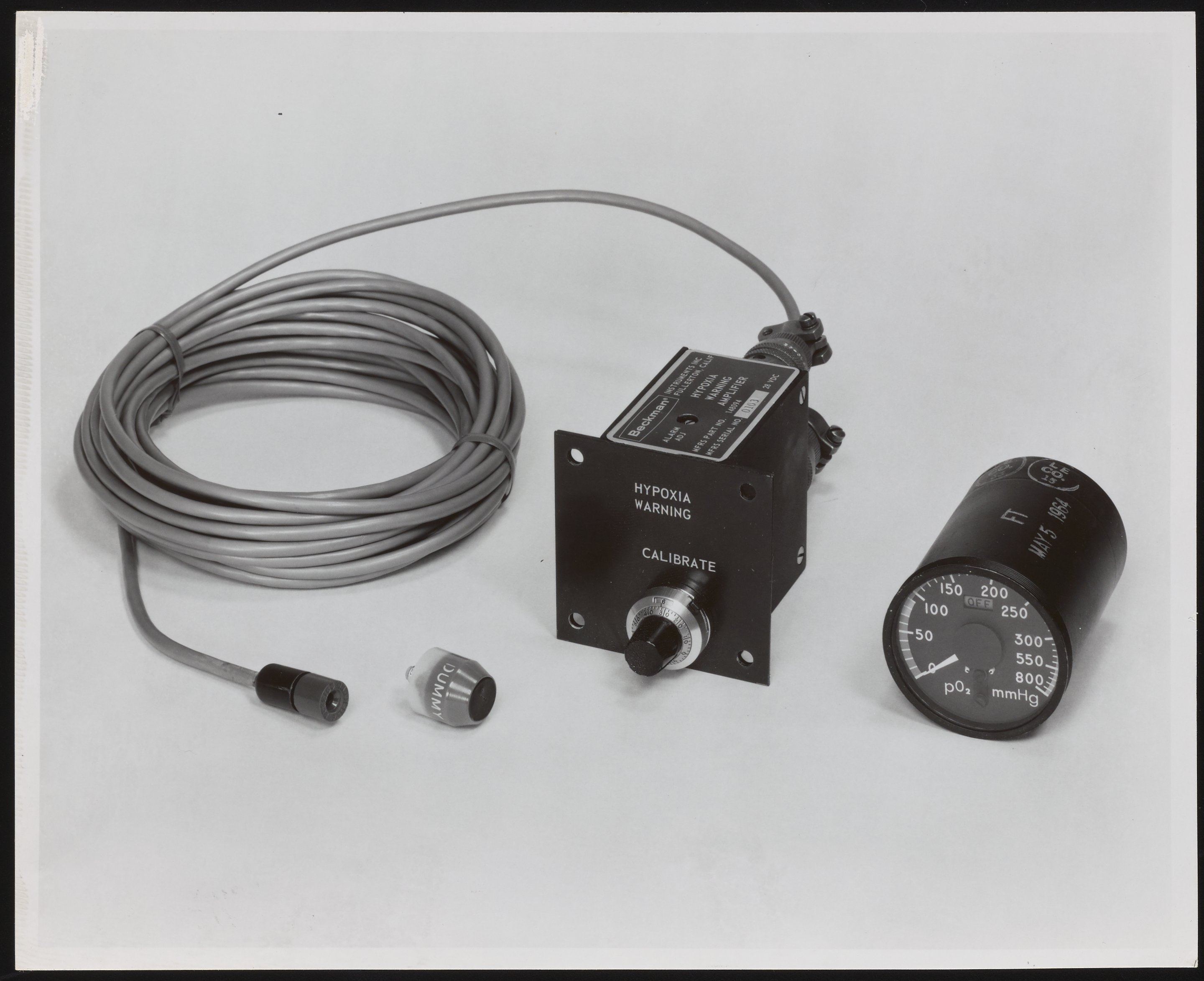 Beckman Instruments Photographic Services Section. “Beckman Hypoxia Warning System,” 1969. Beckman Historical Collection, Box 58, Folder 11. Science History Institute. Philadelphia. https://digital.sciencehistory.org/works/w9505046h.