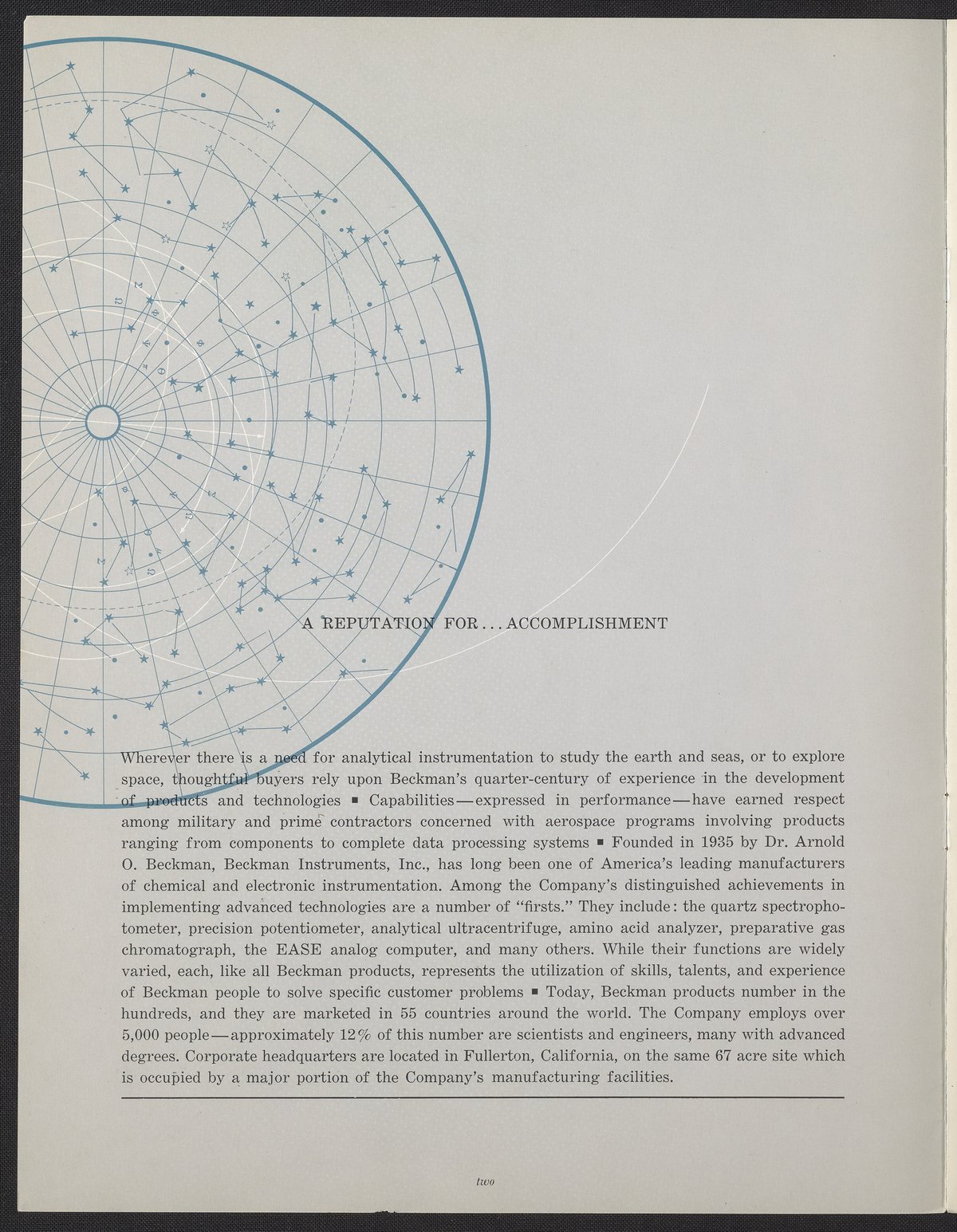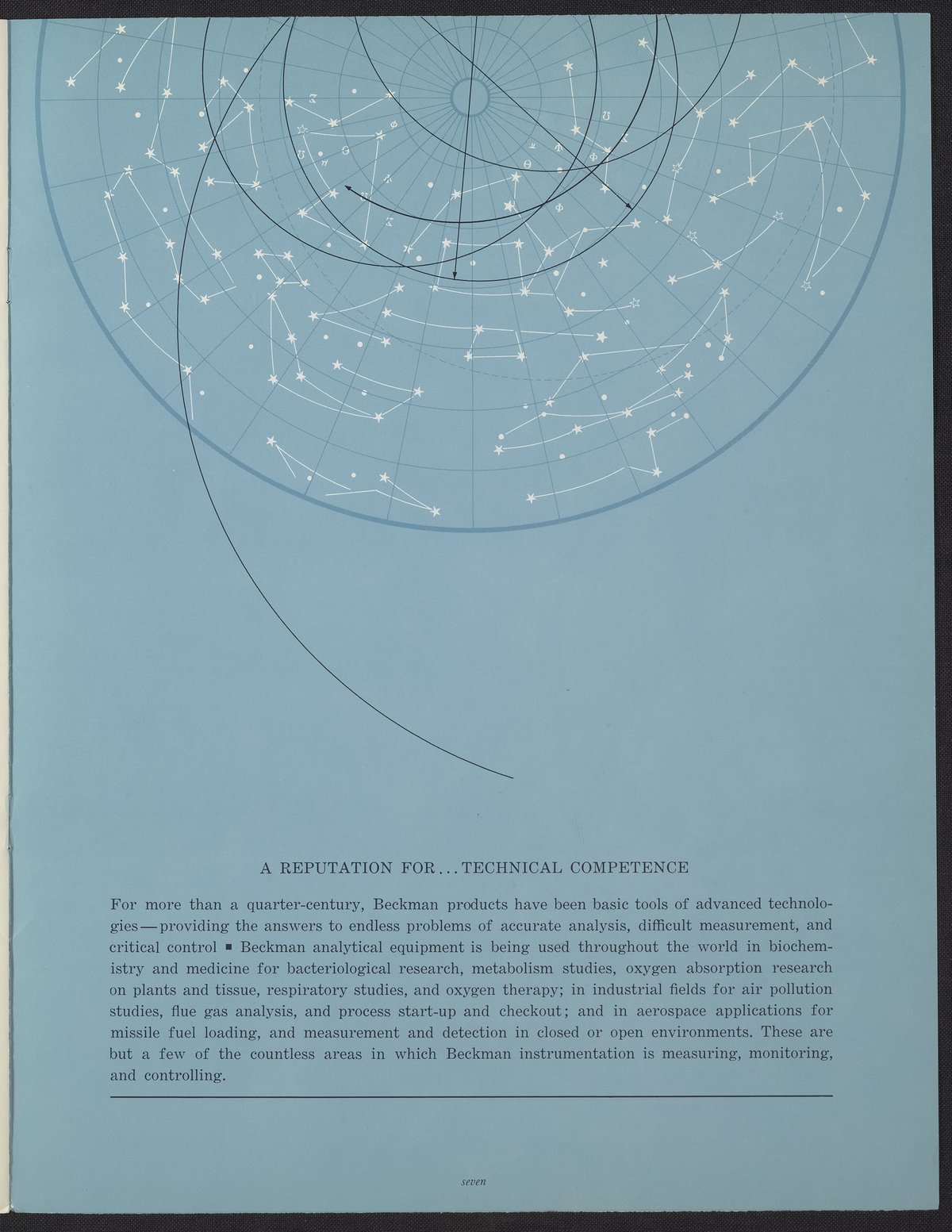 Beckman Instruments, Inc. “Specialists in Aerospace Instrumentation,” circa 1963. Beckman Historical Collection, Box 16, Folder 12. Science History Institute. Philadelphia. https://digital.sciencehistory.org/works/w9505093w.