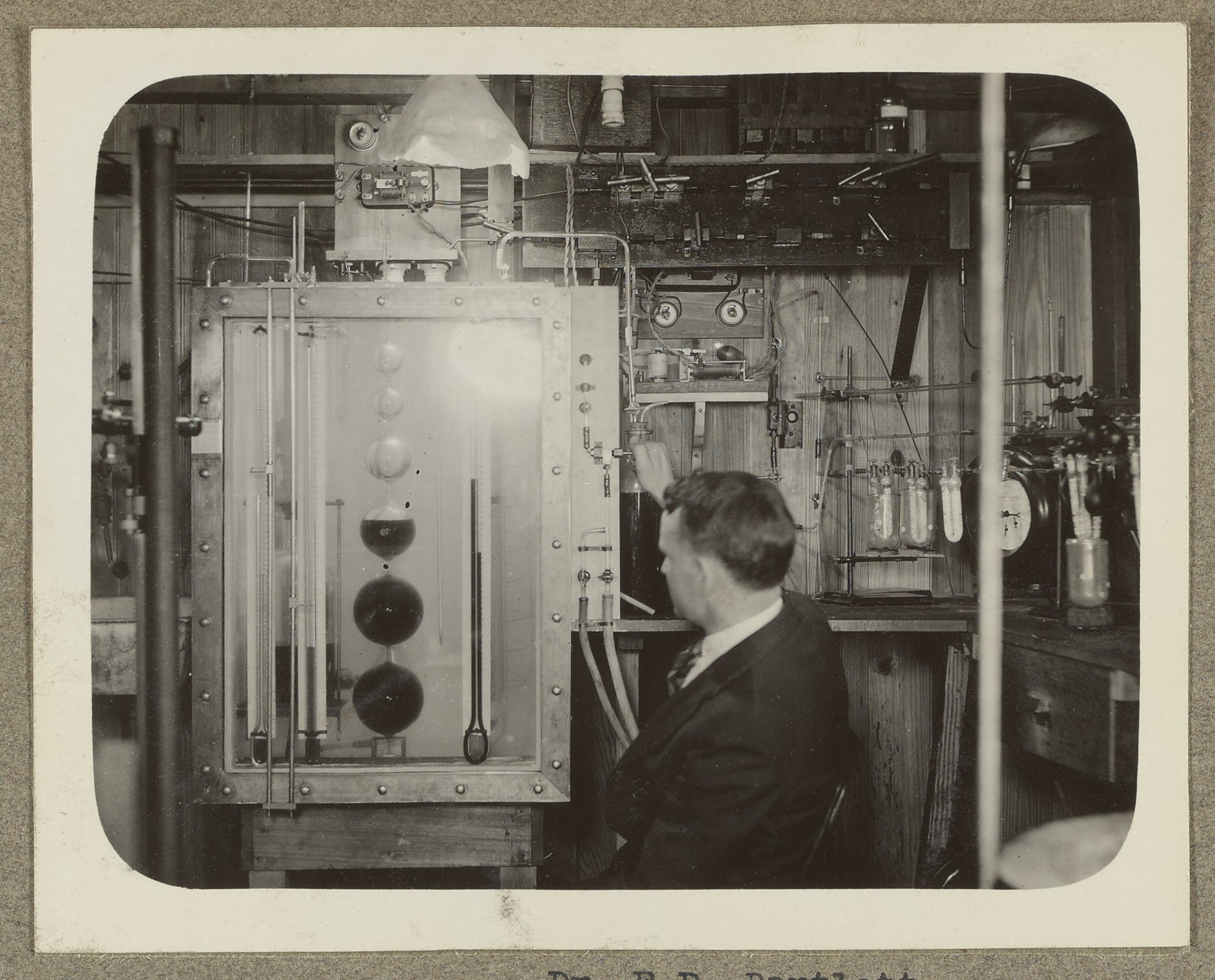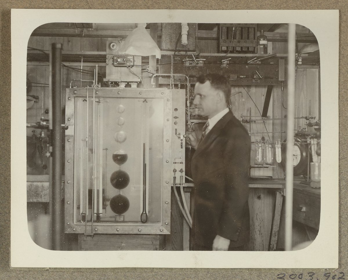 Small JPG1200 x 966px — 192 KBFull-sized JPG1987 x 1600px — 450 KBOriginal fileTIFF — 1987 x 1600px — 9.2 MBFour assorted views of a thermostat and equipment used to determine the compressibility of gas at the U.S. Department of Agriculture's Fixed Nitrogen Research Laboratory located in Washington, D.C. In chemistry, compressibility refers to the measure of how much a given volume of matter decreases when placed under pressure. At the Fixed Nitrogen Research Laboratory, this particular apparatus was used to measure the amount of gas present after expansion from a high-pressure environment. The individual visible in the photographs is identified as Dr. E.P. Bartlett.