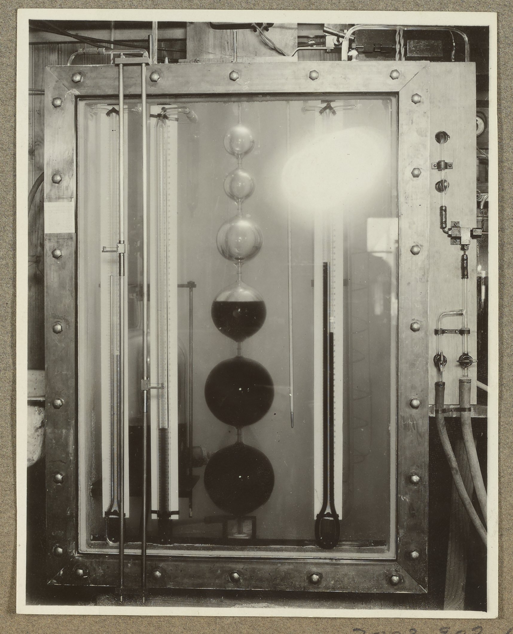 “Apparatus for Measuring the Compressibility of Gases,” April 1926. Travis P. Hignett Collection of Fixed Nitrogen Research Laboratory Photographs, Box 2. Science History Institute. Philadelphia. https://digital.sciencehistory.org/works/wd375w342.
