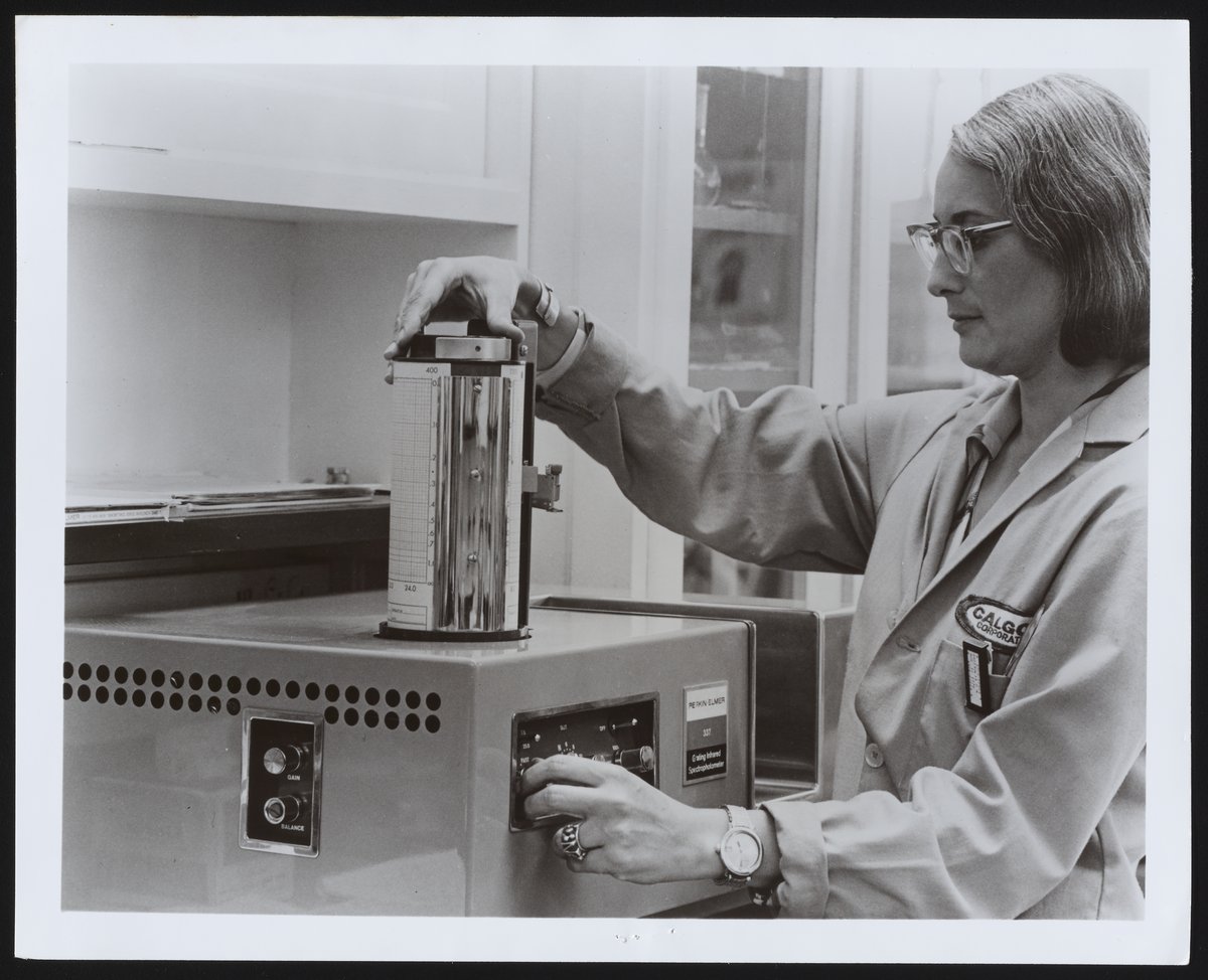 Perkin-Elmer Corporation. “Perkin-Elmer Infrared Spectrophotometer in Use at Calgon Water Management Laboratory,” 1970–1979. Photographs from the Perkin-Elmer-Applera Collection, Box 6. Science History Institute. Philadelphia. https://digital.sciencehistory.org/works/wd375x13h.