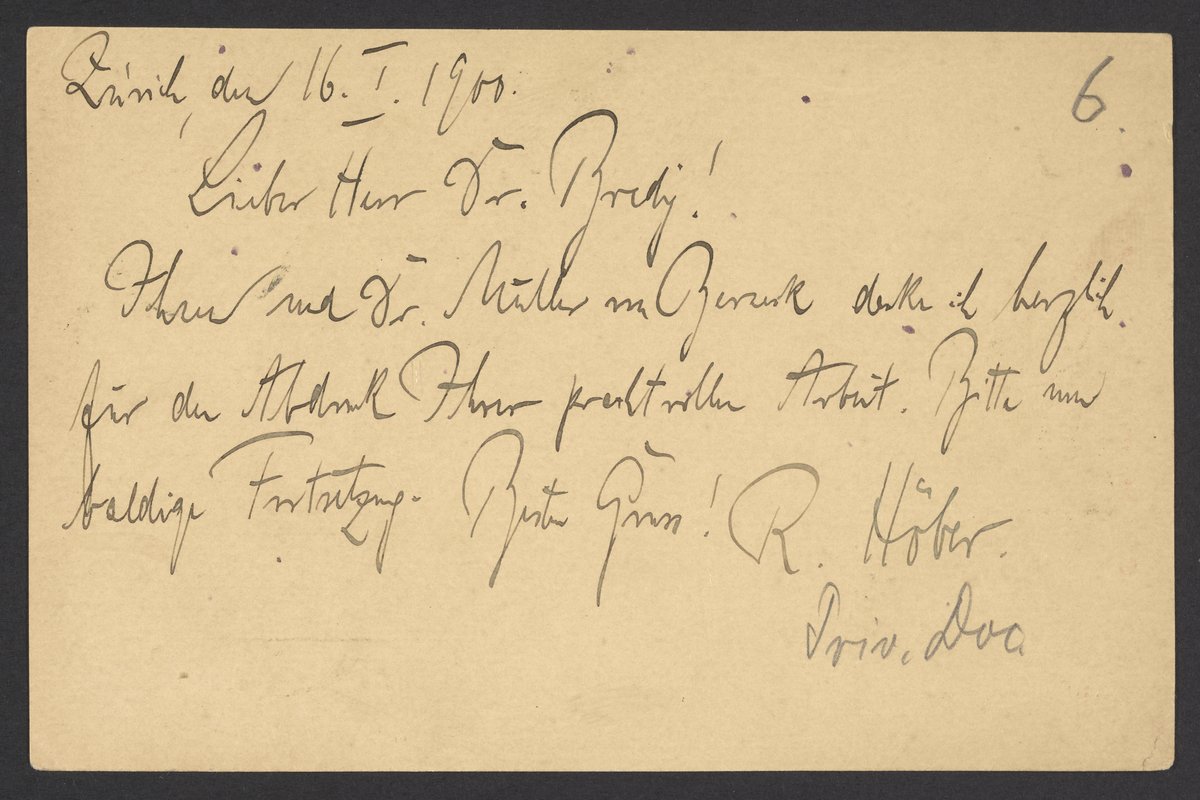 Small JPG1200 x 794px — 158 KBLarge JPG2880 x 1906px — 756 KBFull-sized JPG3517 x 2327px — 1.0 MBOriginal fileTIFF — 3517 x 2327px — 23.5 MBRudolf Höber (1873-1953), a German physiologist and physician working in Zurich, Switzerland, thanks Georg Bredig (1868-1944) for sending his recent scientific treatise on inorganic ferments, which he collaborated on with his colleague, Rudolf Müller von Berneck. Müller von Berneck was a German chemist who patented the process for manufacturing concentrated nitric acid.