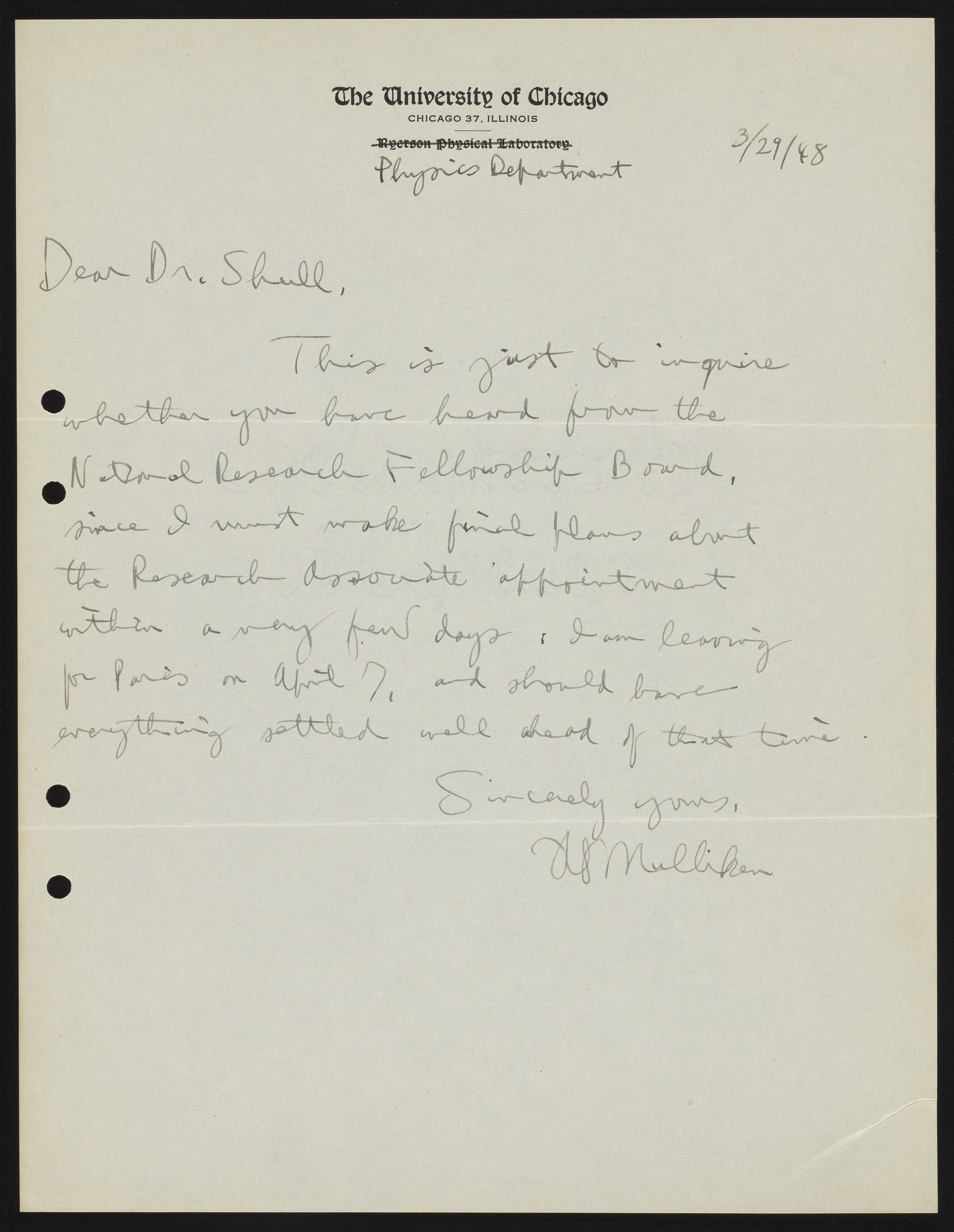 Mulliken, Robert Sanderson. “Letter from Robert S. Mulliken to Harrison Shull, 1948,” March 29, 1948. Robert S. Mulliken & Harrison Shull Correspondence, Box 1. Science History Institute. Philadelphia. https://digital.sciencehistory.org/works/wh246s23s.