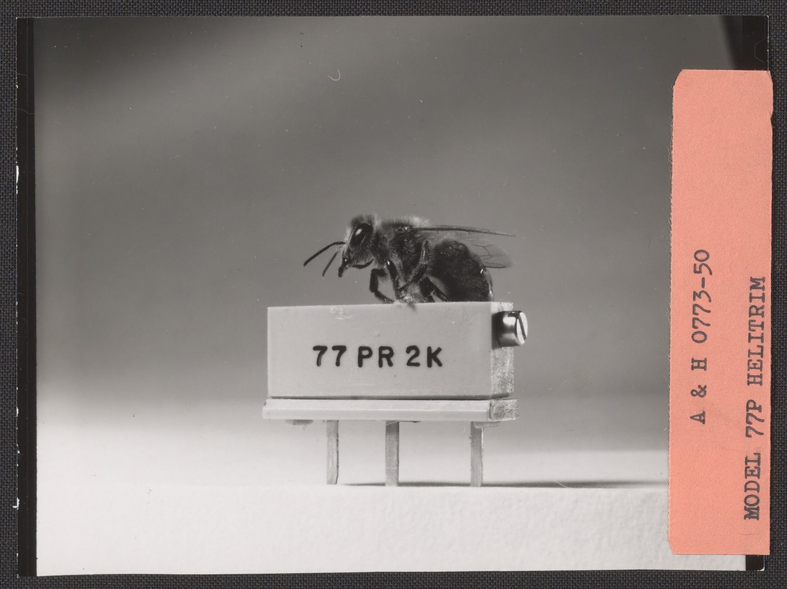 Armstrong & Hess. “Beckman Helipot Model 77P Helitrim Trimming Potentiometer with Bee,” 1950–1969. Beckman Historical Collection, Box 85. Science History Institute. Philadelphia. https://digital.sciencehistory.org/works/wm117p19f.