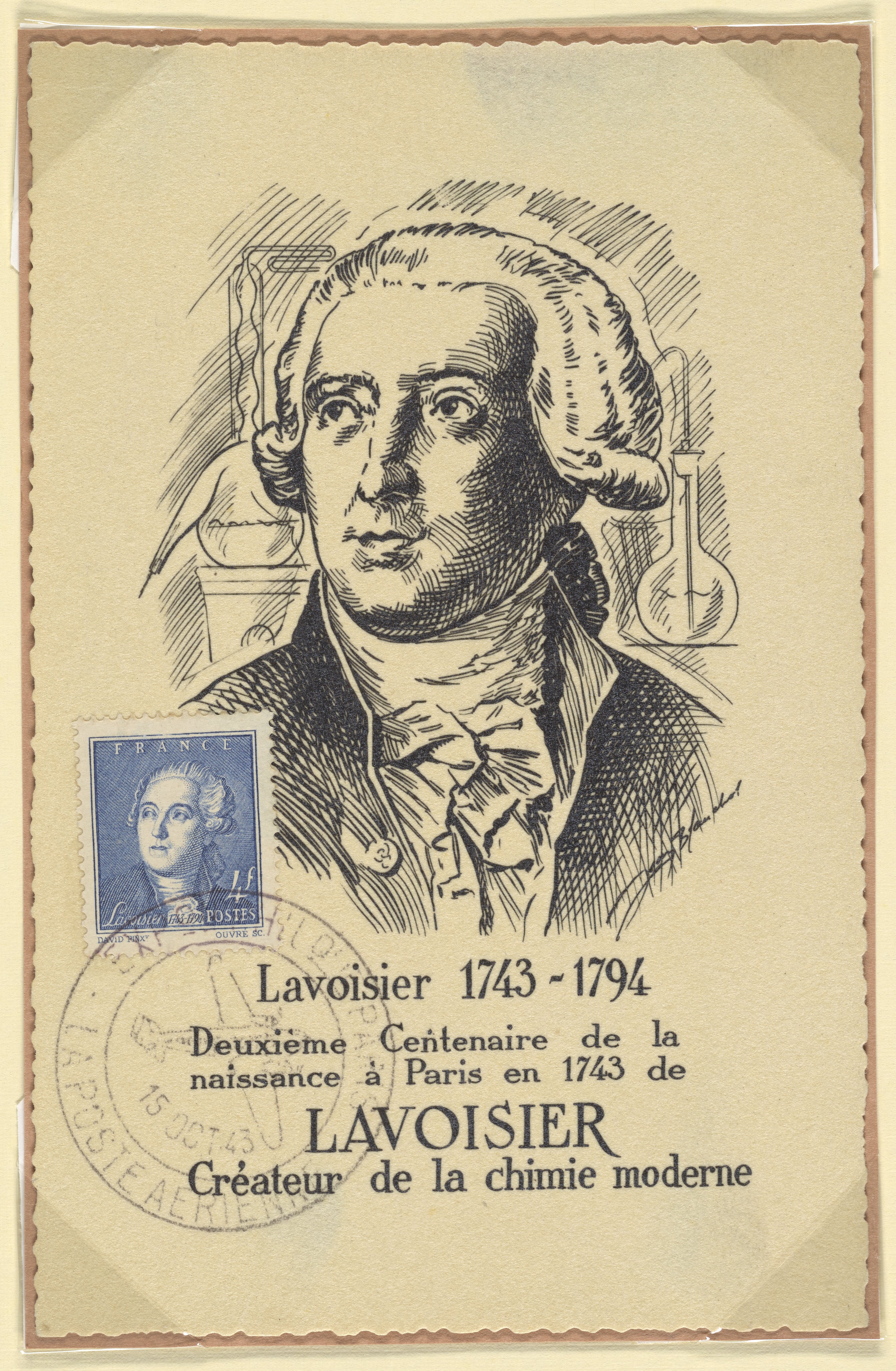 Pinx, David. “First Day Cover Commemorating the 2nd Centenary of the Birth of Antoine Lavoisier.” France, circa 1943. Witco Stamp Collection, Box 1. Science History Institute. Philadelphia. https://digital.sciencehistory.org/works/wm117p22r.