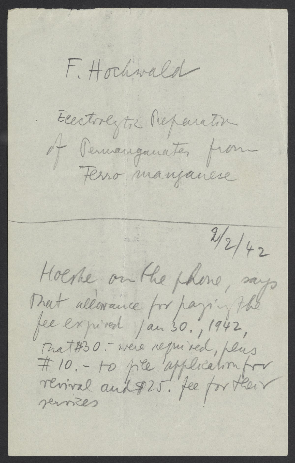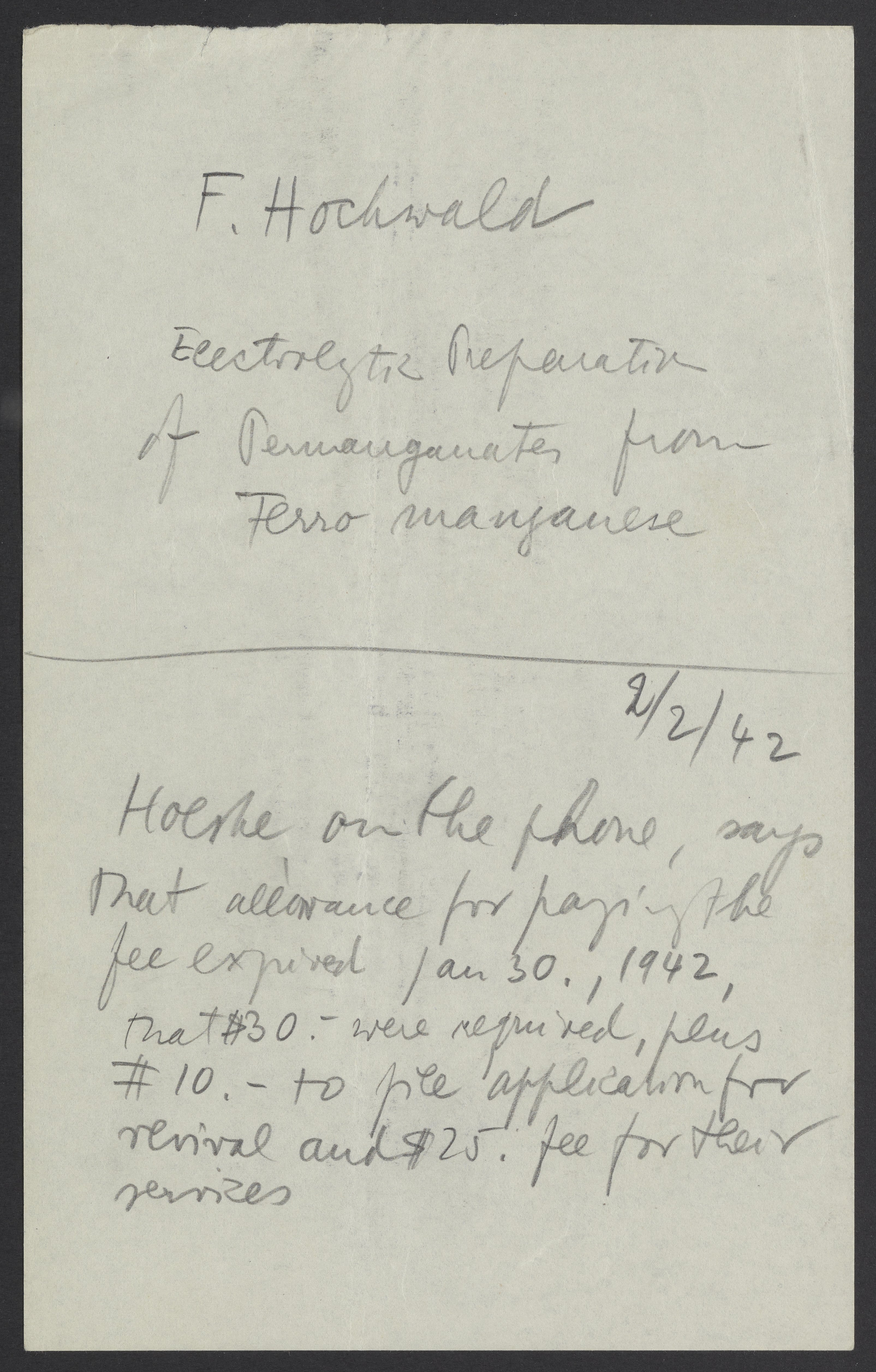 Notes by Max Bredig, February 2, 1942